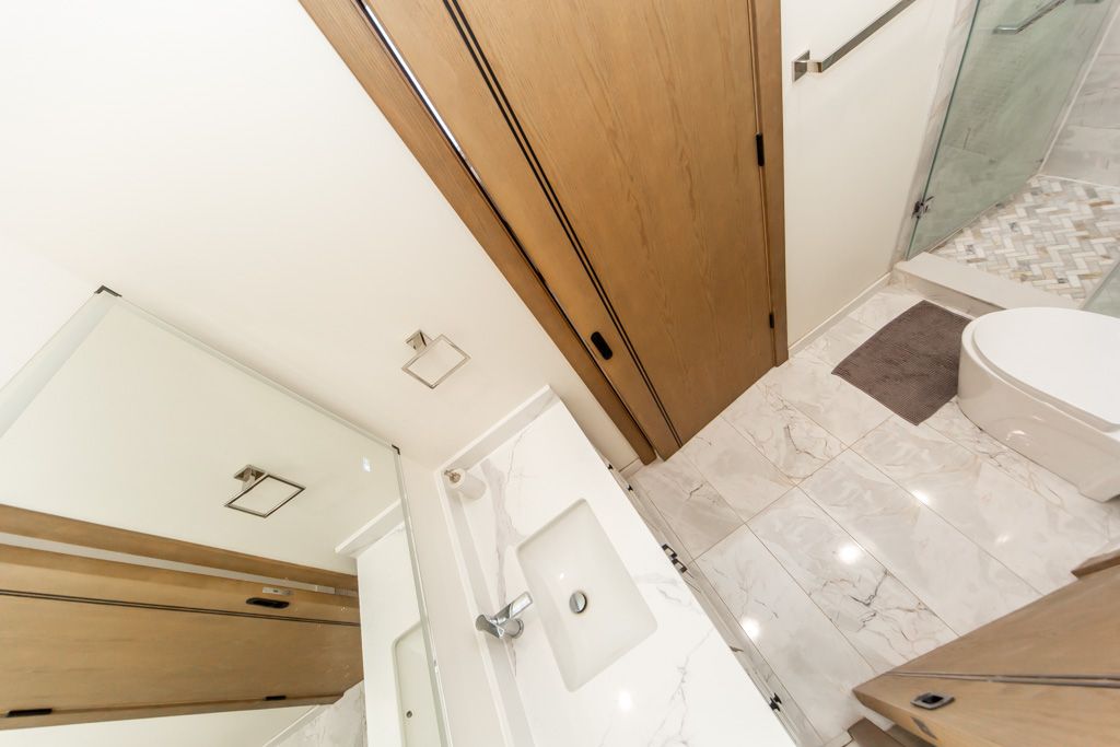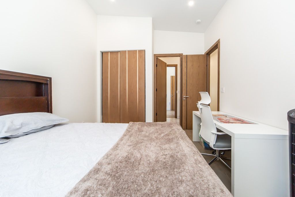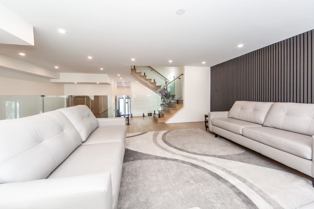 • Bright open-concept main floor with 12-foot ceilings and large windows.