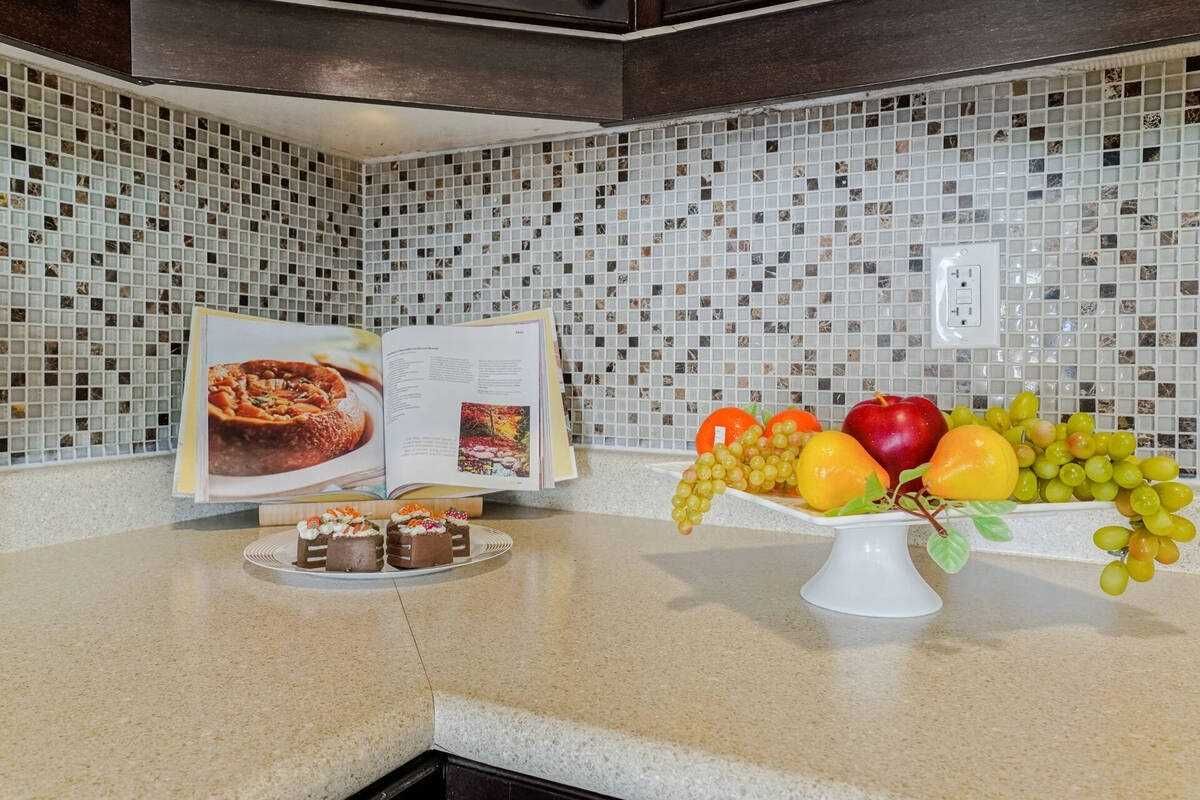 • Spacious dining area comfortably fits a 6-chair dining table.