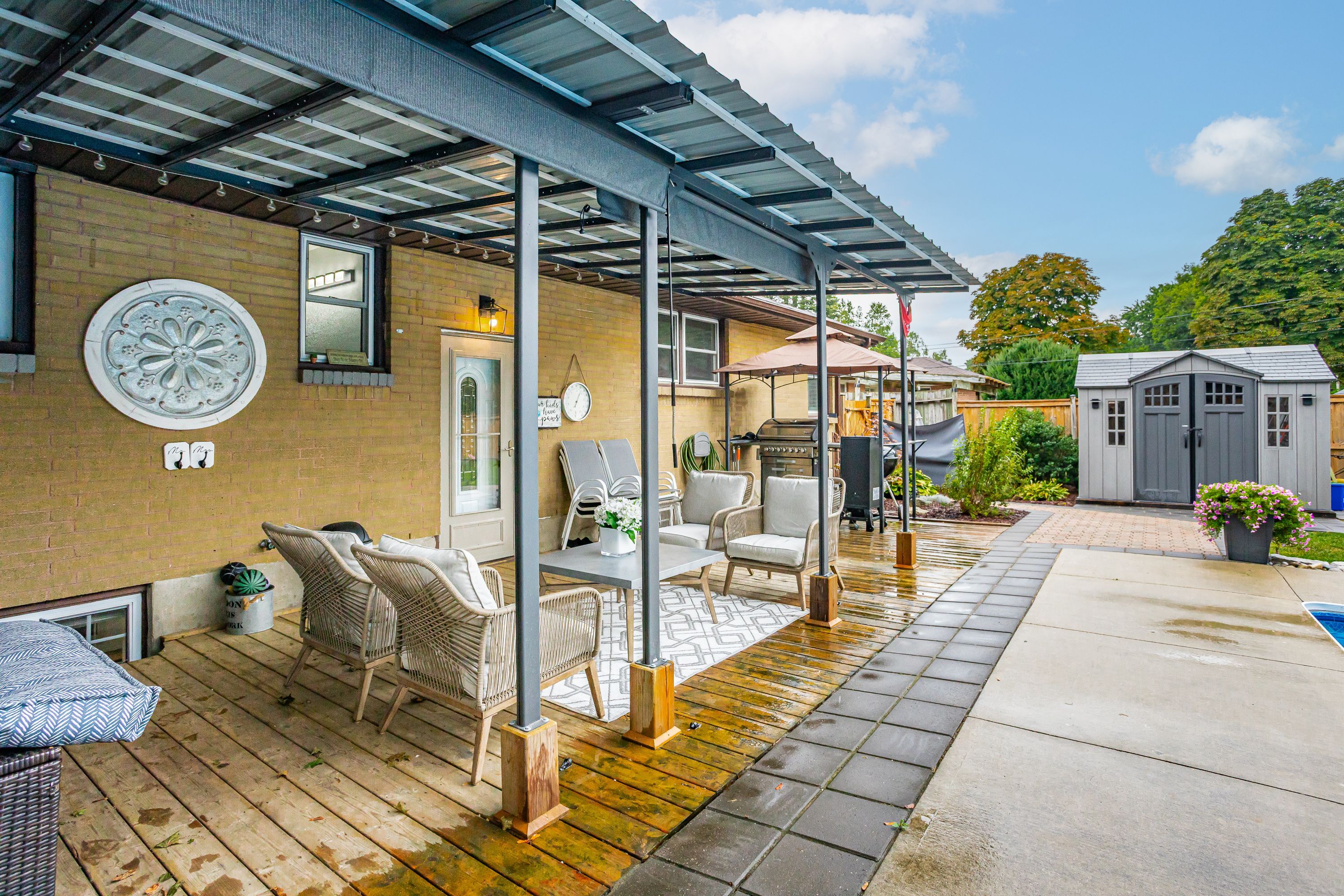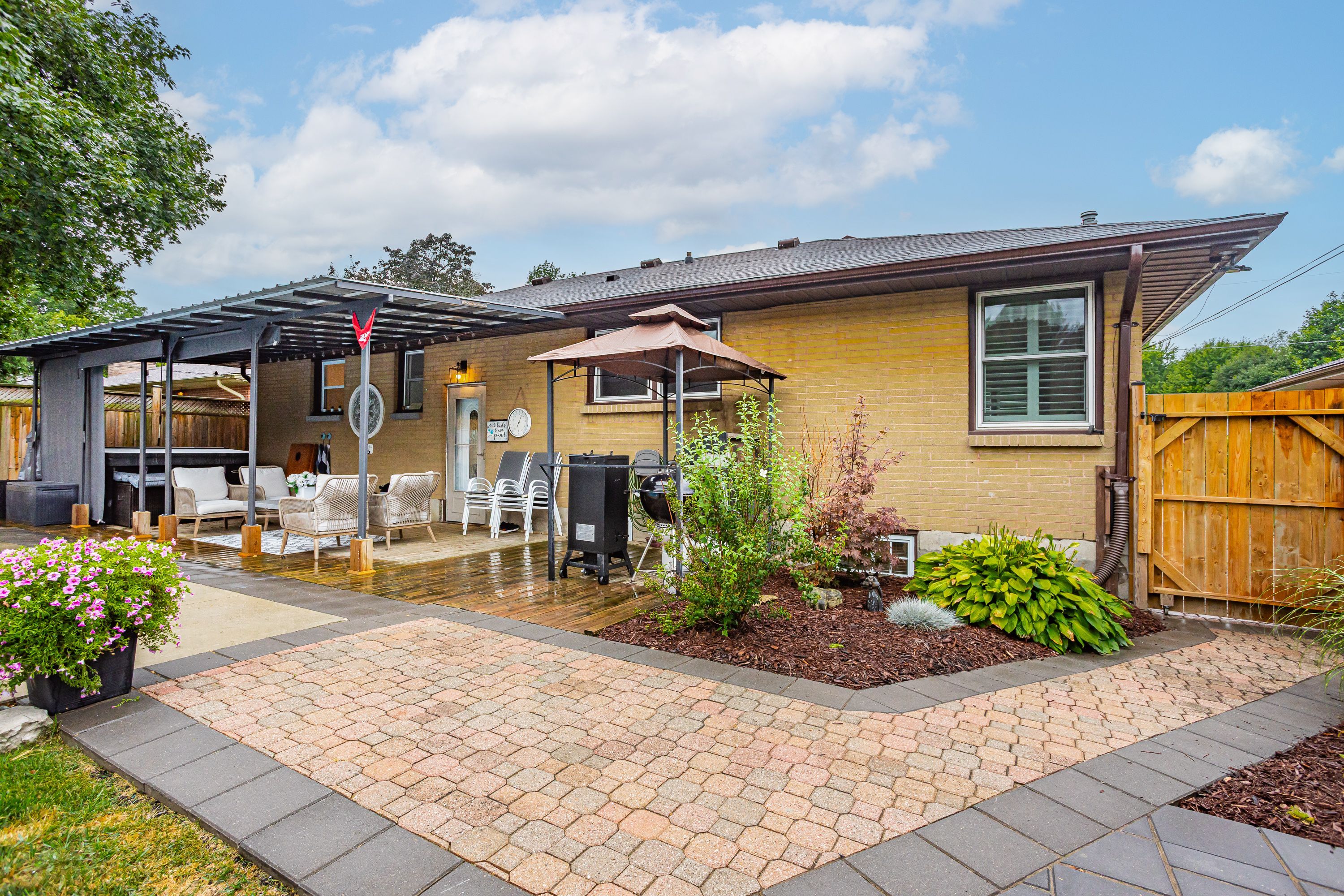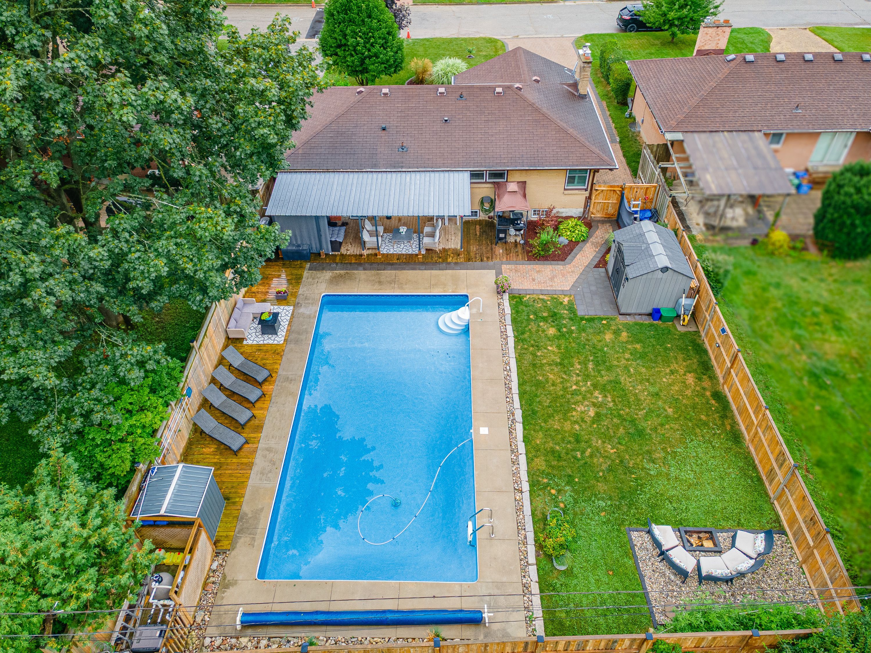 Beautifully updated bungalow in sought-after byron, extensively renovated over the past four years and thoughtfully transformed into a stunning open-concept home. Every detail has been carefully considered, blending modern style with comfortable living. The fully finished basement features a new kitchenette and offers excellent potential for a granny suite or additional income opportunity. The exterior is equally impressive, designed as a private backyard retreat. Enjoy the heated in-ground saltwater pool, hot tub, and covered patio-perfect for relaxing or entertaining in any weather. Multiple seating areas provide both sun and shade, along with a spacious grassy area ideal for children and pets. Ideally situated in a mature byron neighbourhood, close to boler mountain, schools, parks, and a wide range of amenities.
