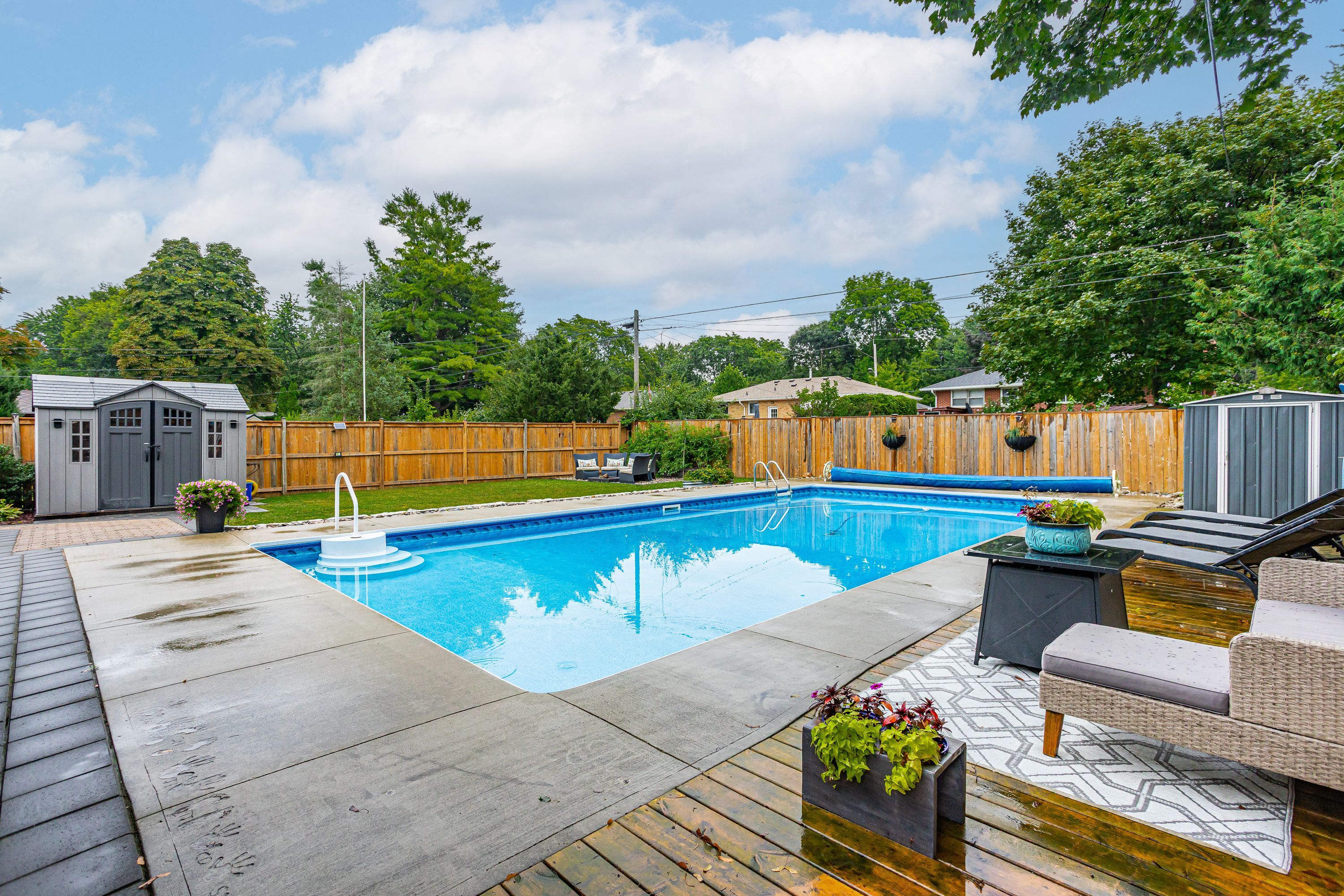 • Private backyard retreat featuring a heated saltwater pool and hot tub.