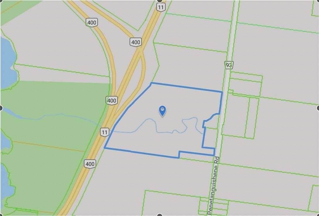 Excellent prospecting land located 1km from barrie. Next to mini storage, golf course, and city wells. Currently being rented out as farm land for cash crop. Frontage on penetanguishene rd, and backing on to 400 hwy and hwy 11