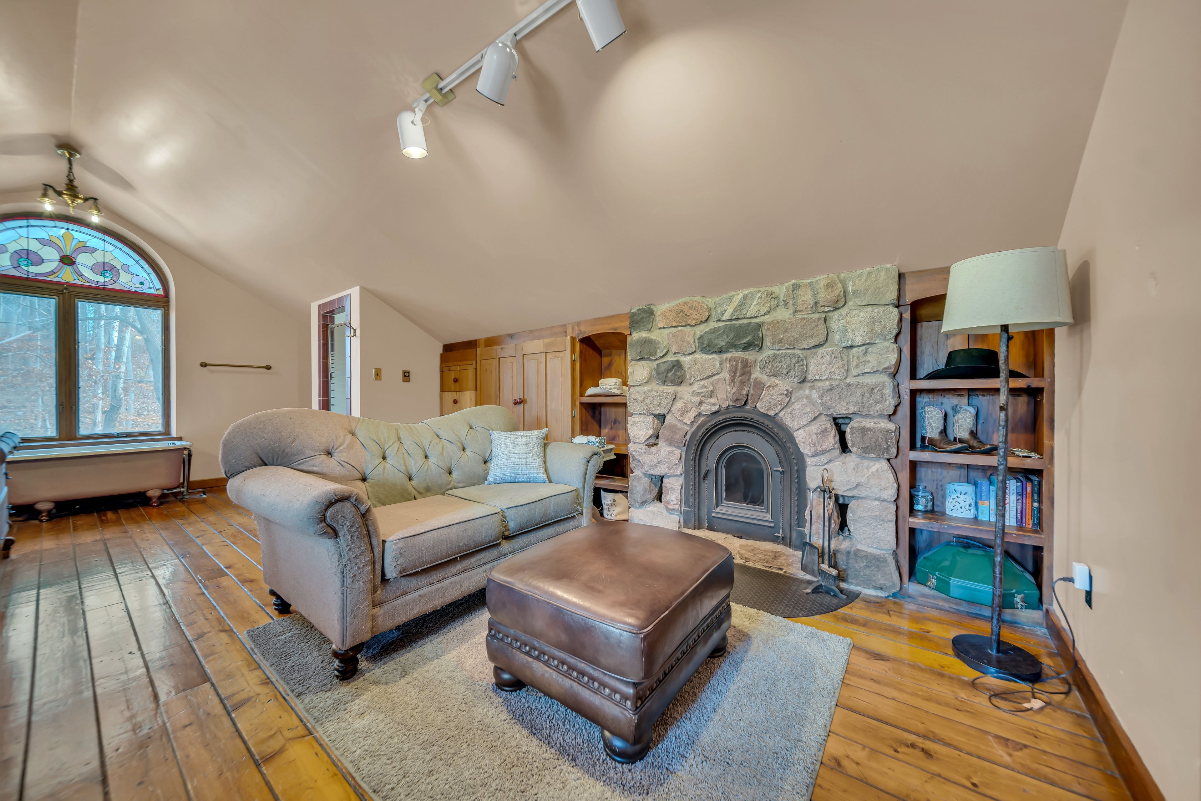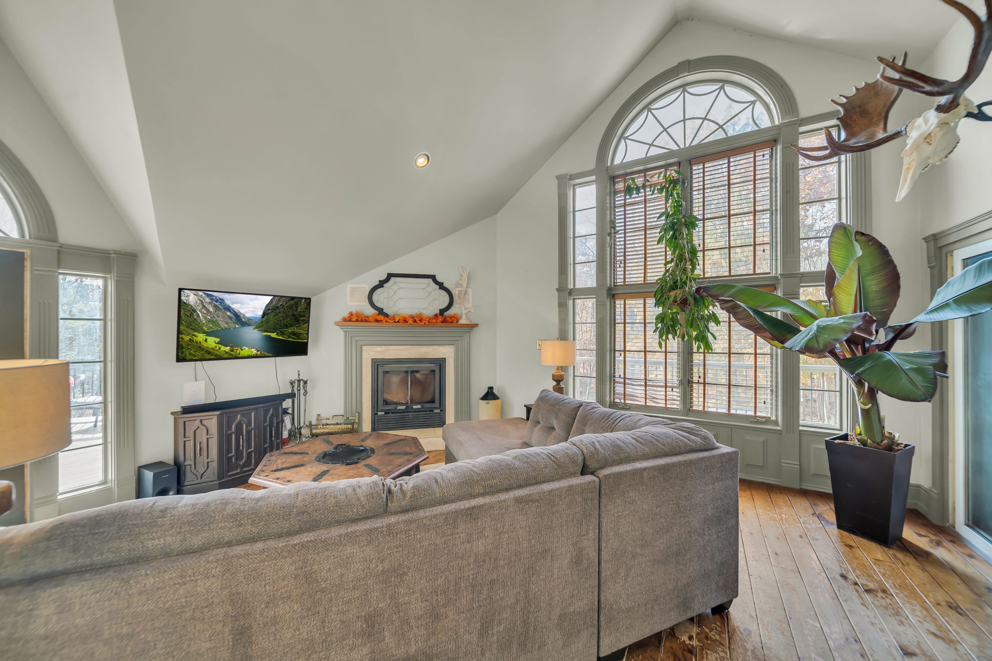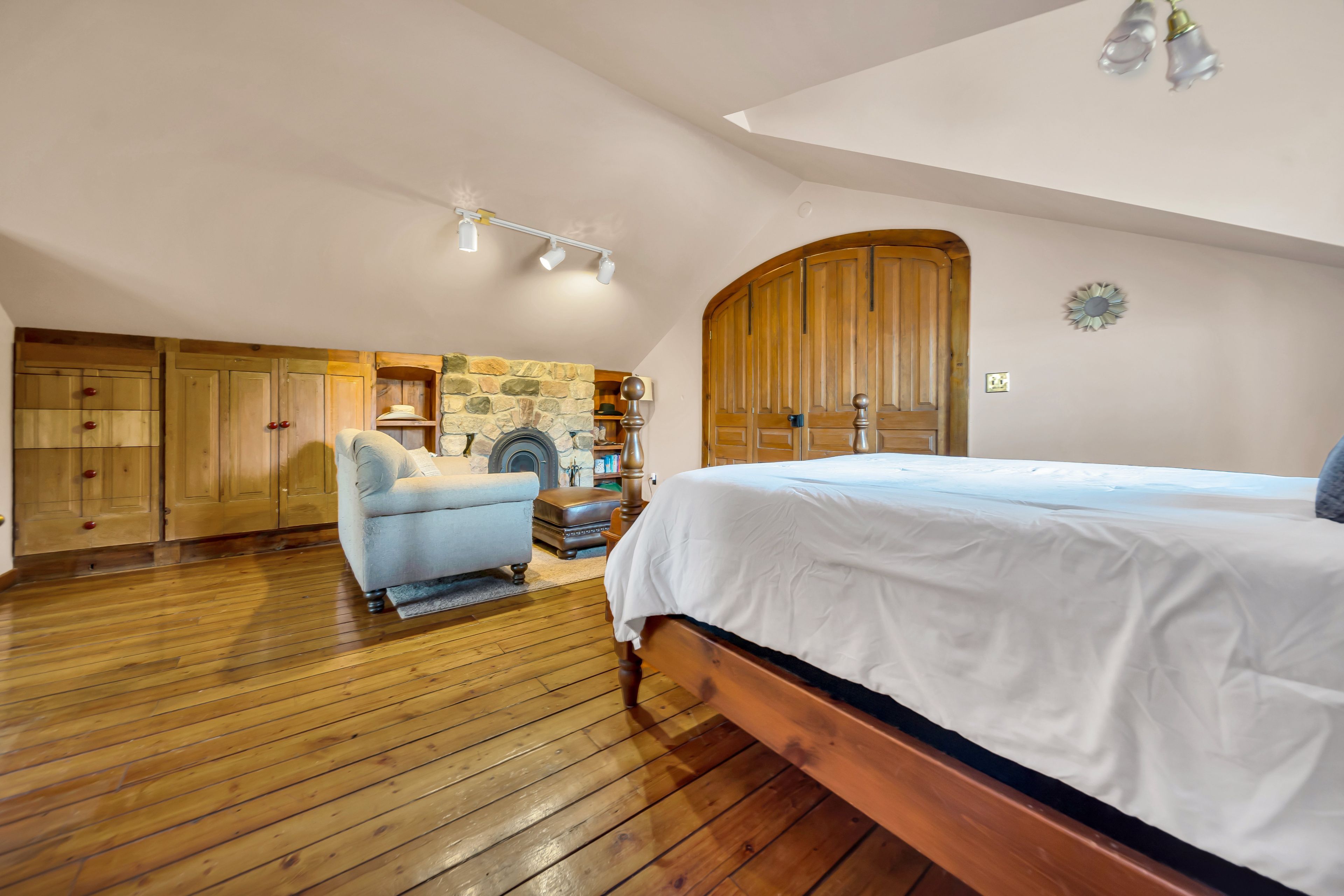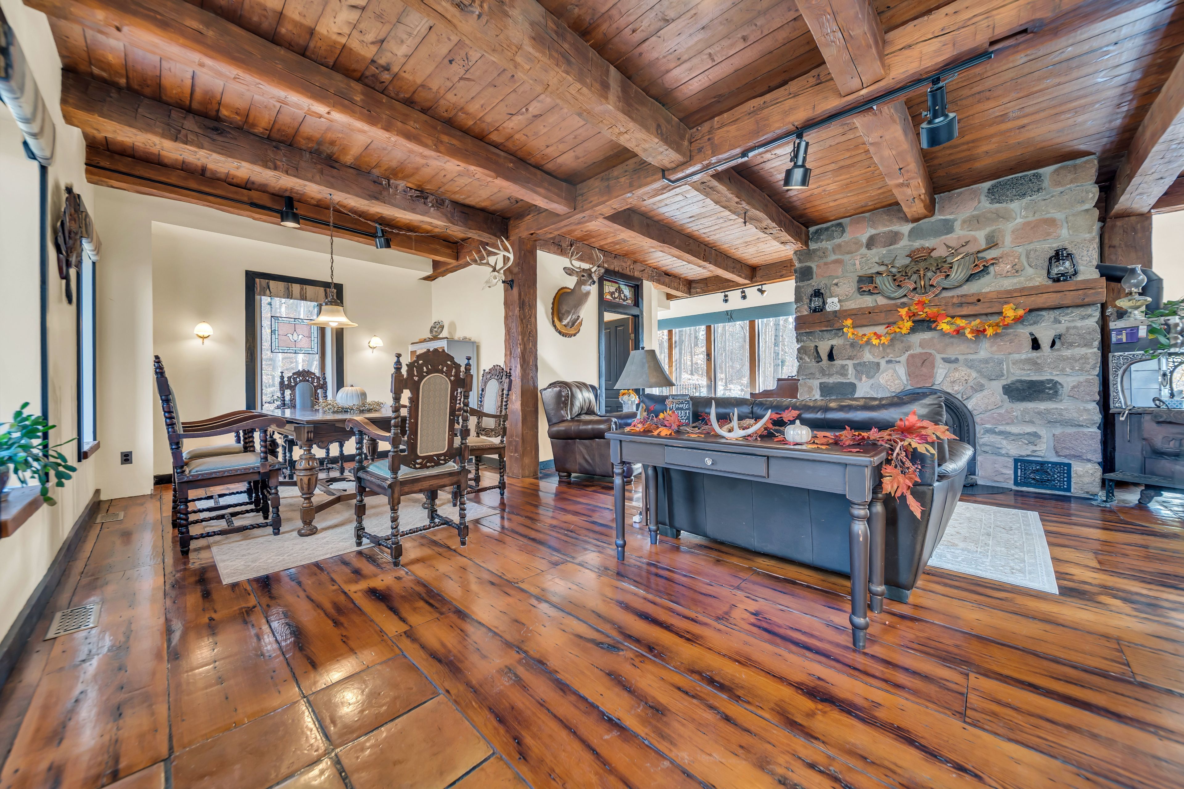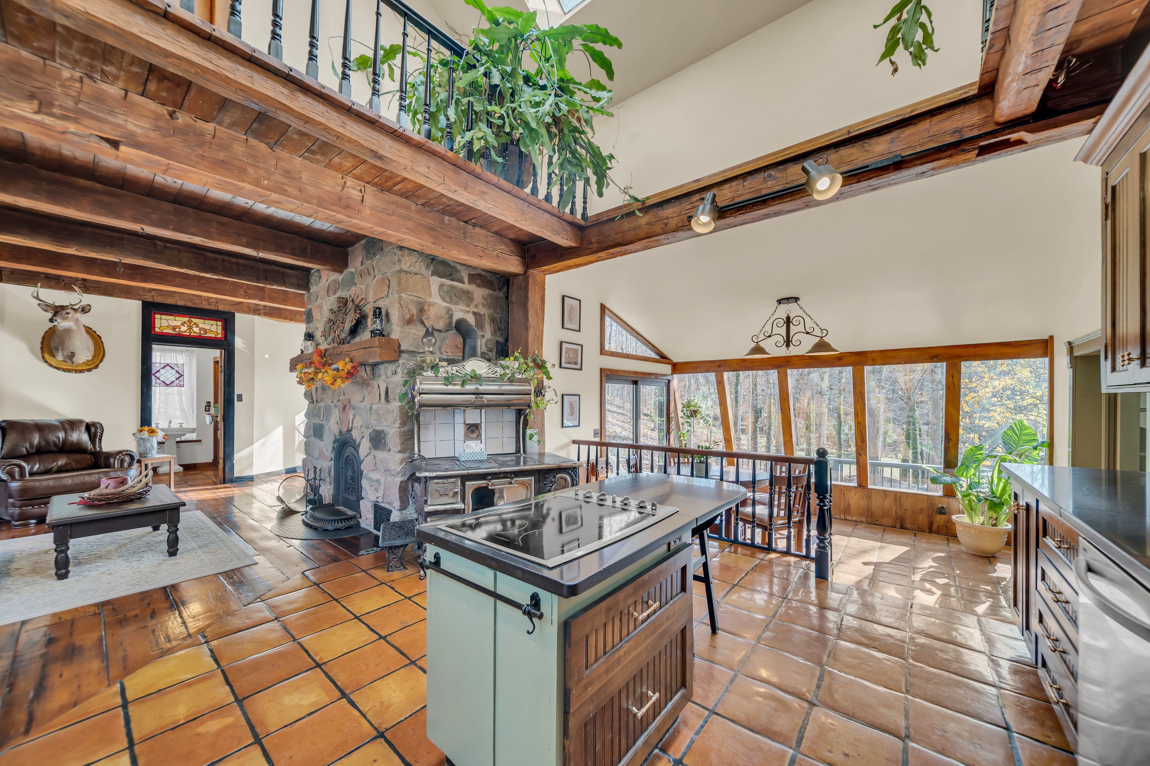 • Updated 2-bedroom, 3-bathroom home blending rustic charm and modern comfort.