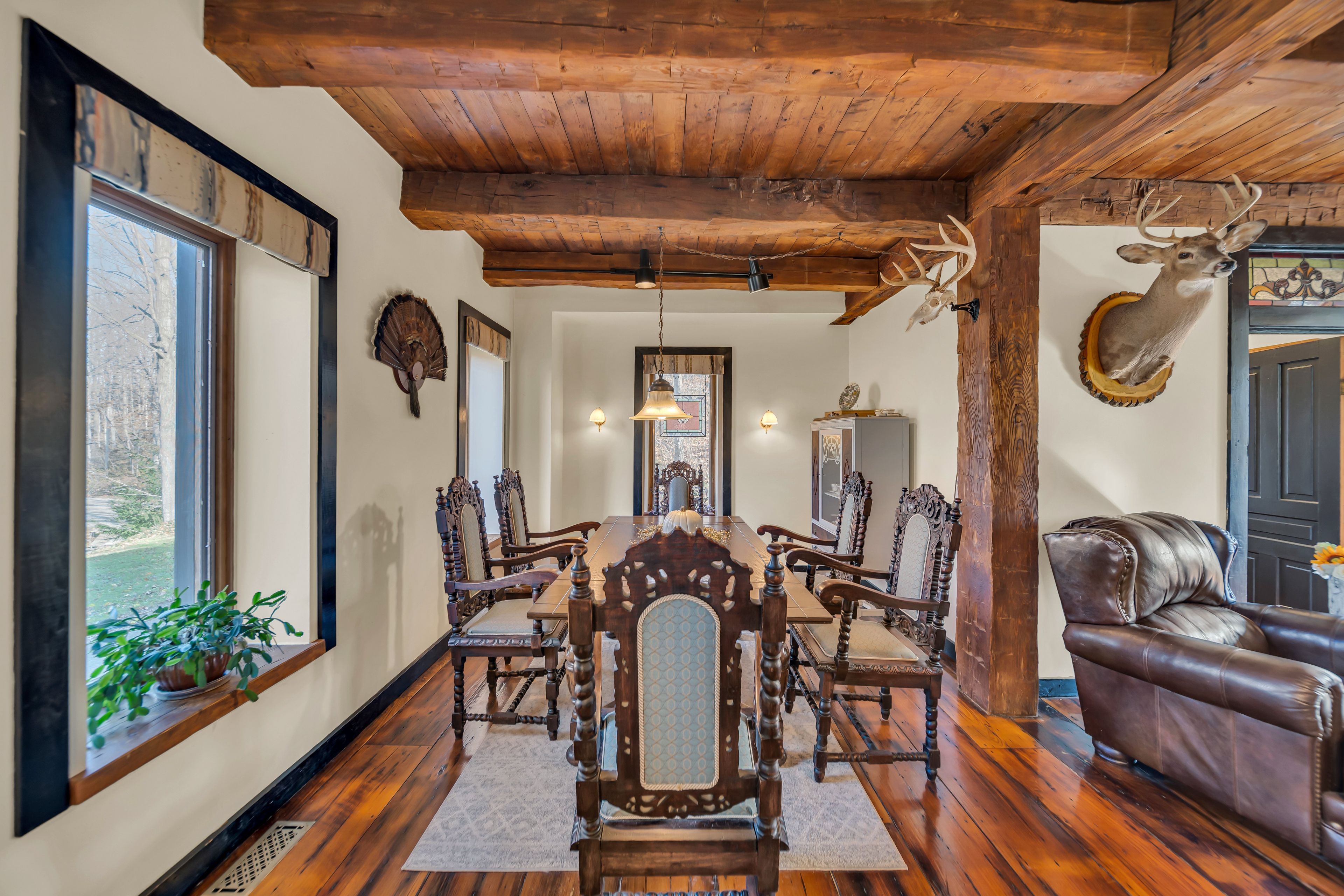 Welcome to 4766 hyndman drive, a beautifully updated 2-bedroom, 3-bathroom home that blends rustic charm with modern comfort in a peaceful rural setting. Warm wood accents, natural textures, and abundant natural light create a welcoming atmosphere throughout the open concept living spaces. The custom kitchen features upgraded cabinetry and thoughtful design, perfect for everyday living and entertaining. Recent upgrades to the heating and cooling systems provide year-round comfort and efficiency. Step out to the newly enhanced deck and enjoy picturesque countryside views, ideal for morning coffee or evening gatherings. A major bonus is the detached shop on the property, offering excellent space for hobbies, storage, equipment, or a workshop. With an expansive yard and scenic surroundings, this property offers the privacy and tranquility of country living while providing practical space to work and play. A rare opportunity to enjoy a rural lifestyle with modern updates and a versatile shop.