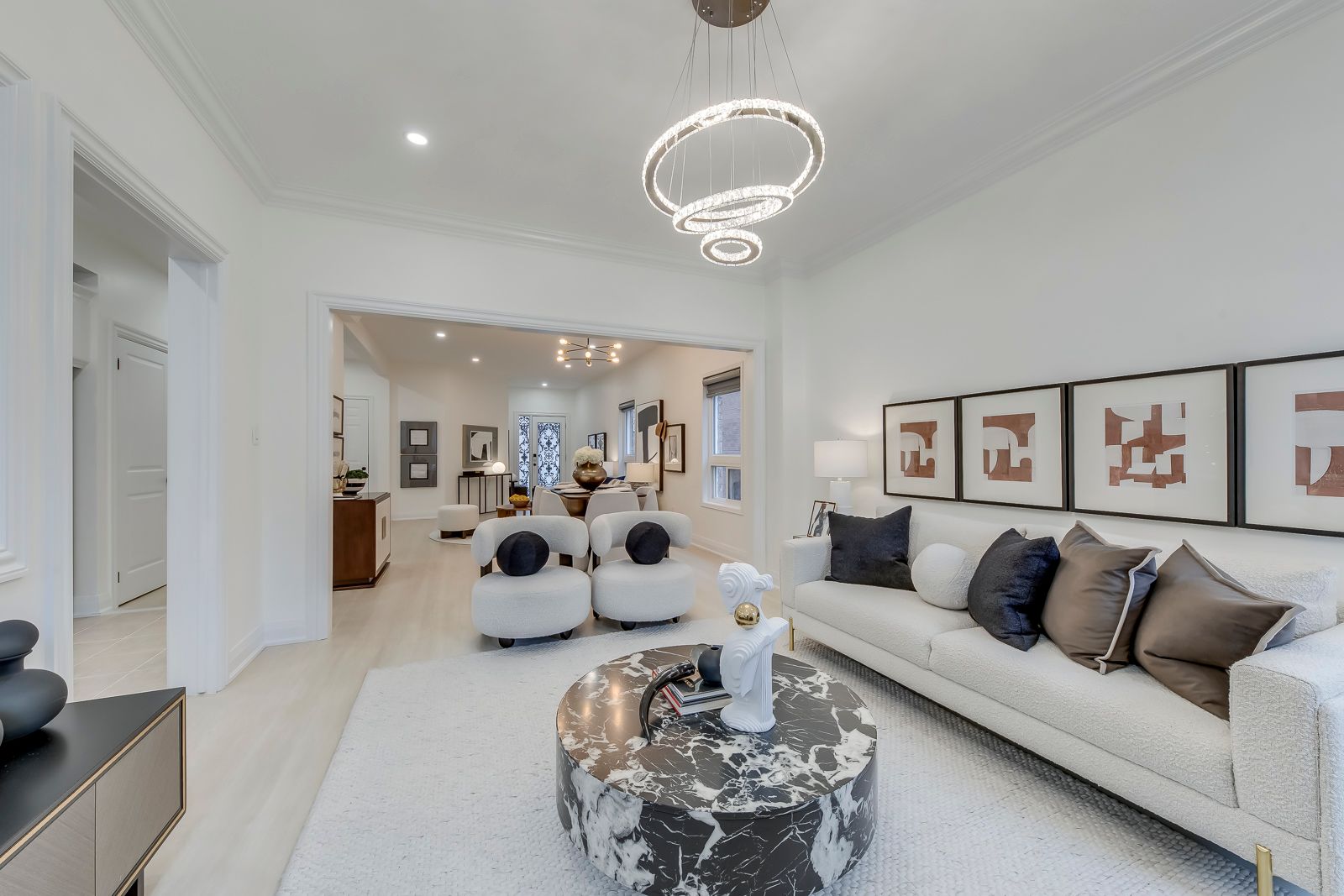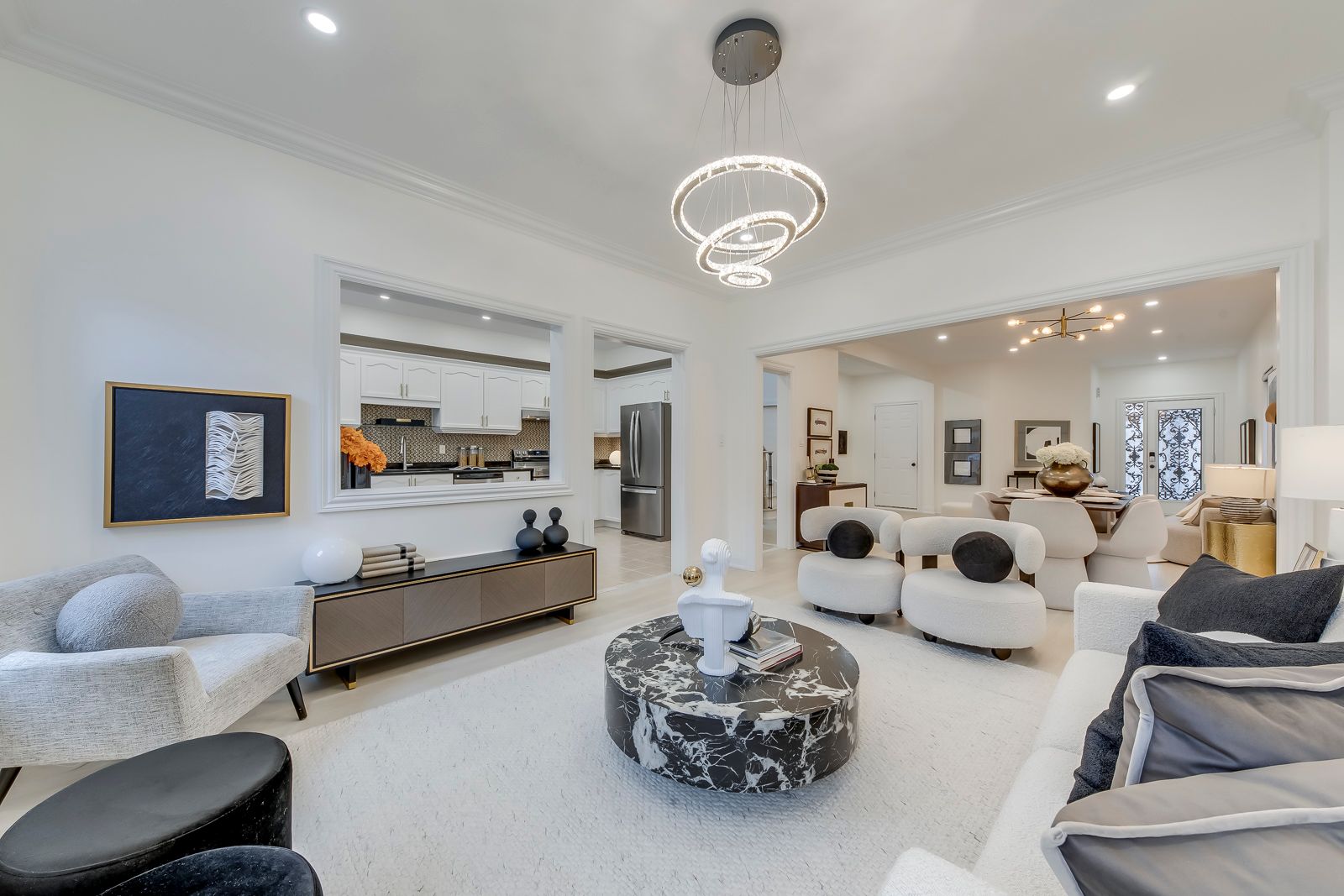 • Open-concept main floor with high ceilings creates a welcoming atmosphere.