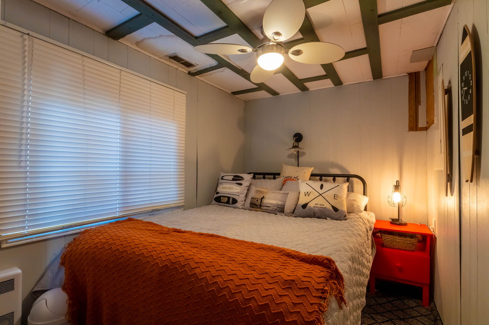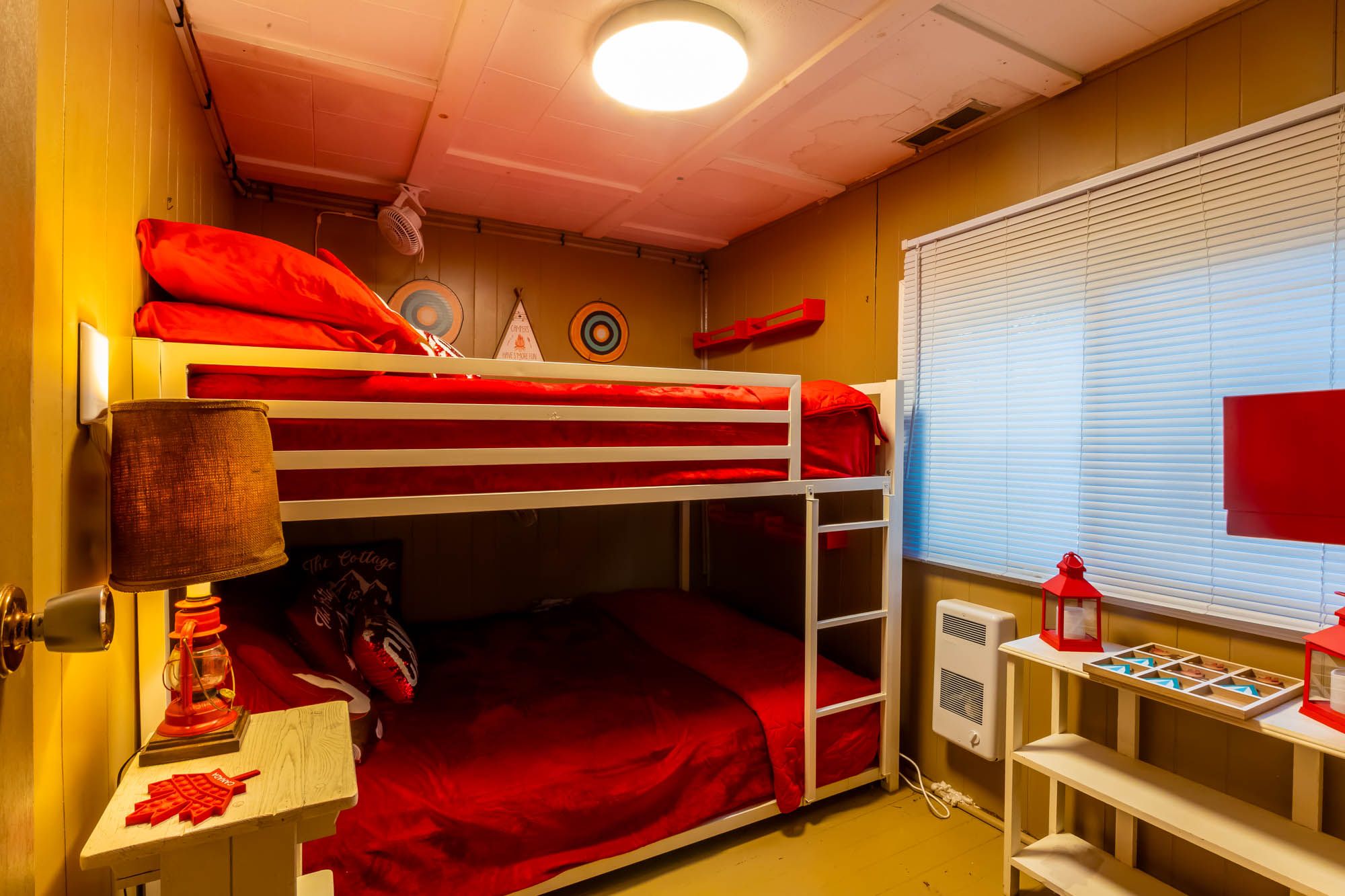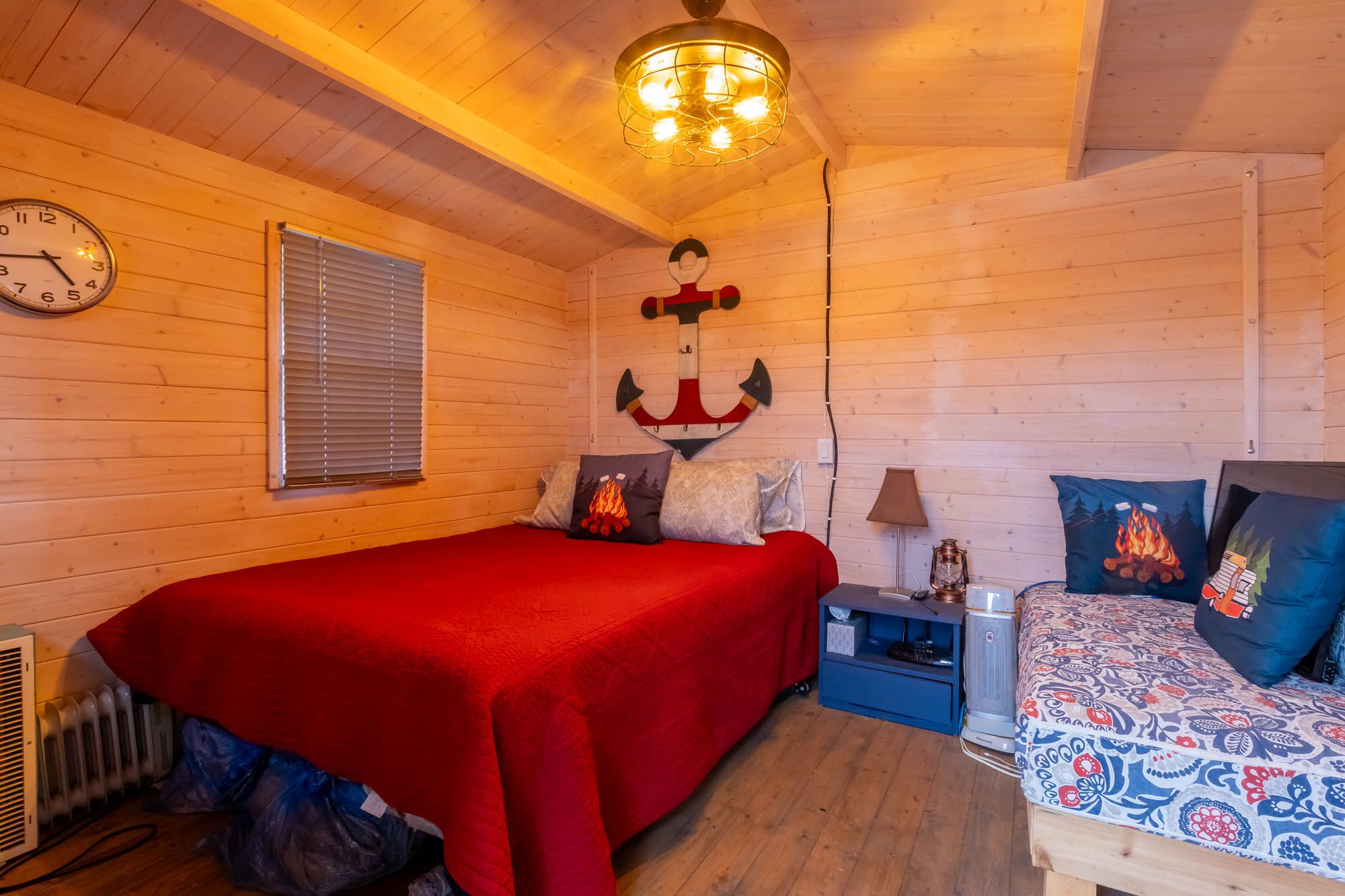 • Cozy Bunkie provides extra space for guests and adventurous kids.