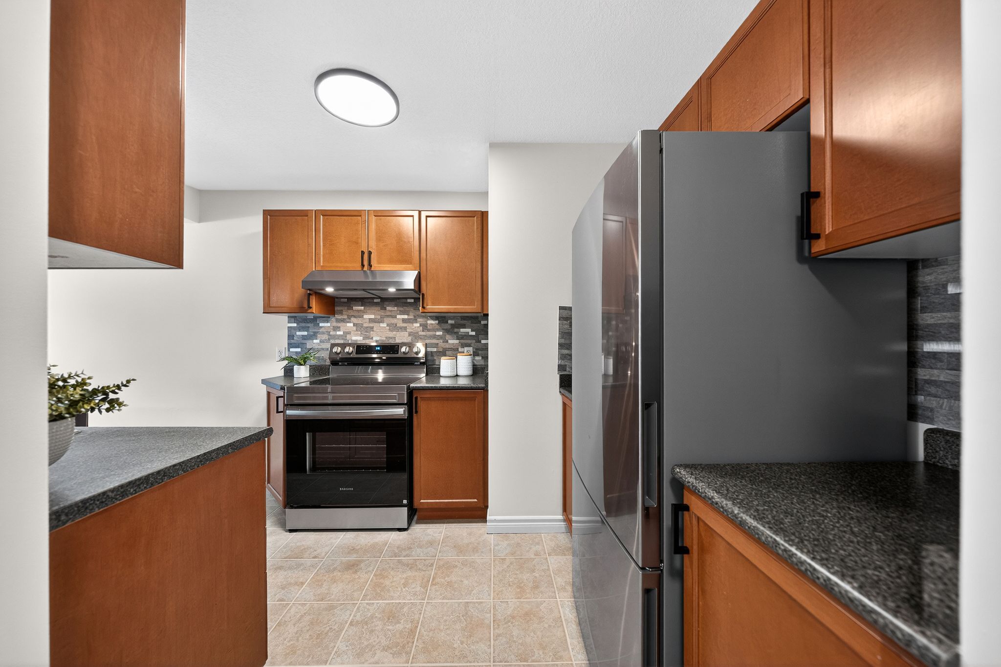 Welcome to this beautifully updated 3-bedroom, 4-bathroom townhouse( attached by garage on one side only) offering the perfect blend of comfort, functionality, and location. Boasting over 2000 sq ft of living space including a fully finished basement, this home sits on an impressive 157 ft deep lot with no neighbours at the back, providing exceptional outdoor space and privacy. The upper level features three spacious bedrooms, including a primary suite complete with its own private ensuite, along with an additional full bathroom to accommodate family or guests. The main floor offers a bright and inviting layout, ideal for both everyday living and entertaining. The finished basement is a standout feature, offering high ceilings, large sunshine windows that flood the space with natural light, and a full bathroom-making it perfect for a recreation area, home office, or guest suite. This home has been extensively updated in 2026, including fresh interior paint throughout (doors, closets, baseboards, and trims), brand new carpet in all bedrooms, professionally cleaned and sealed tiles, and all new light fixtures. The kitchen is equipped with a new stove and range hood (2026), along with a newer fridge (2025) and dishwasher (2023). Bathrooms have also been refreshed with updated faucets, sinks, lighting, and mirrors. Exterior upgrades add even more value, featuring a brand new roof (2026), new cement stonework at the entrance (2026), a new front door lock, freshly painted garage and front doors, and fresh mulch throughout the gardens. Located in a highly desirable area with easy access to major highways, this home offers convenience, space, and peace of mind with its extensive upgrades-an excellent opportunity for families, professionals, or investors alike.