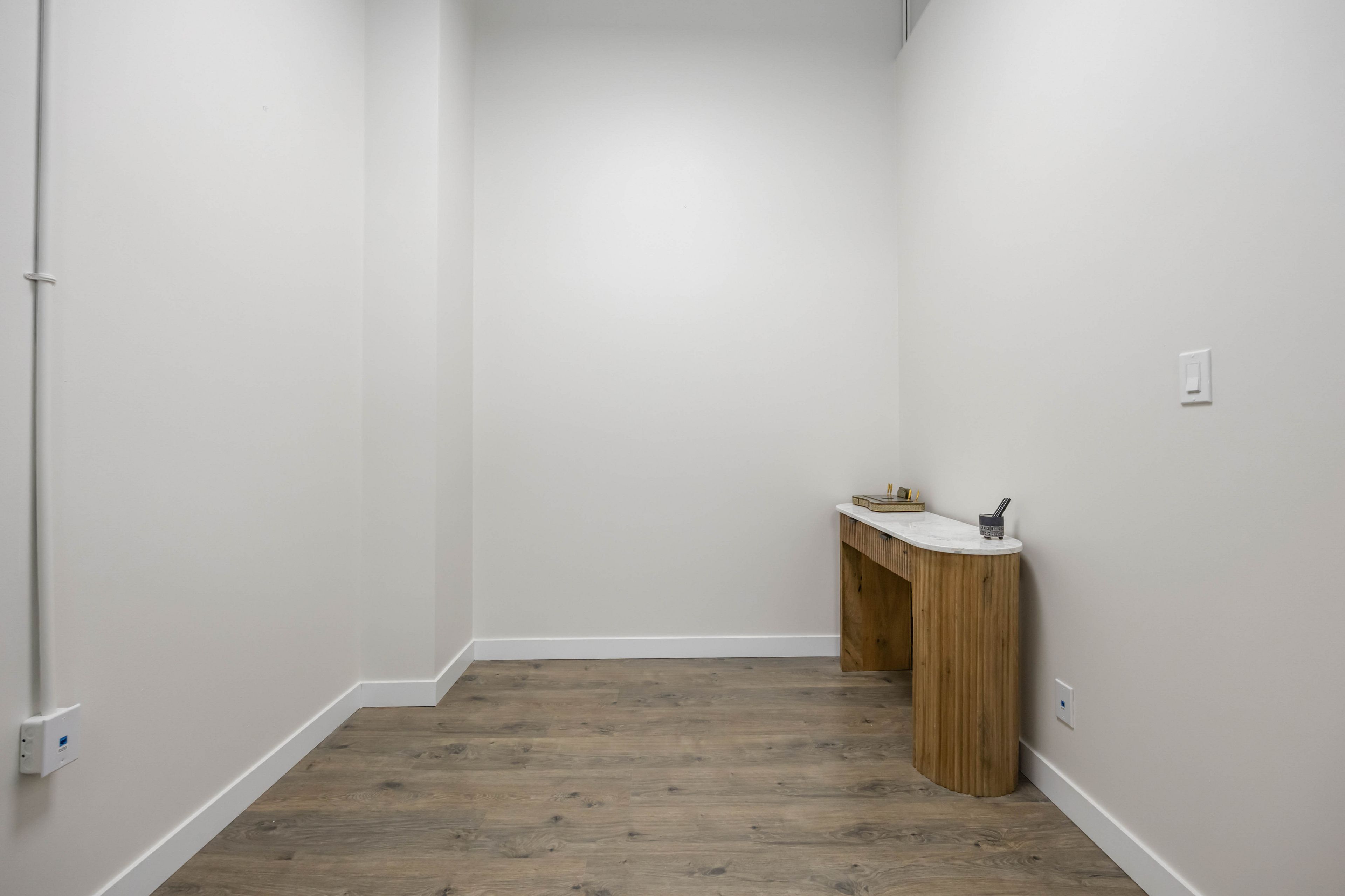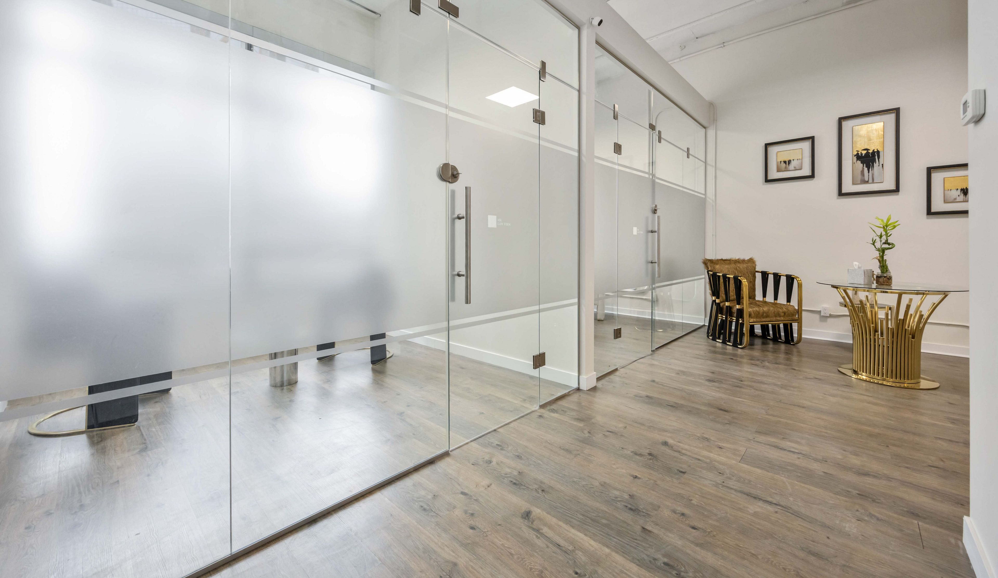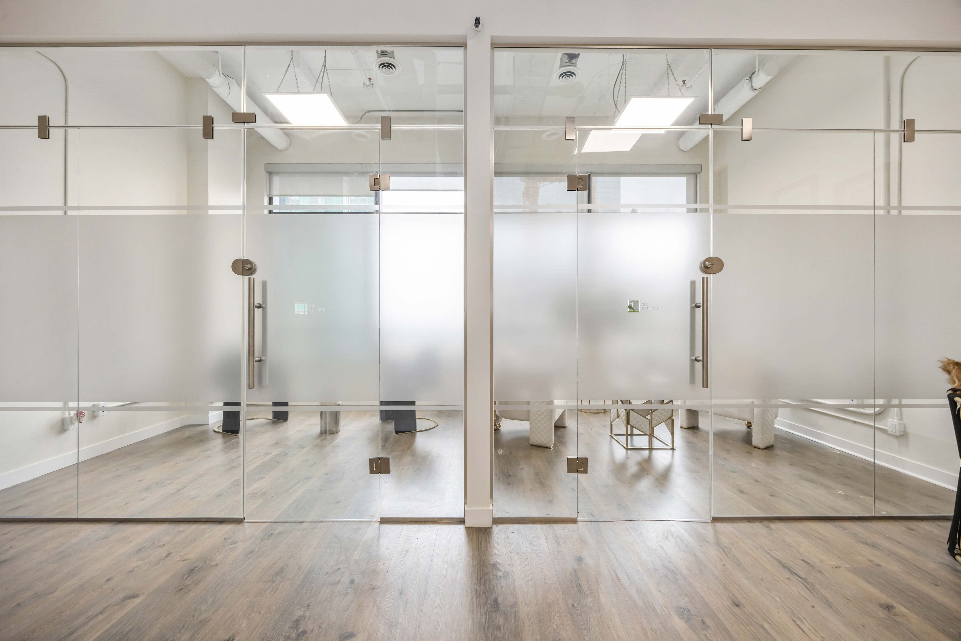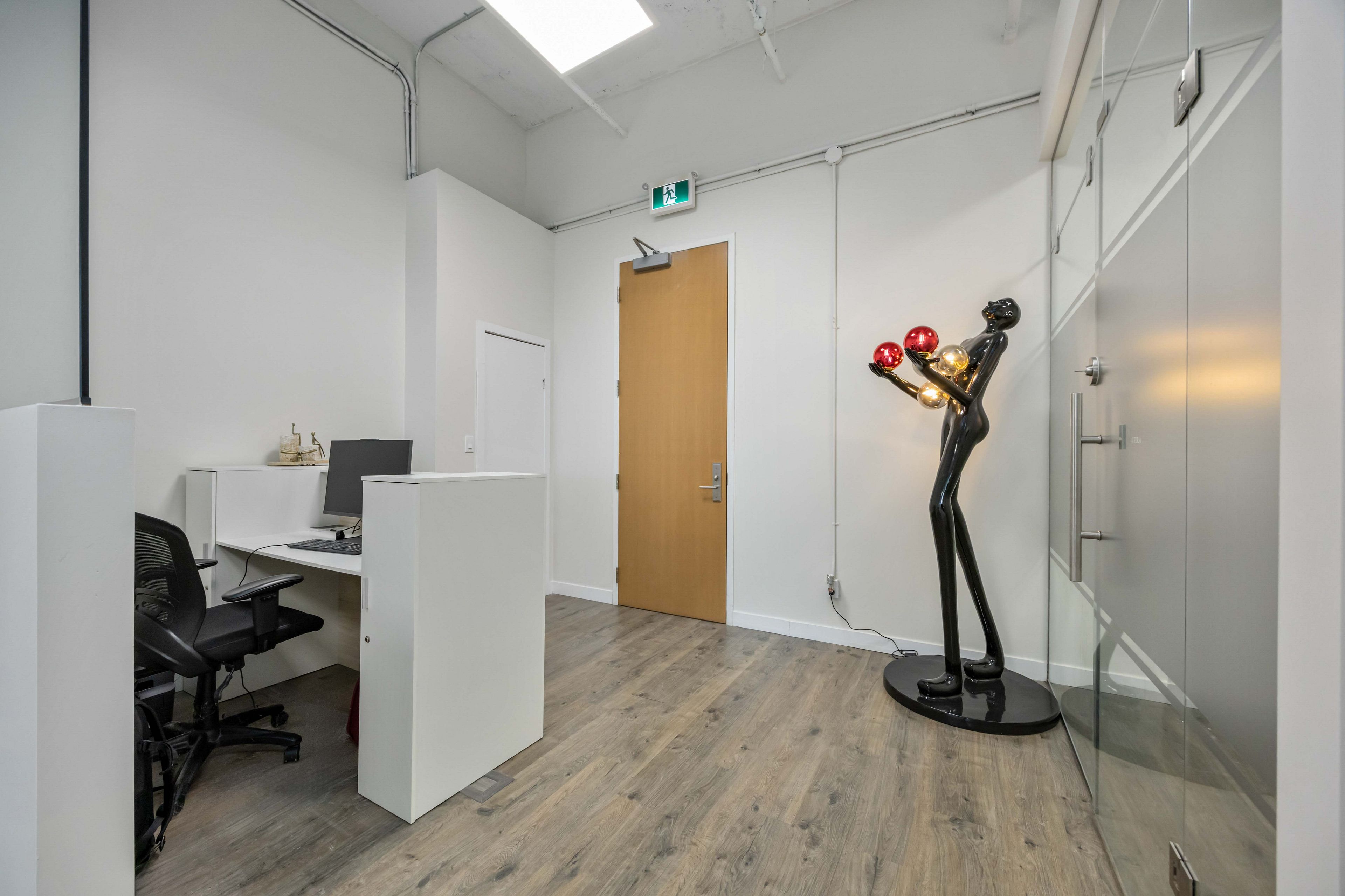 • Bright unit with four private glass offices and 13' ceilings.