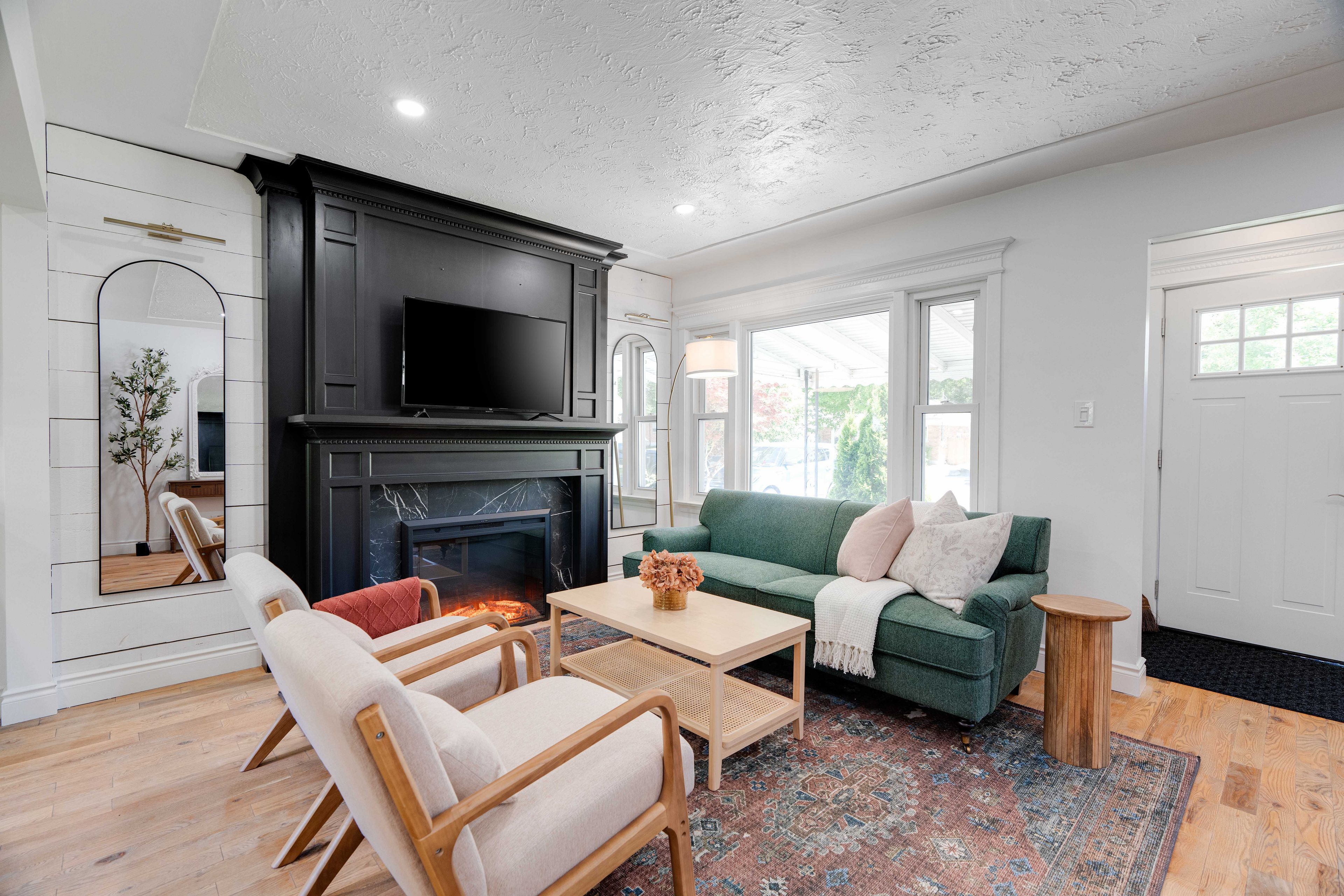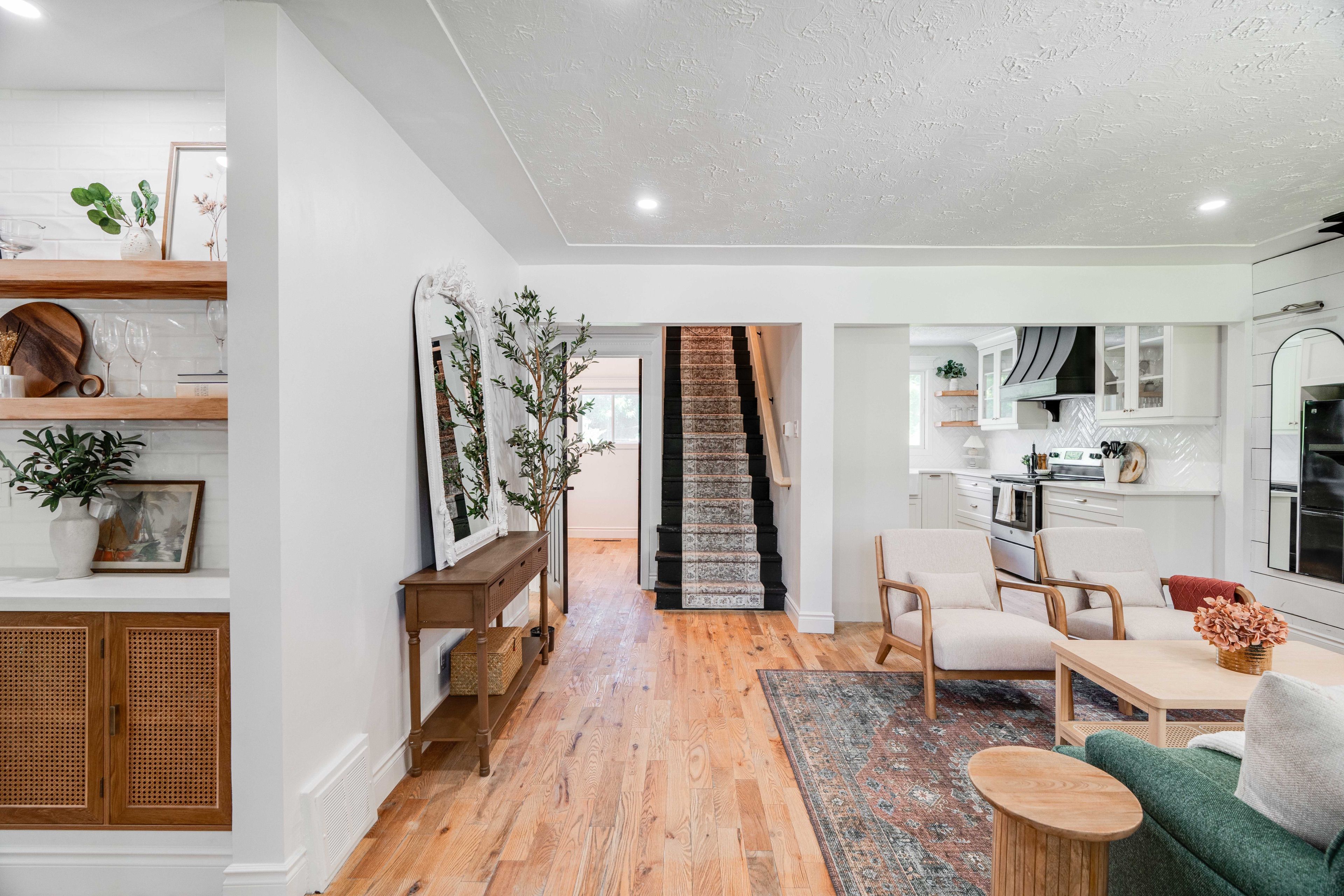 • Updated kitchen and bathrooms with hardwood flooring throughout the main level.
