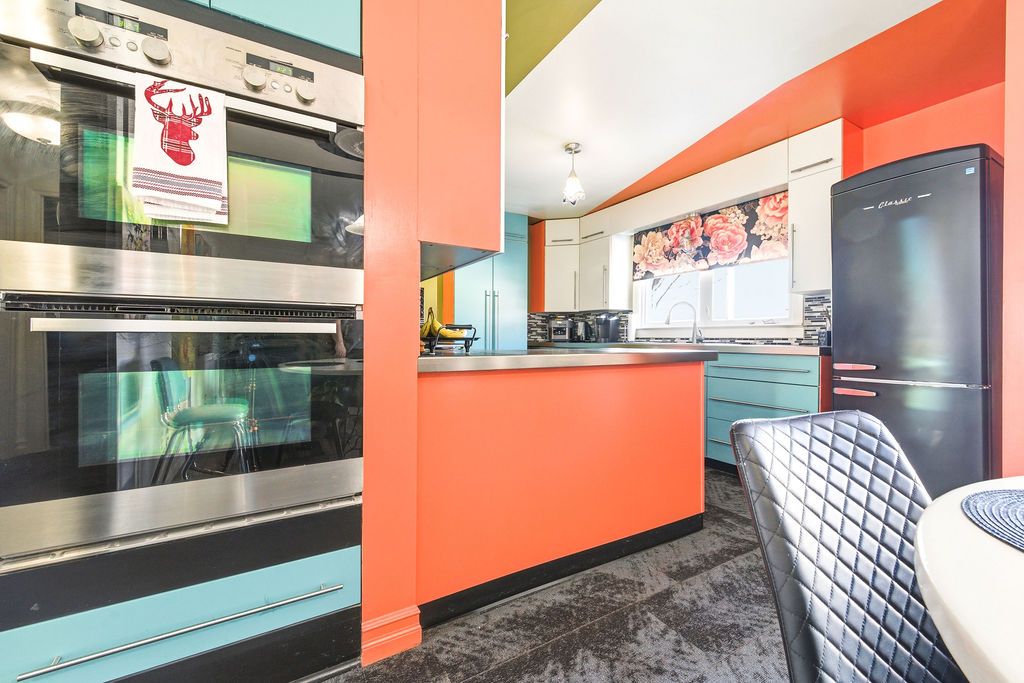 Step into this charming vintage-eclectic bungalow that perfectly blends character, comfort, and functionality. This inviting 2-bedroom, 1-bath home offers a warm and welcoming atmosphere with thoughtfully designed creative storage solutions throughout, making the most of every space. Enjoy the added convenience of main floor laundry, making everyday living easy and efficient. The kitchen is a standout for home chefs, featuring a gas range and double wall oven, ideal for preparing family meals or entertaining with ease. Downstairs, the basement offers excellent potential to be fully finished, providing the opportunity to expand your living space to suit your needs. Outside, the home continues to impress with beautiful curb appeal and a spacious, private fully fenced backyard designed for summer enjoyment. Relax or entertain on the generously sized deck, take a dip in the above-ground pool featuring walk-in stairs for easy access, and make use of the convenient natural gas bbq hookup for effortless outdoor cooking.