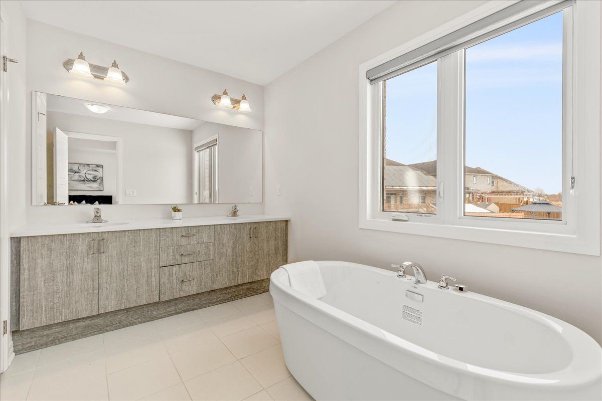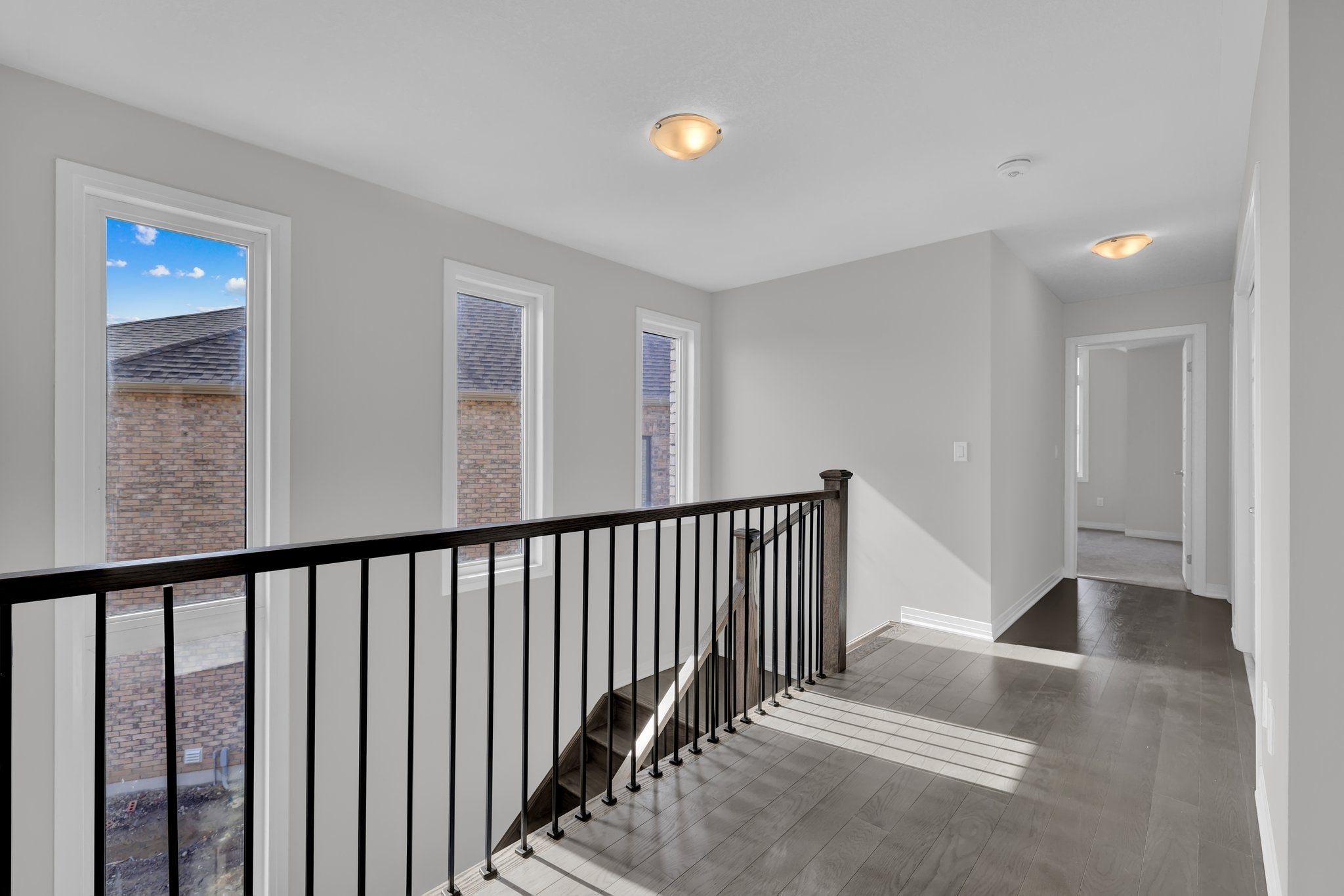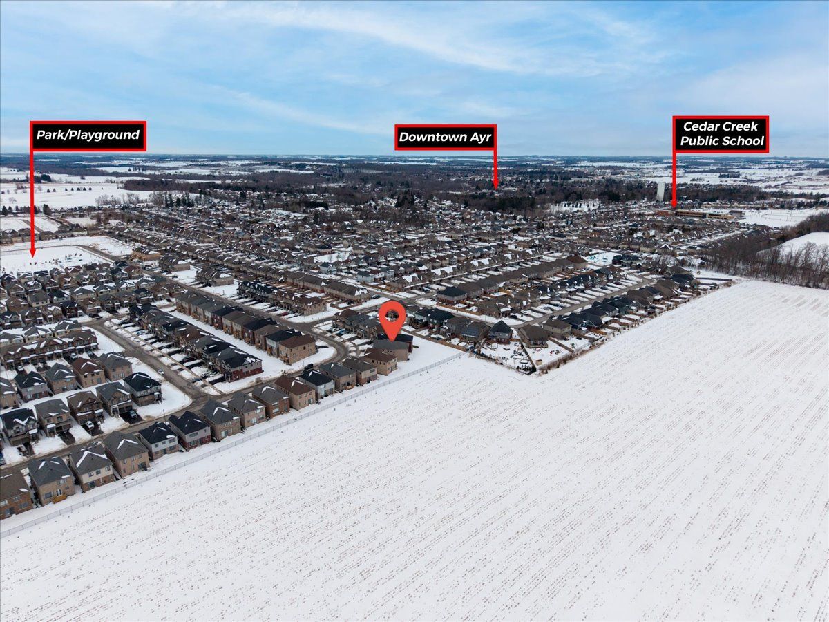 Rare opportunity to own an executive 4-bedroom detached home with a 177 ft deep pie shaped lot in a newly built community by the reputable cahet homes. This 1-year-old executive detached home is situated on one of the largest pie-shaped lots in the subdivision. Featuring double-door entry, hardwood flooring throughout the main floor, and 9 ft ceilings, upgrades including 8 ft doors throughout, enhancing the grand and elegant feel of the home. The spacious living and dining areas are filled with natural sunlight, while the massive family room complete with a gas fireplace flows seamlessly into the custom chefs kitchen with brand-new stainless steel appliances. Upstairs, you will find 4 large bedrooms and 3 full bathrooms, including a primary suite with a walk-in closet and a fully upgraded ensuite with breath taking views of the gorgeous lot. The 177 ft deep, pie-shaped lot provides unobstructed views, making this home truly one of the best in the neighborhood. With attractive curb appeal and a prime location, this is a must-see home to truly appreciate its beauty and space! Located in a family-friendly community with schools and parks just steps away, this home is also 15 minutes from cambridge & kitchener, 5 minutes to highway 401, and less than an hour from brampton, offering both tranquility and convenience.