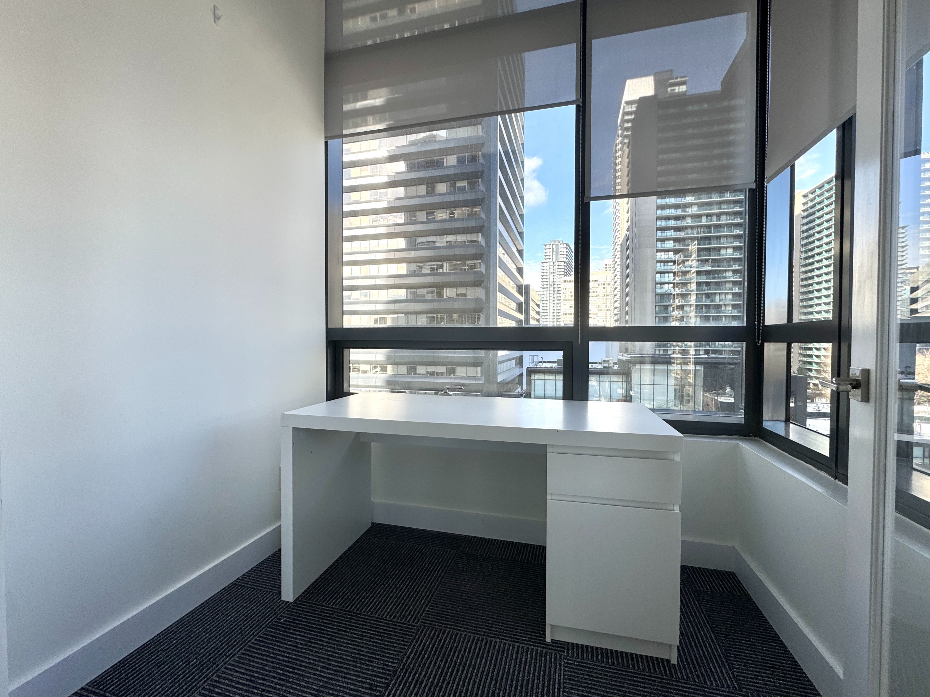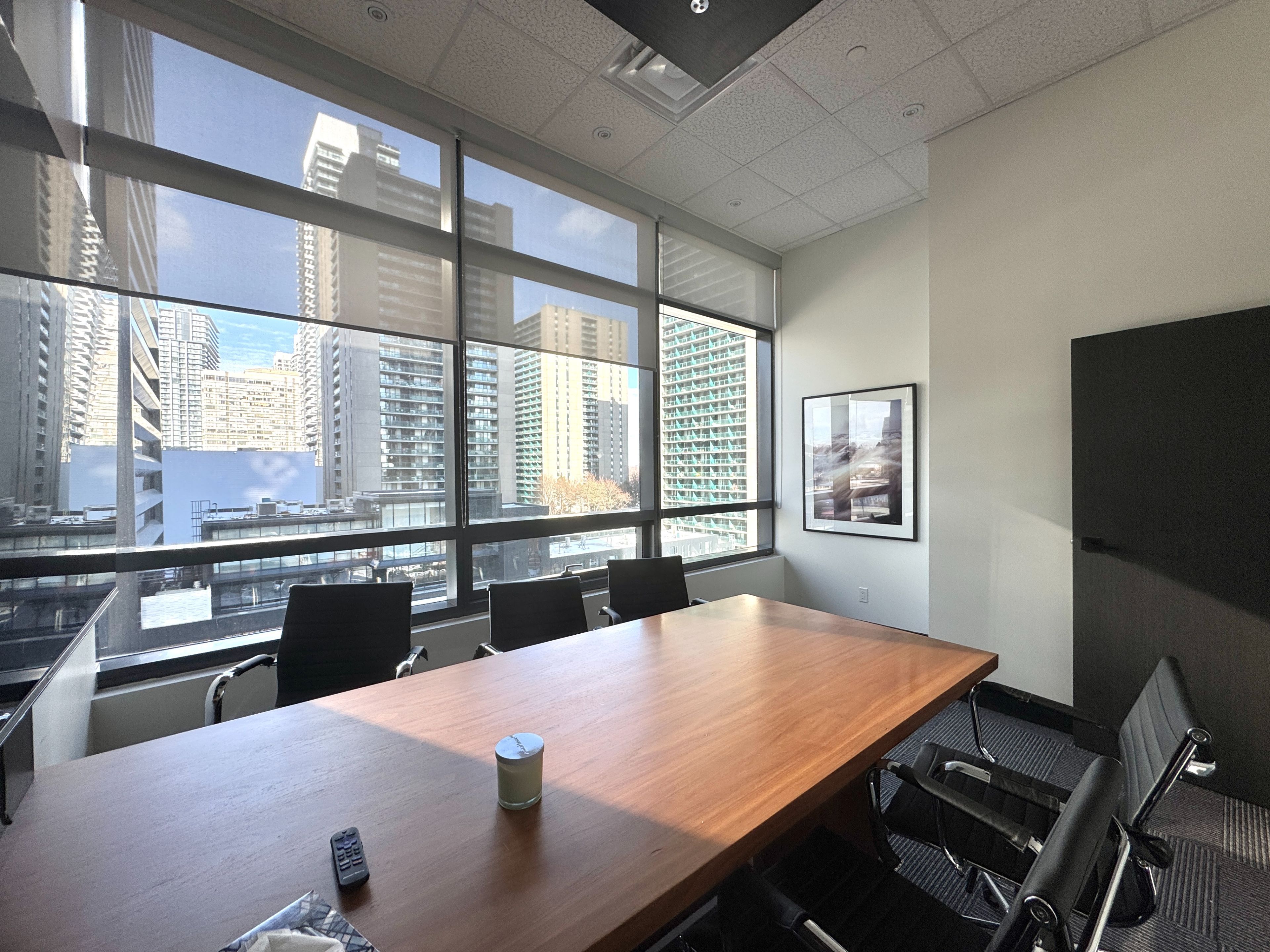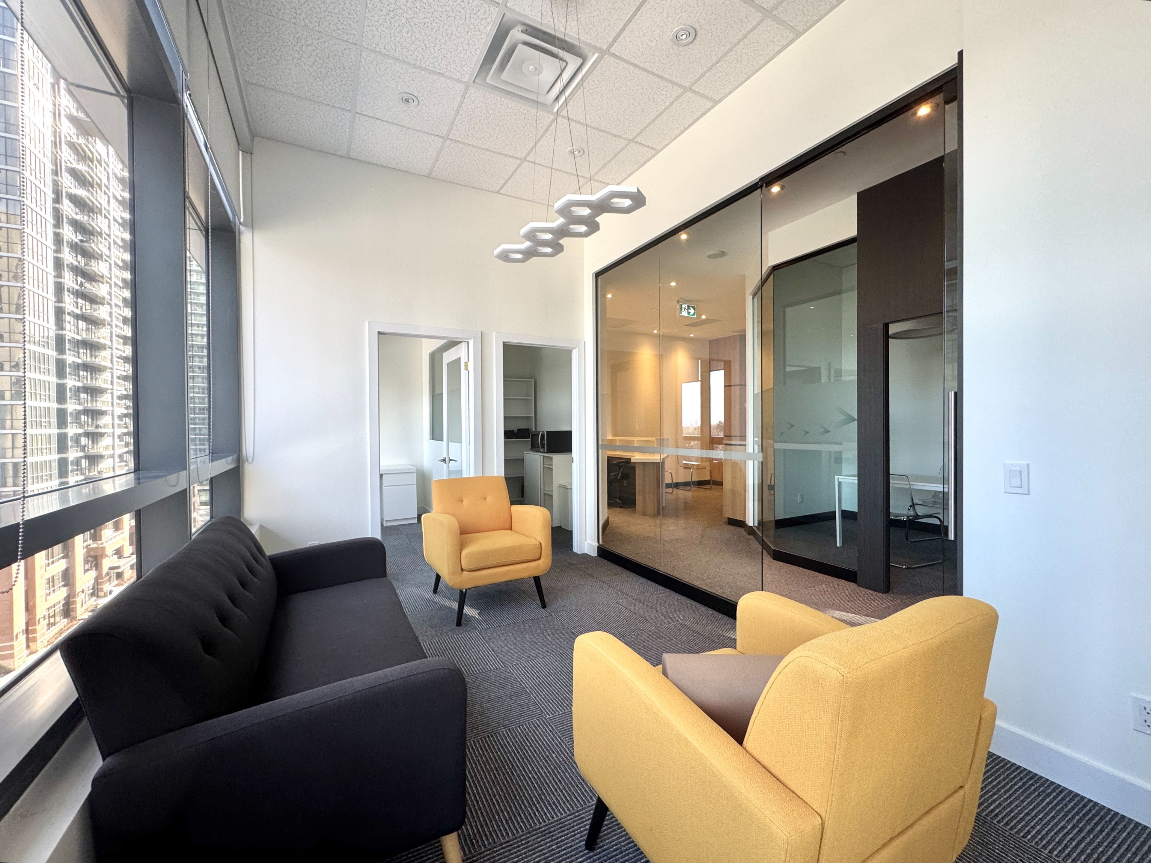 Prestigious & meticulously designed office in hallmark centre. Secure your business in this turnkey, fully furnished corner office. This space boasts a high-end design, perfectly laid out with a welcoming reception, three executive offices, two formal meeting rooms, and a contemporary central bar area-perfect for client entertaining or staff collaboration. Situated on the north-east corner, it offers inspiring city views. The building provides a grand lobby, concierge, and security. Benefit from major anchors, whole foods and royal bank, direct access to the subway, and fast connection to highway 401.