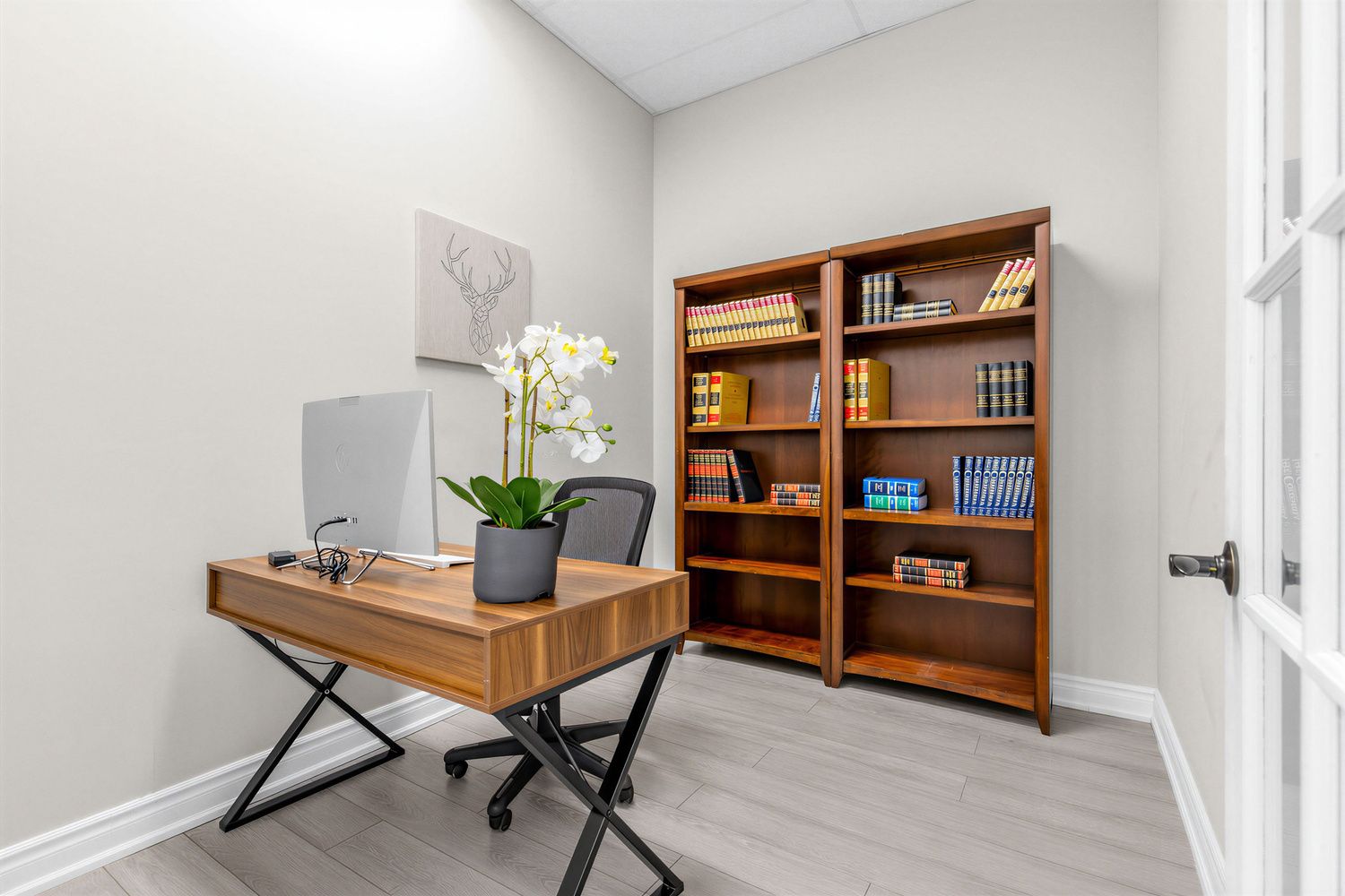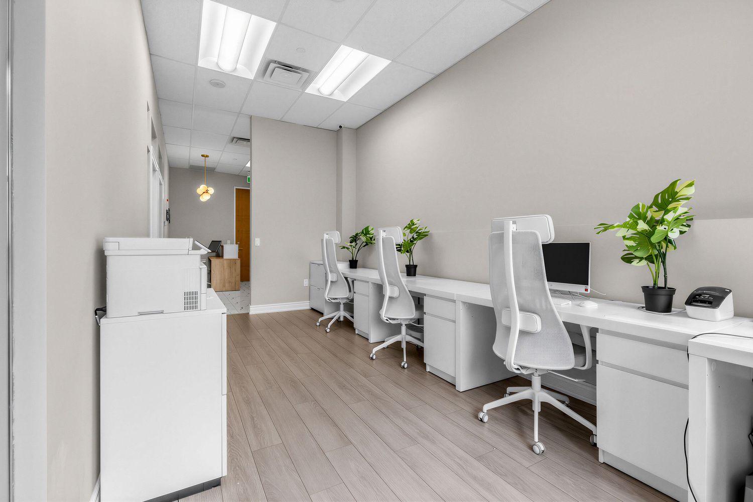 • Turnkey suite featuring an efficient layout and custom reception area.