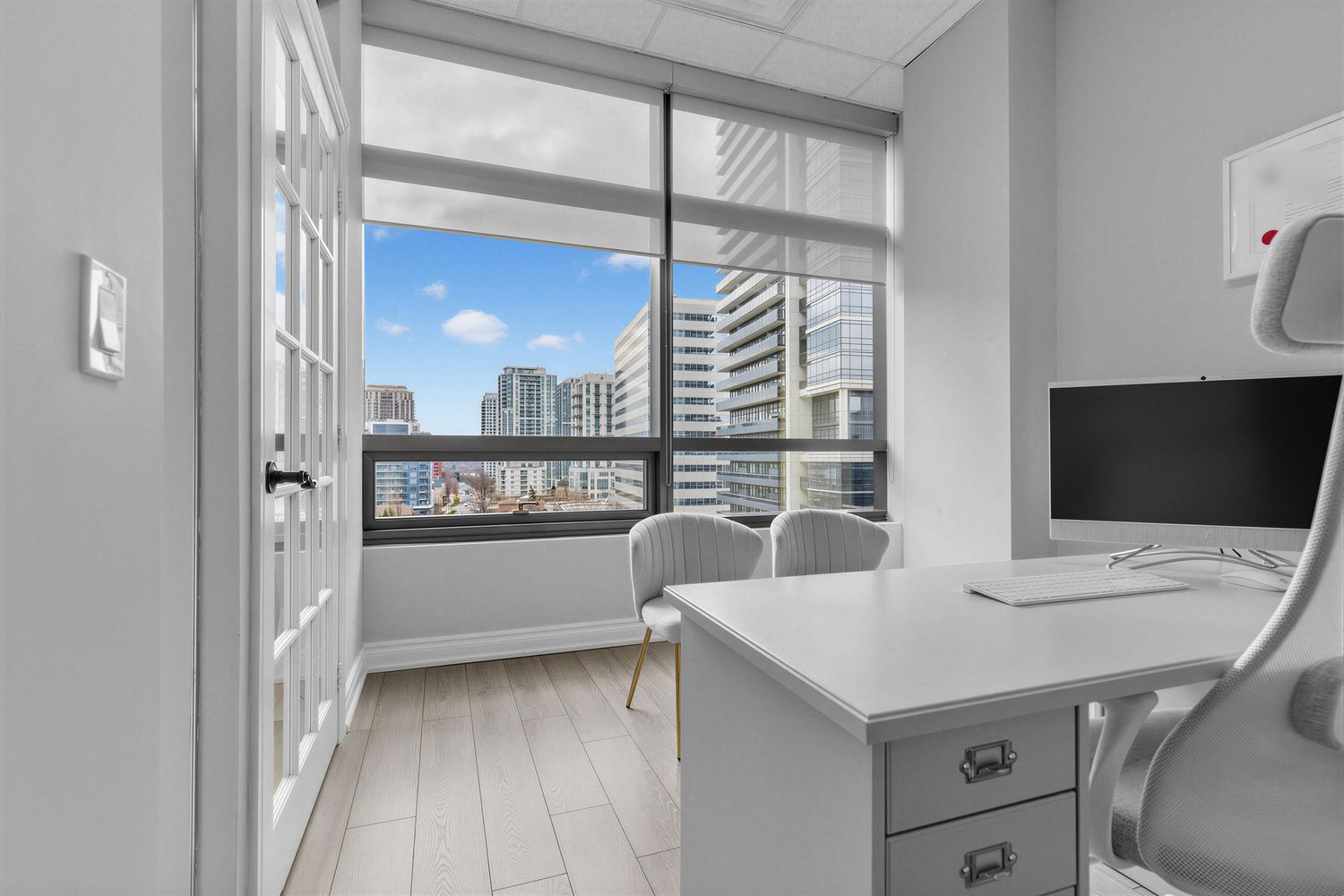 Position your business at the iconic hullmark centre - north york's premier corporate address at yonge & sheppard with direct underground access to two ttc subway lines and immediate connectivity to hwy 401 & 404. This immaculate, ultra-clean, turnkey suite stands apart with a rare, highly efficient layout: impressive reception with custom feature wall, glass boardroom with kitchenette, open collaborative workspace, and 3 private offices. Sun-filled with premium south exposure overlooking gardens and pool-a far more desirable and calming outlook. Soaring 12' ceilings, no carpet, full wired network & security. Ideal for medical, legal, financial, consulting, and other professional uses. Located in a flagship mixed-use complex anchored by rbc, rexall, restaurants, and whole foods, with 24-hour concierge, security, boardroom facilities, and convenient underground parking. A refined, move-in-ready space that delivers a strong first impression and elevated client experience. Photos are actual, not virtual. May be purchased fully furnished.