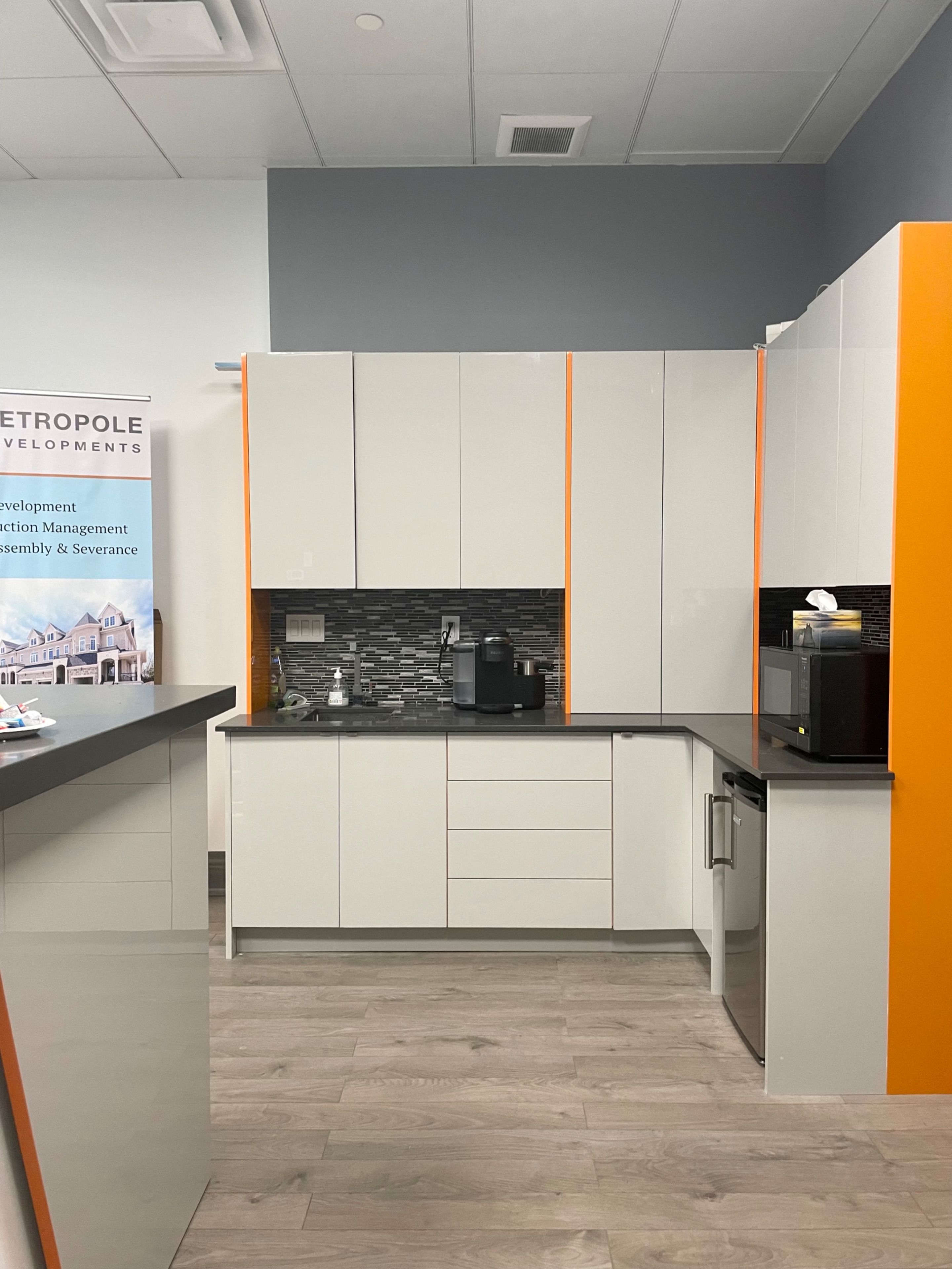 • Professionally renovated office with hardwood floors throughout the space.