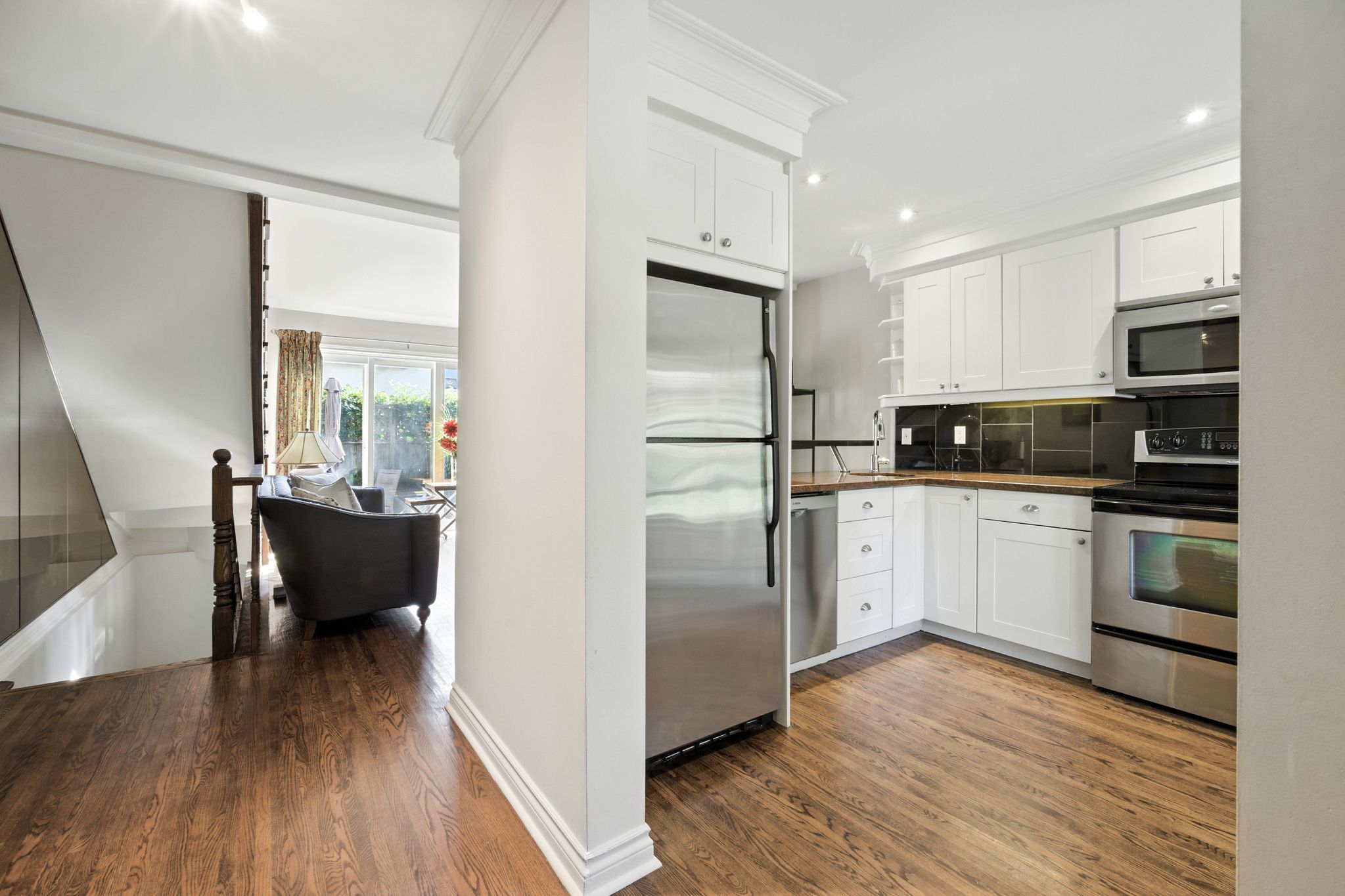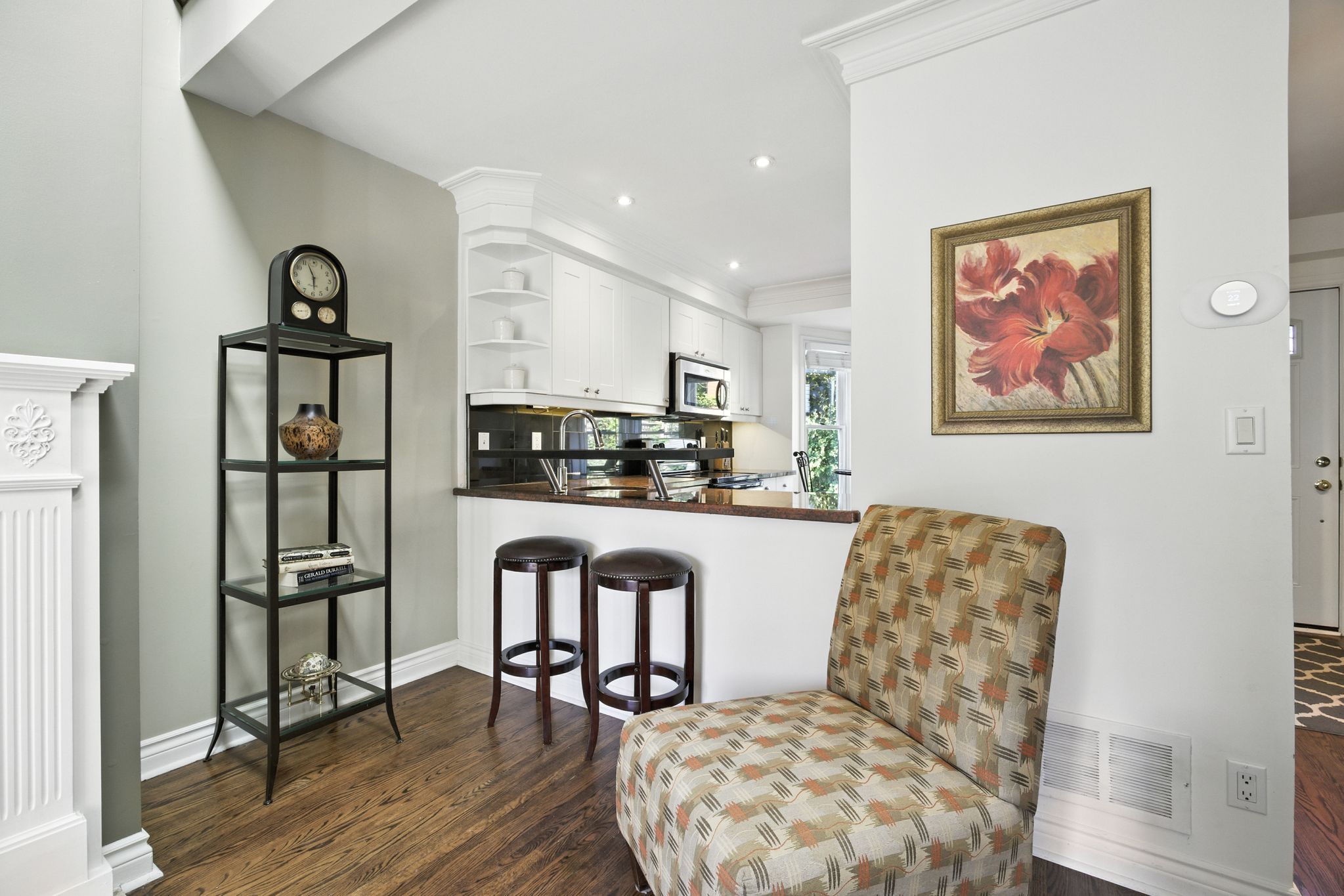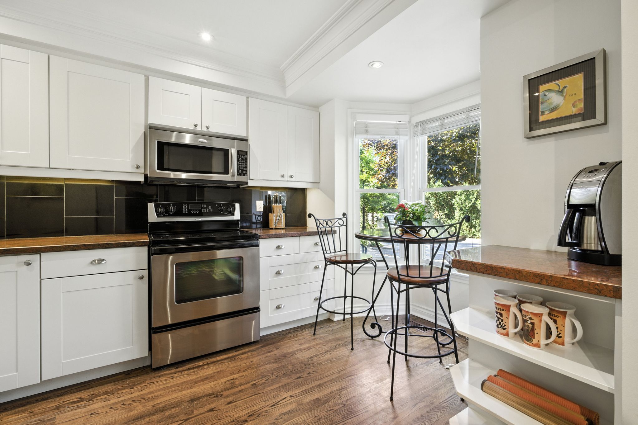 Exquisite georgian-style end-unit townhouse offered as a turn-key furnished rental investment or luxury personal retreat in the heart of downtown burlington. Located on a quiet street just one block from lake ontario, spencer smith park, the performing arts centre, boutique shops & restaurants, this stylish 2-bedroom, 2-bath home combines historic charm with modern upgrades. Featuring soaring vaulted ceilings, remote skylights, a gas fireplace, rich hardwoods & crown mouldings. Gourmet kitchen w/ granite counters, breakfast bar, pot lights & stainless appliances. Loft-style primary w/ ensuite tub & shower. Flexible guest br/den. Private courtyard patio w/ bbq, energy-efficient laundry, plush furnishings & linens - truly all-inclusive. Off-road parking. Quick hwy & go access to toronto, niagara & pearson. Ideal for long-term executive stays, relocations or worry-free ownership. Exceptional opportunity to own a fully outfitted, income-producing furnished rental in burlington's vibrant lakeside core.