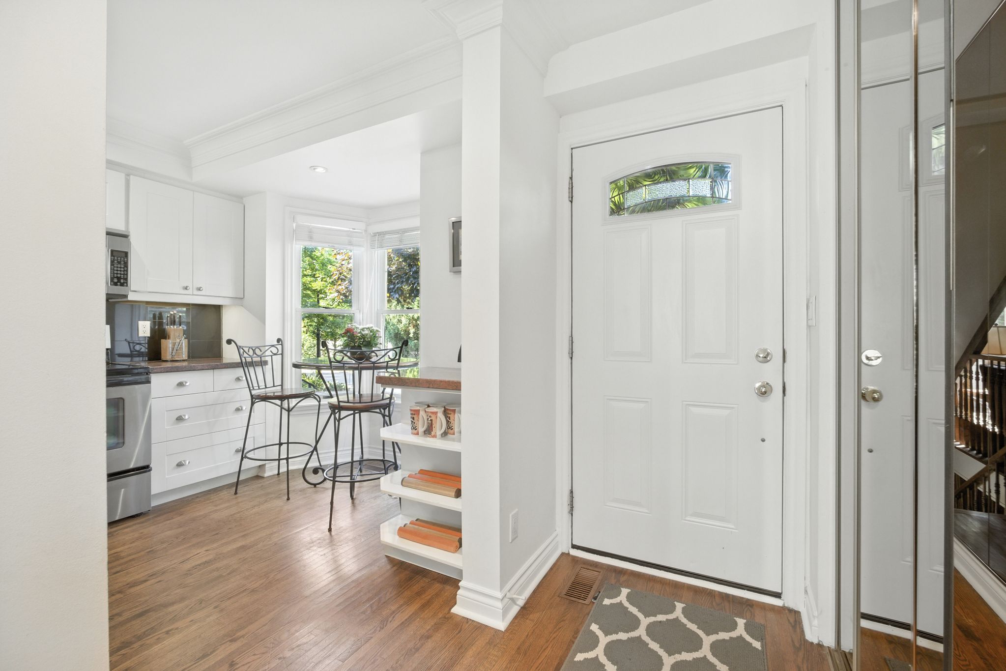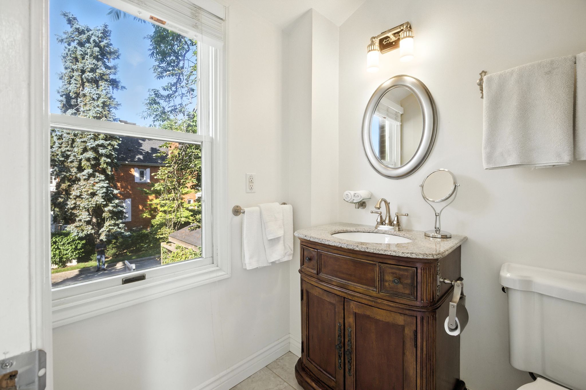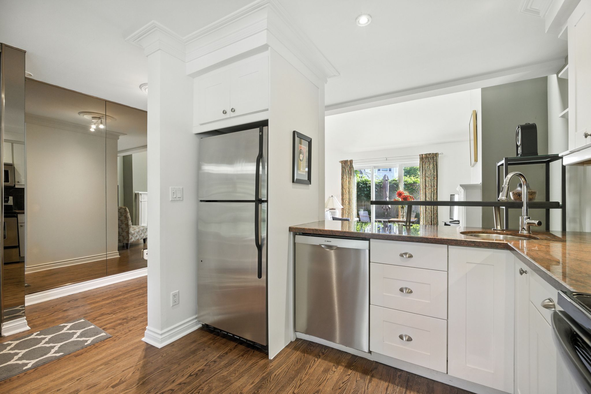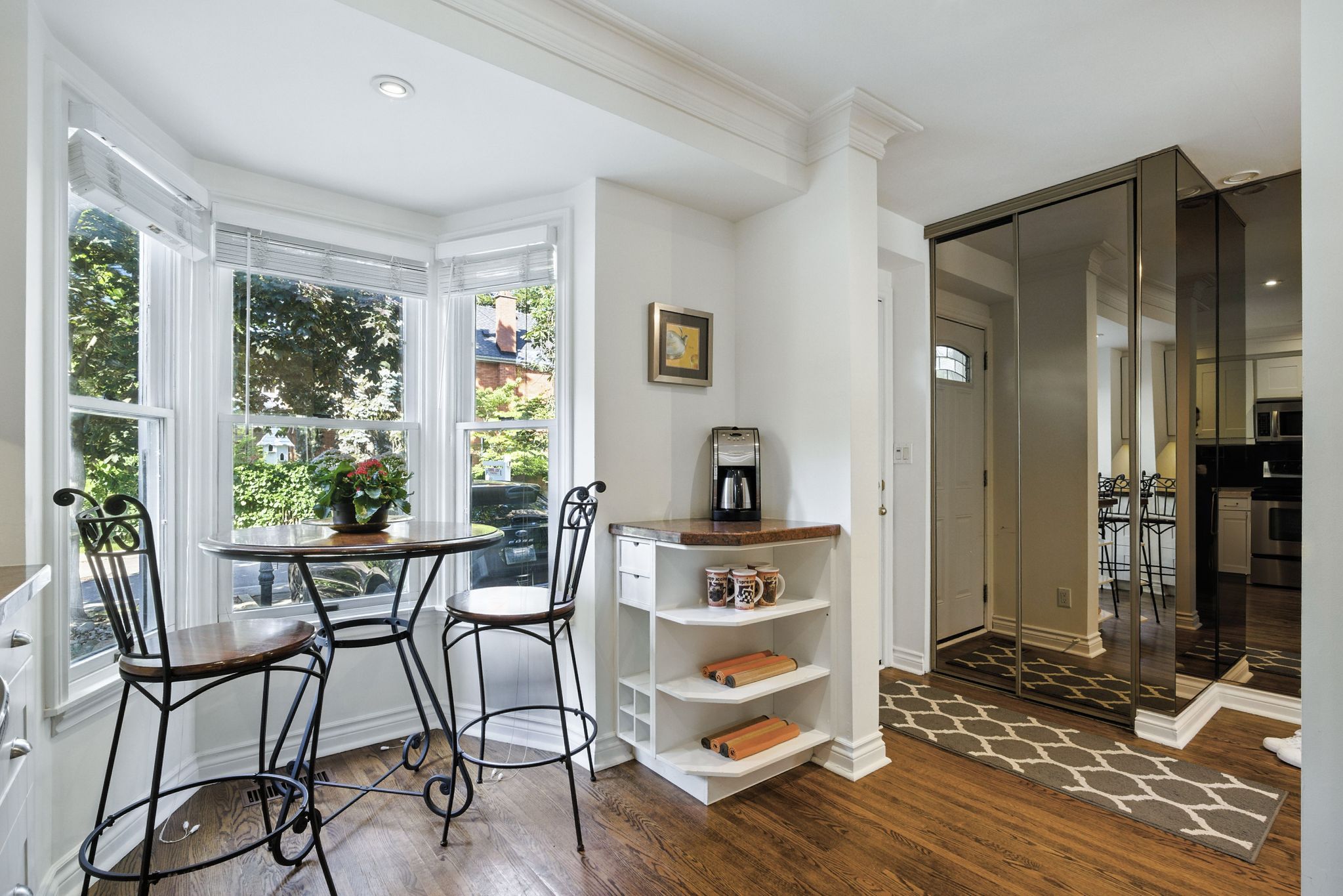 Exquisite georgian-style end-unit townhouse offered as a turn-key furnished rental investment or luxury personal retreat in the heart of downtown burlington. Located on a quiet street just one block from lake ontario, spencer smith park, the performing arts centre, boutique shops & restaurants, this stylish 2-bedroom, 2-bath home combines historic charm with modern upgrades. Featuring soaring vaulted ceilings, remote skylights, a gas fireplace, rich hardwoods & crown mouldings. Gourmet kitchen w/ granite counters, breakfast bar, pot lights & stainless appliances. Loft-style primary w/ ensuite tub & shower. Flexible guest br/den. Private courtyard patio w/ bbq, energy-efficient laundry, plush furnishings & linens - truly all-inclusive. Off-road parking. Quick hwy & go access to toronto, niagara & pearson. Ideal for long-term executive stays, relocations or worry-free ownership. Exceptional opportunity to own a fully outfitted, income-producing furnished rental in burlington's vibrant lakeside core.