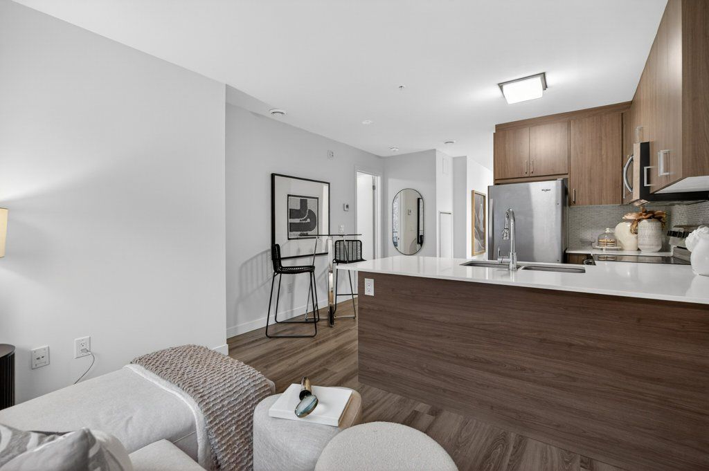 • Modern kitchen seamlessly connects to a cozy living area.