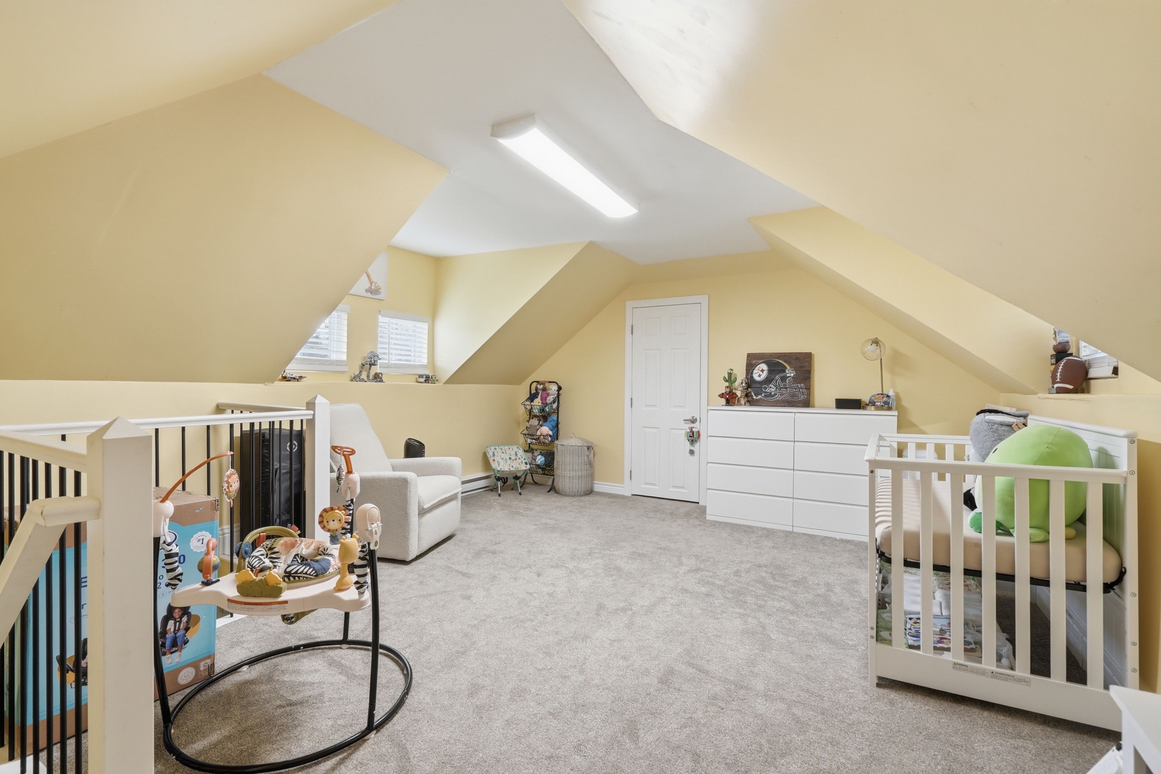 • Flexible upstairs room ideal for play, work, or extra sleeping space.