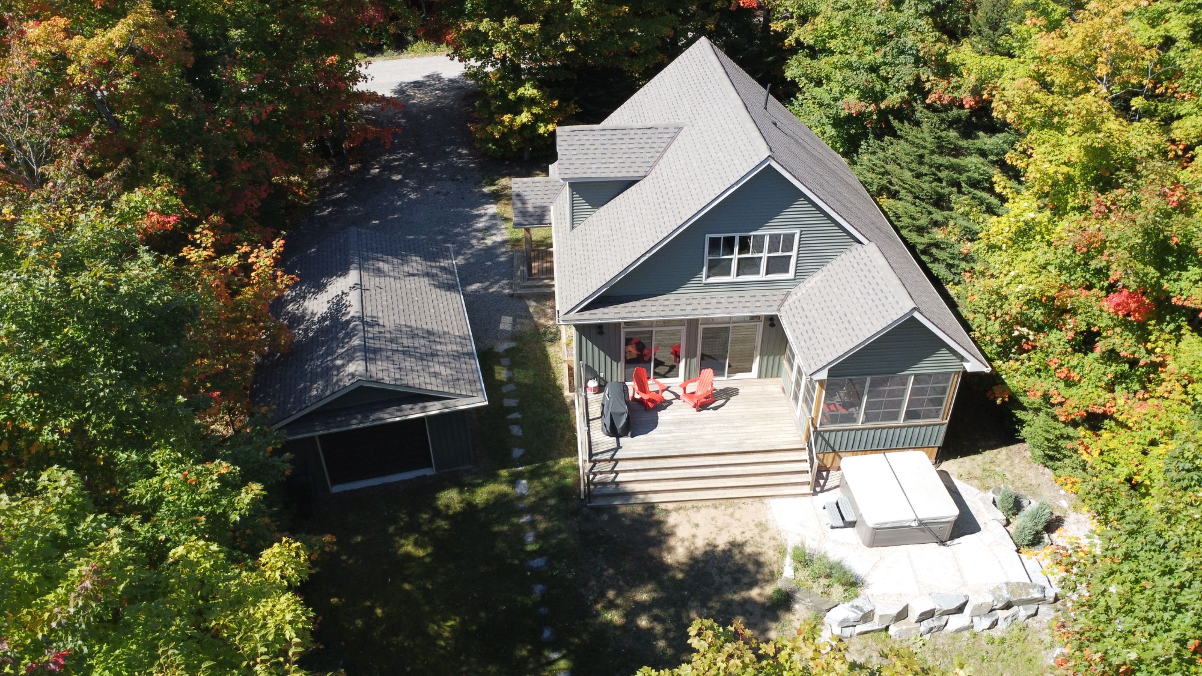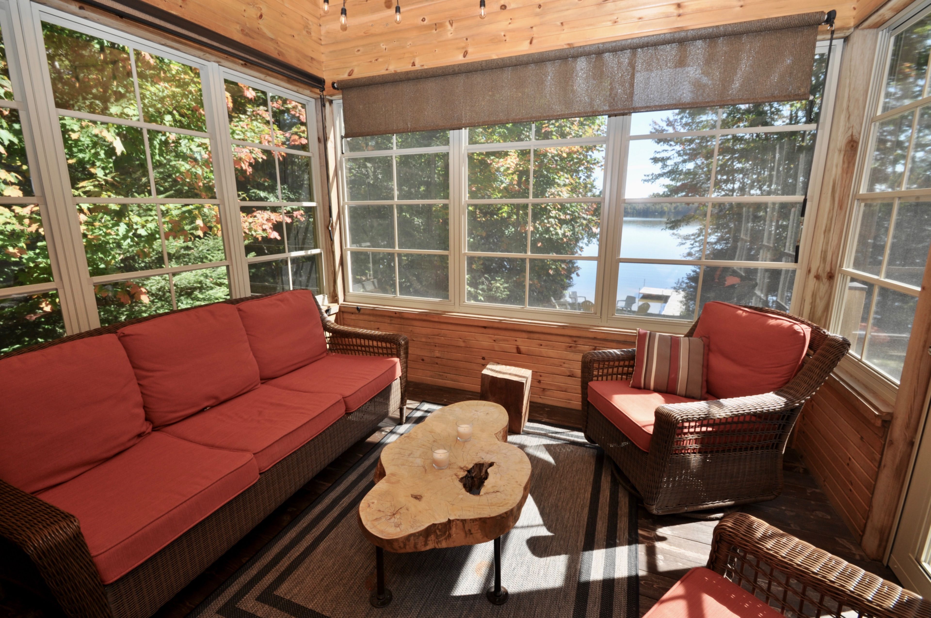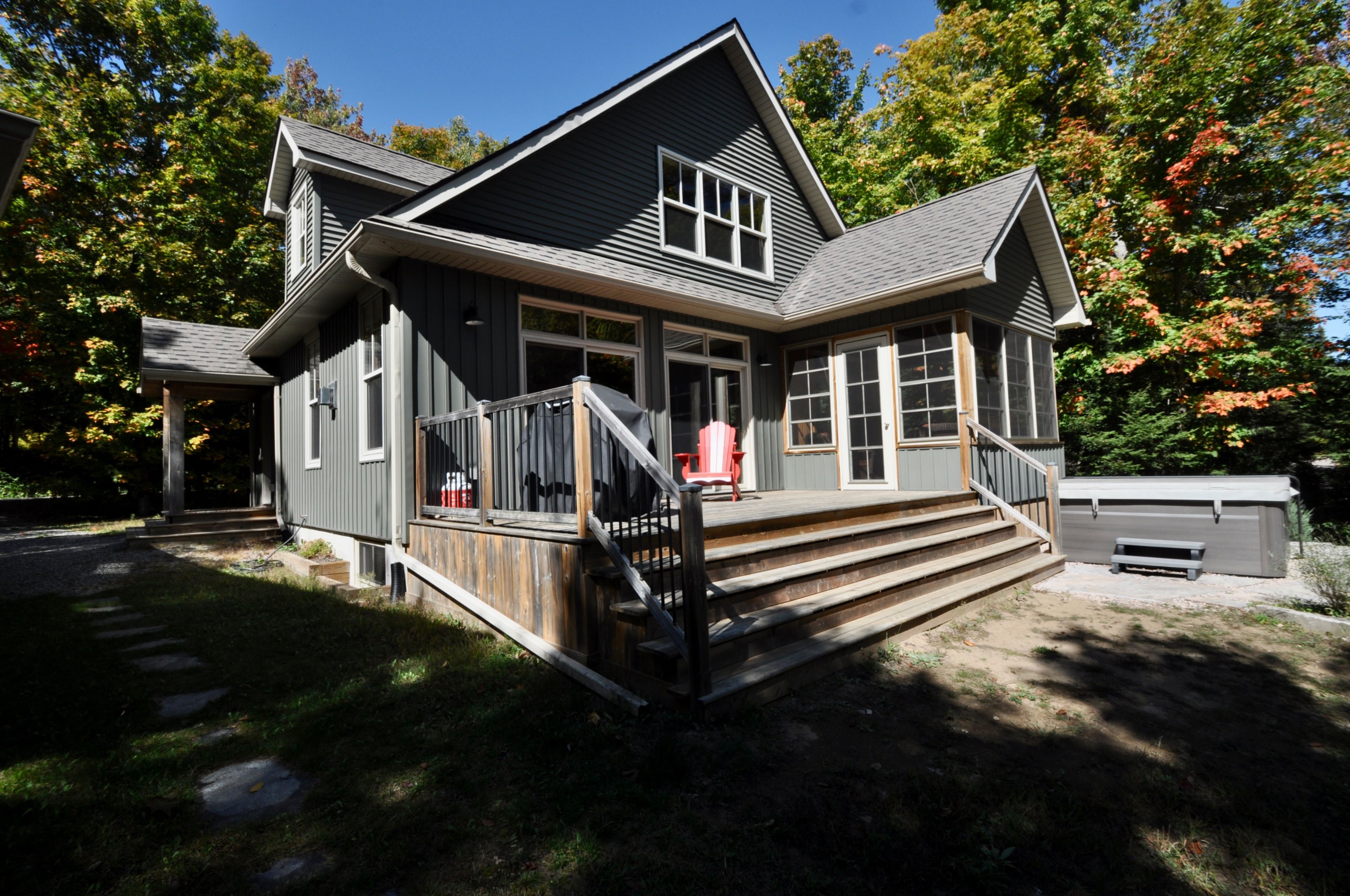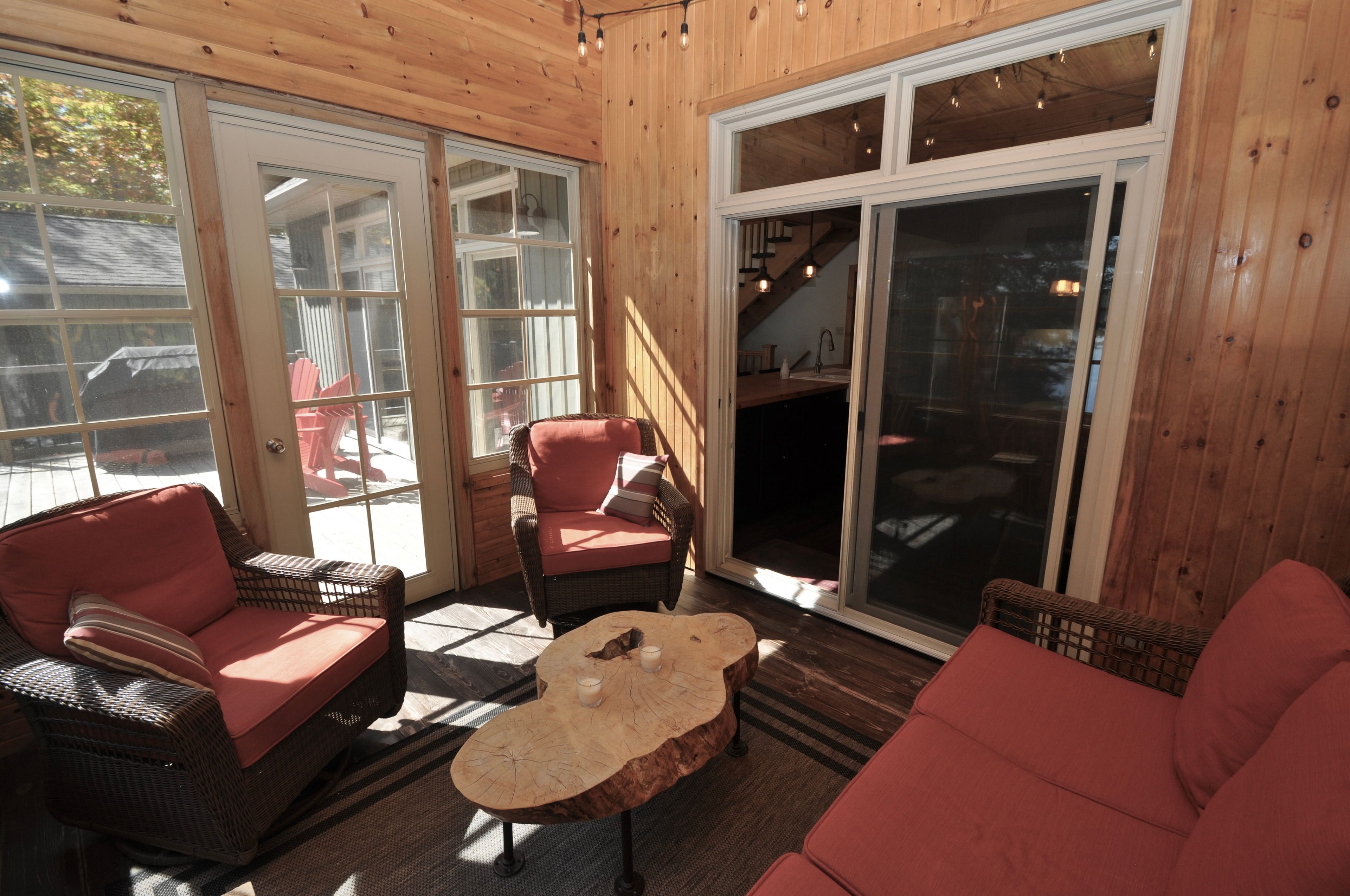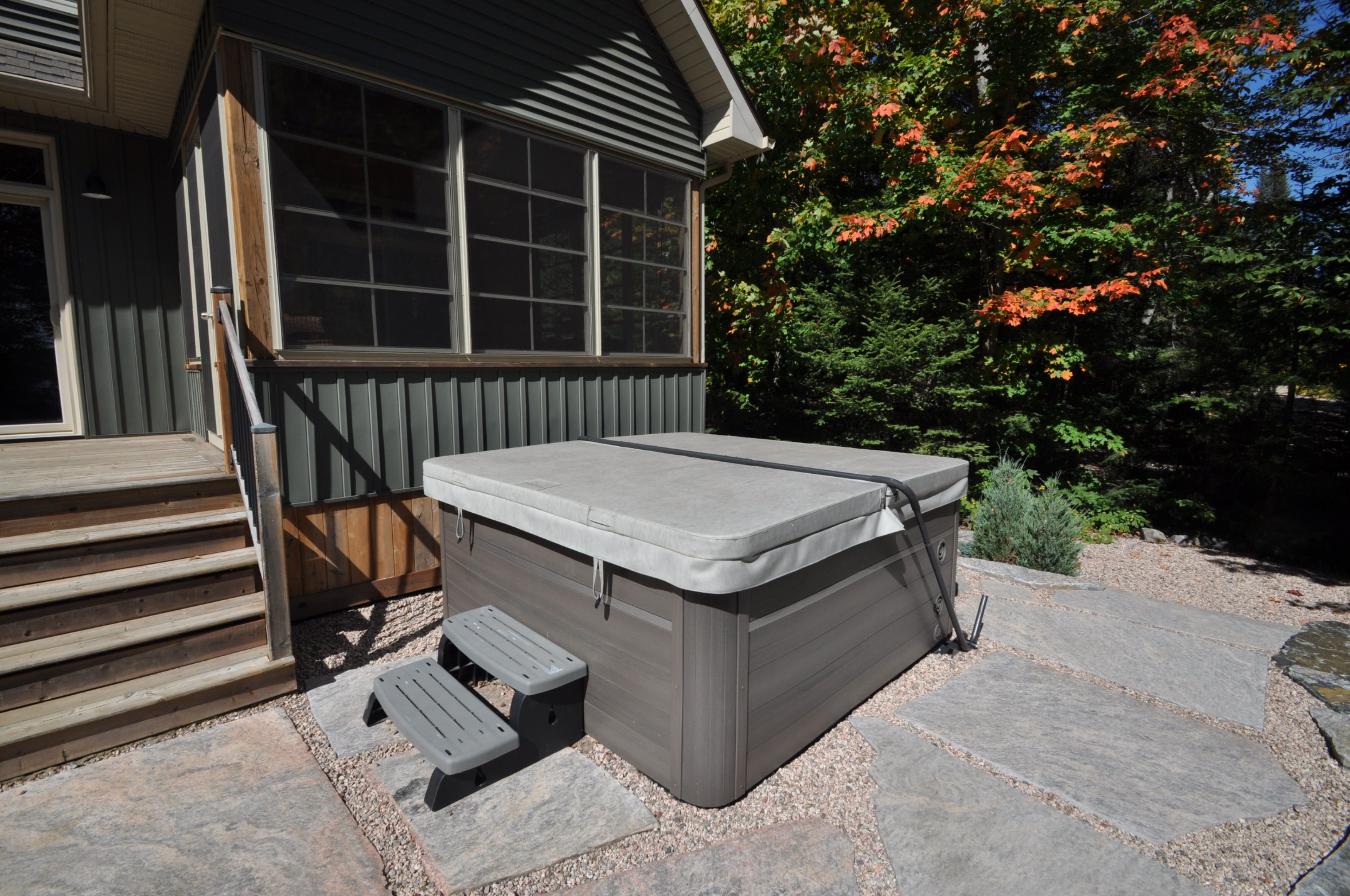 • Three-season screened Muskoka room and inviting hot tub for relaxation.