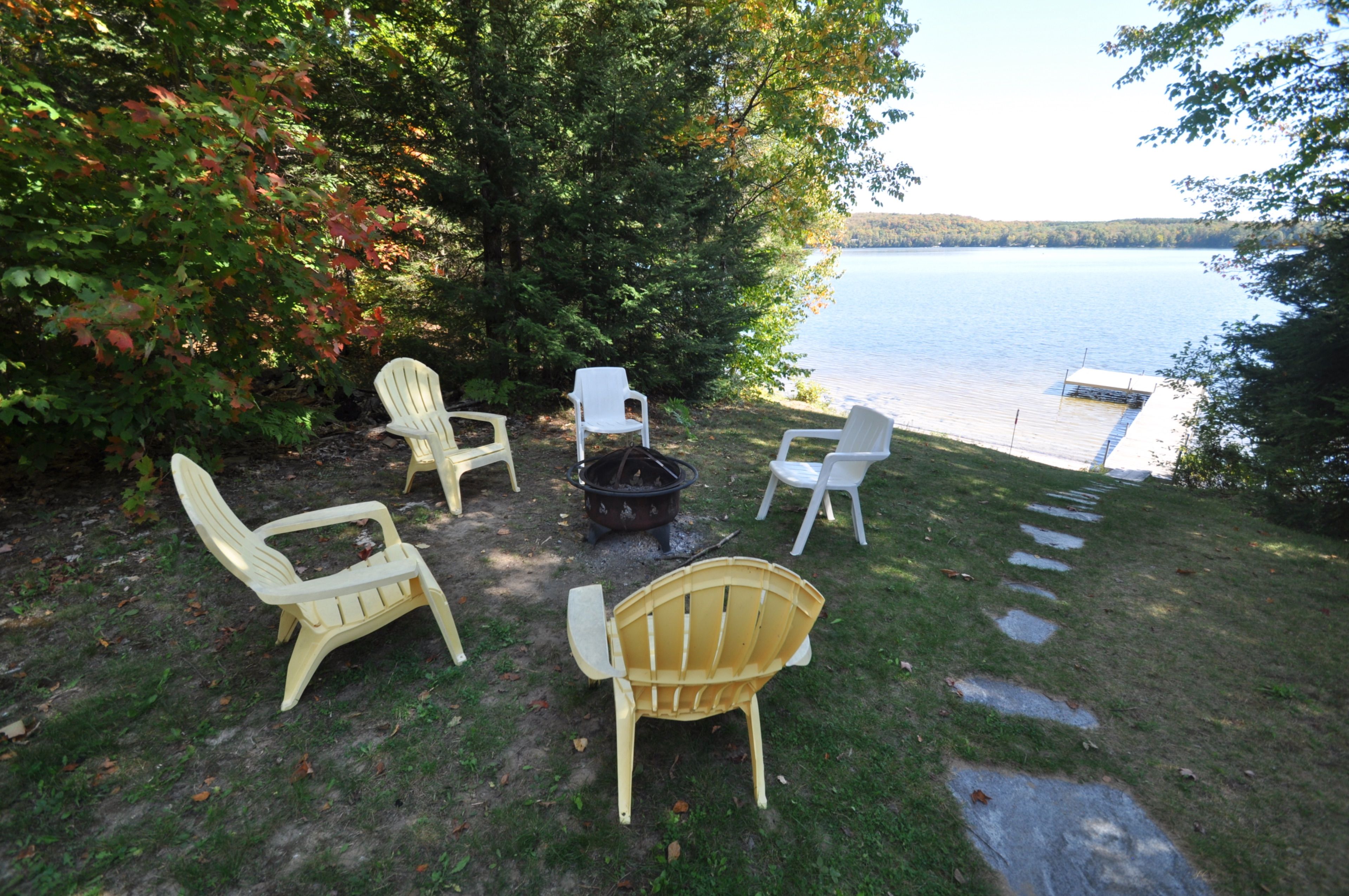 • Large lot features sand beach, fire pit, and room for outdoor activities.