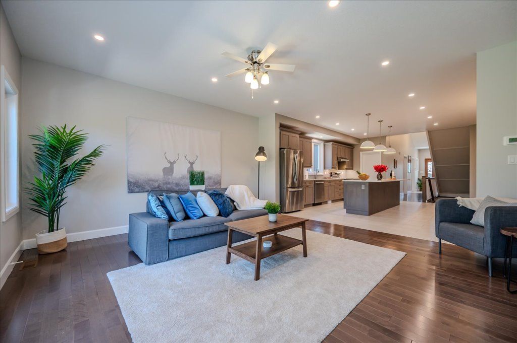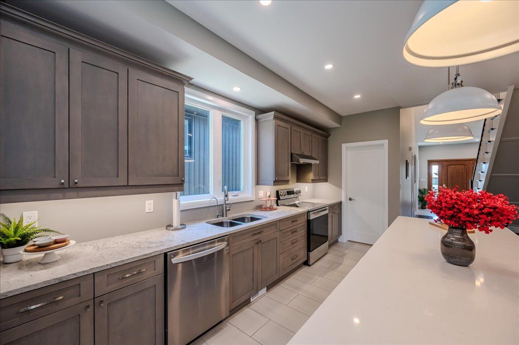 • Open-concept main floor with rich hardwood and tile finishes throughout.