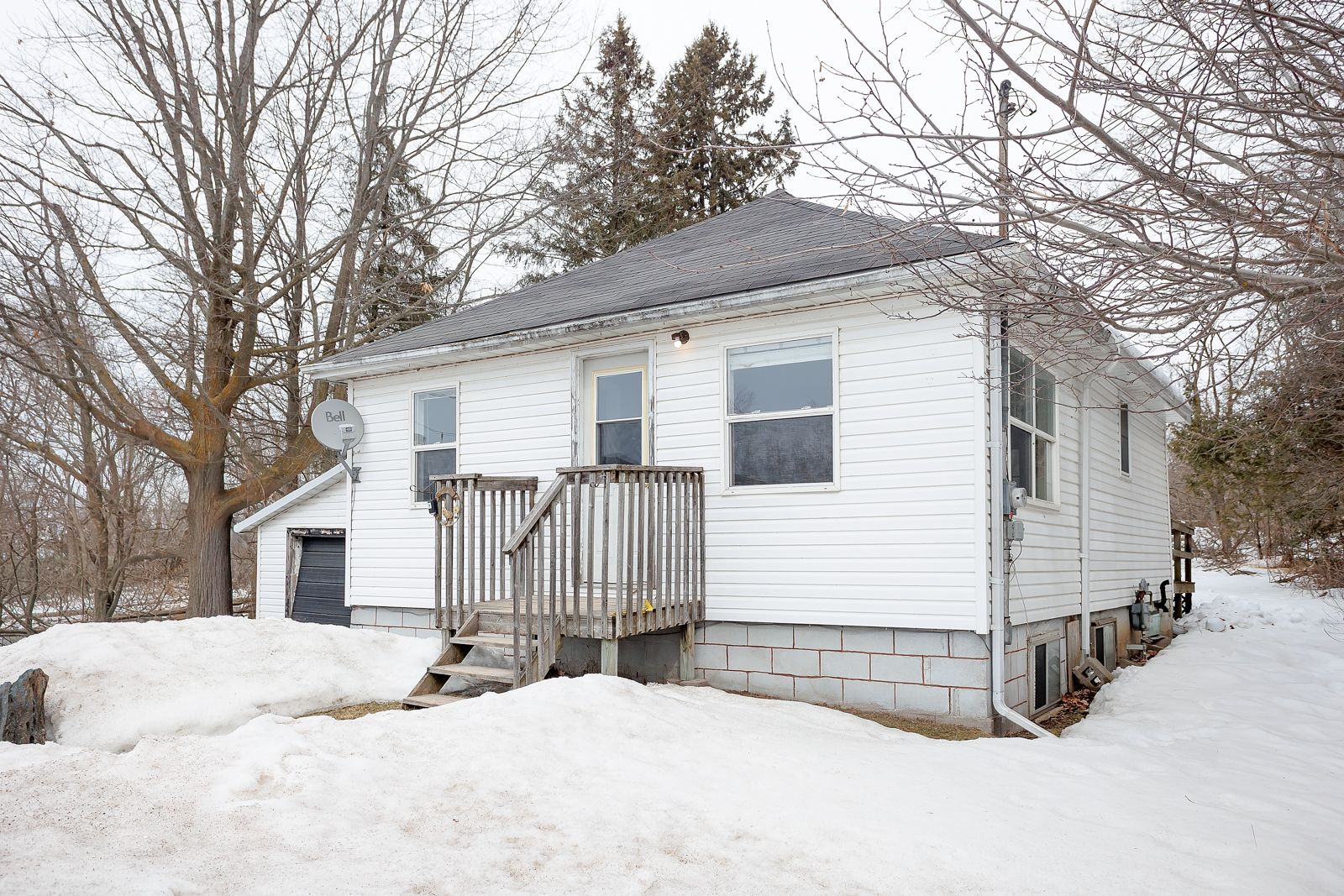 4796 regional rd 57 awaits. This cozy raised bungalow has potential, great location and a level lot. With a golf course right around the corner and a short walk to lake scugog, the summer months will not be long enough. The main floor has 2 bedrooms, a 3 piece bathroom and eat in kitchen with a family room entry. A new uv light water treatment system in place. The full unfinished basement also has access from the carport. Come out and see it for yourself.
