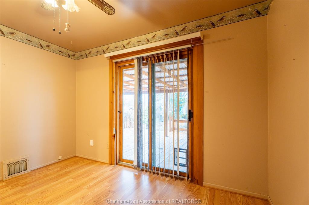 • Large primary bedroom with access to a covered deck and fenced backyard.