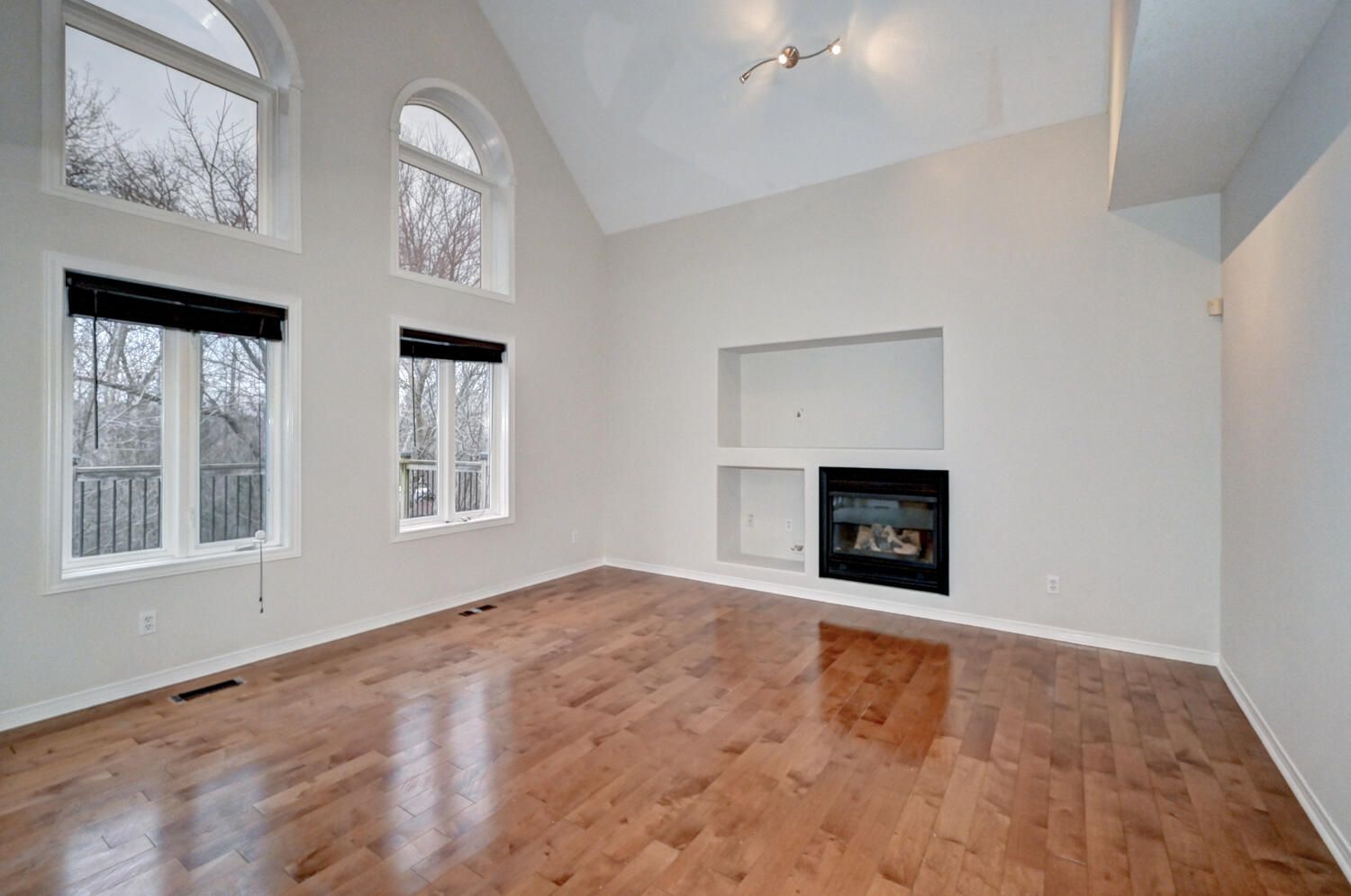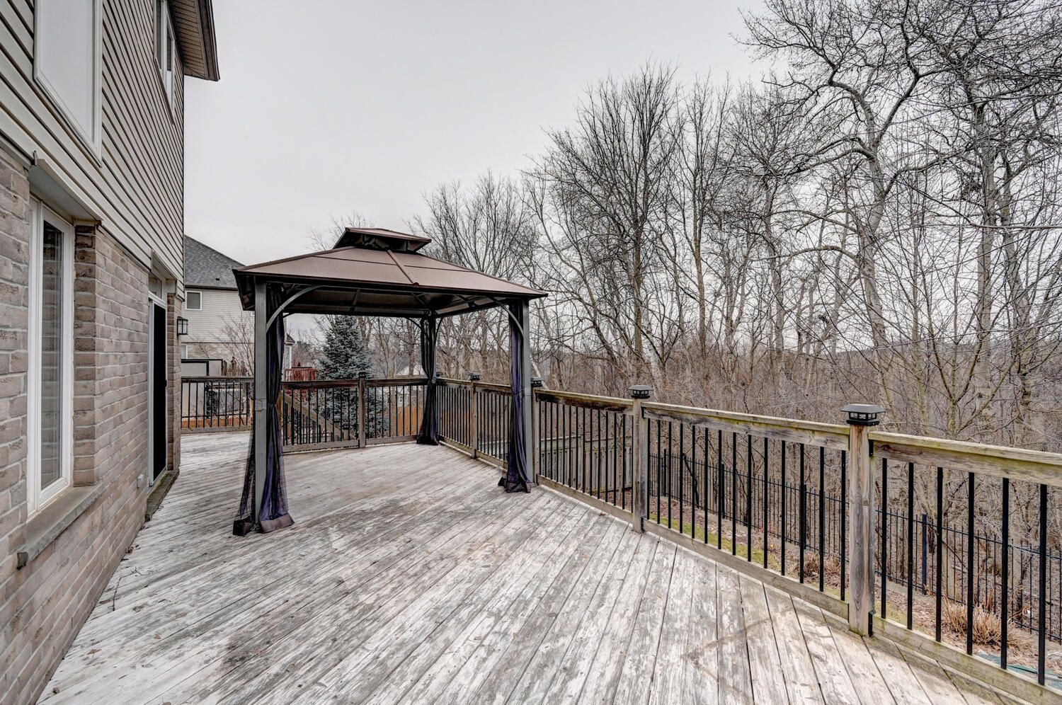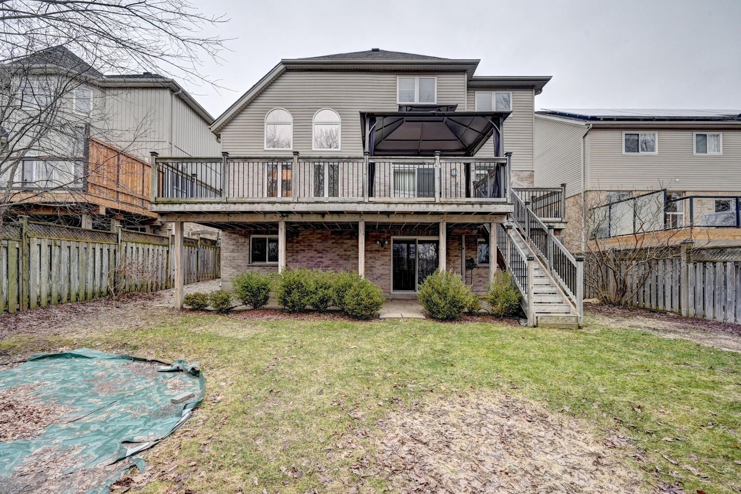 • Private backyard overlooking green space and walking trails.