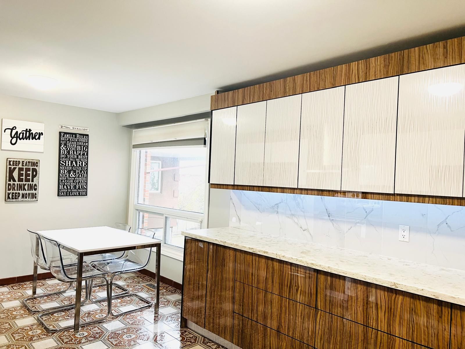 • Modern kitchen features German cabinets and quartz countertops with stainless steel appliances.