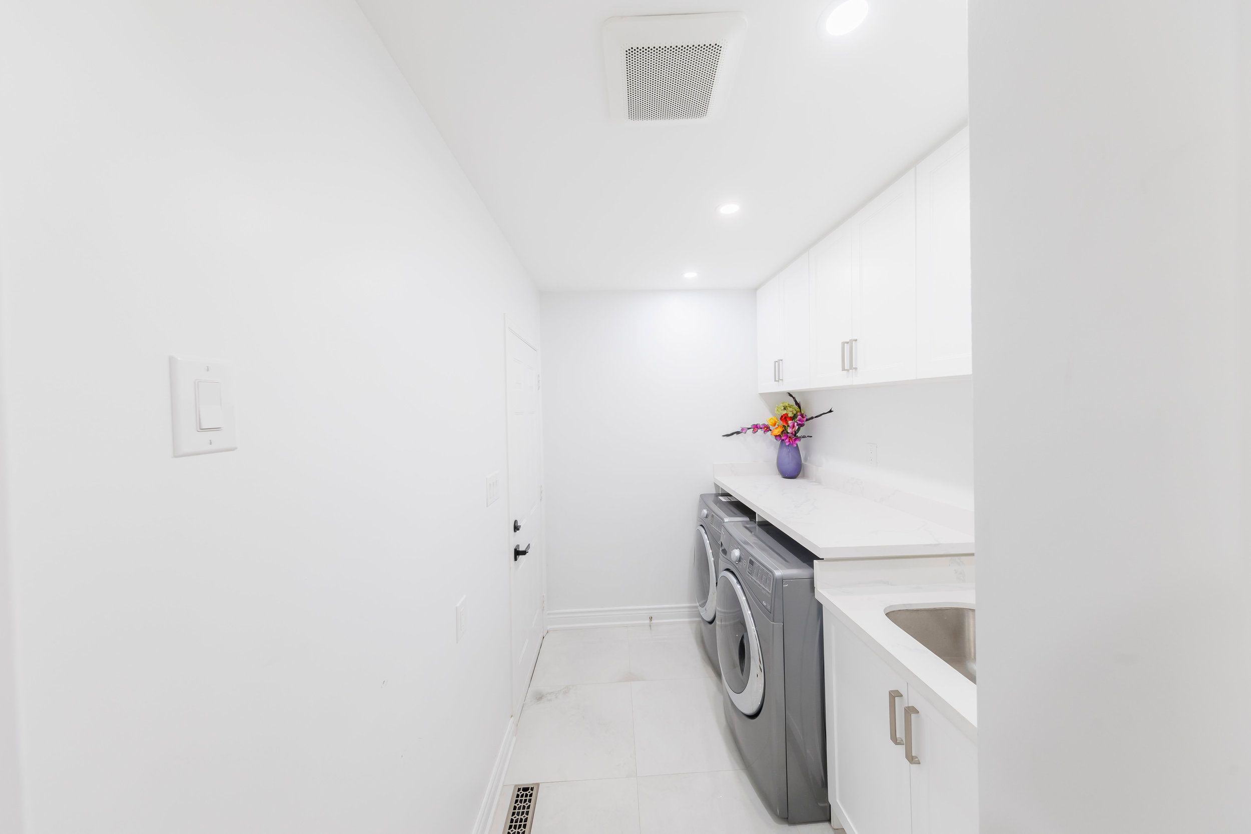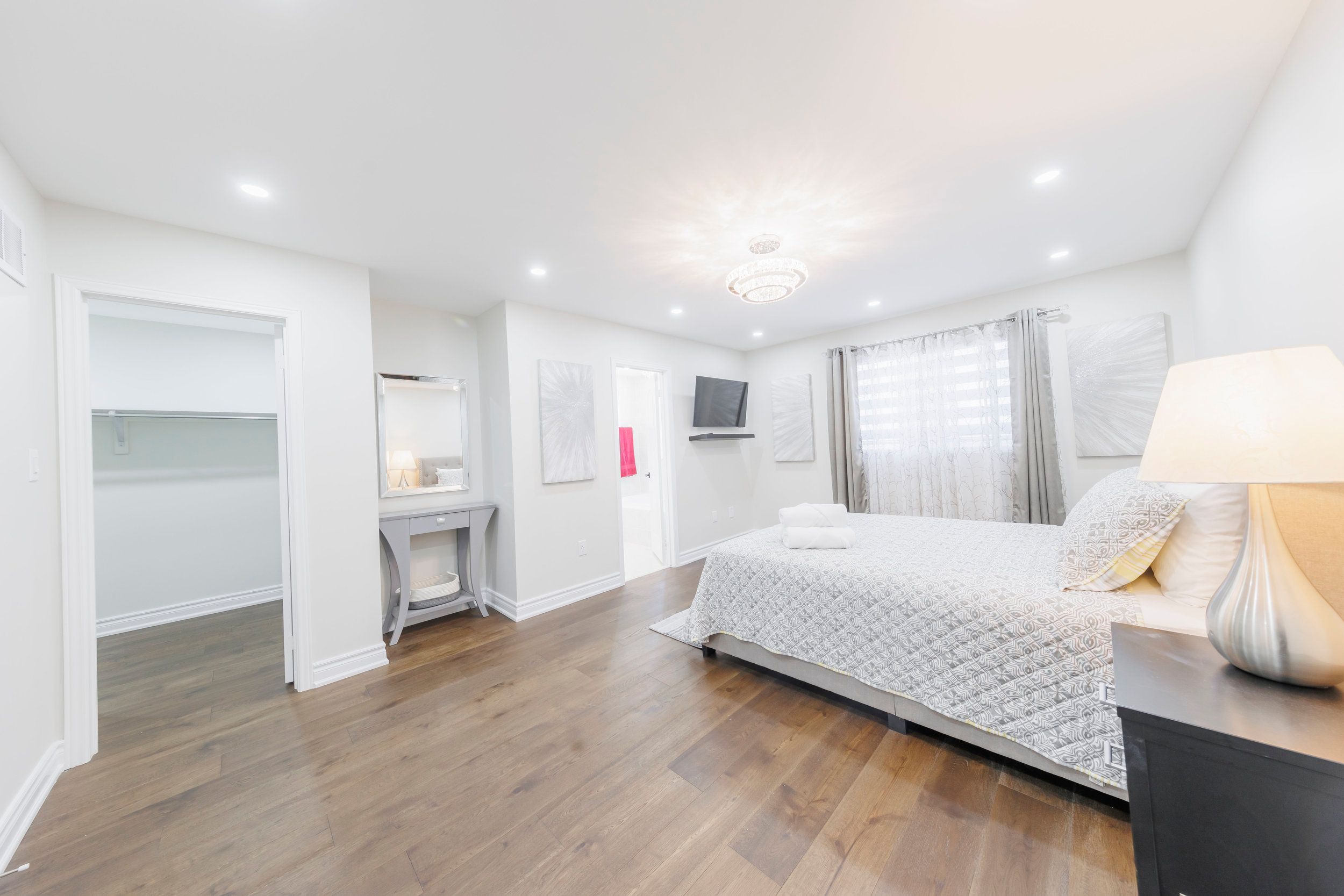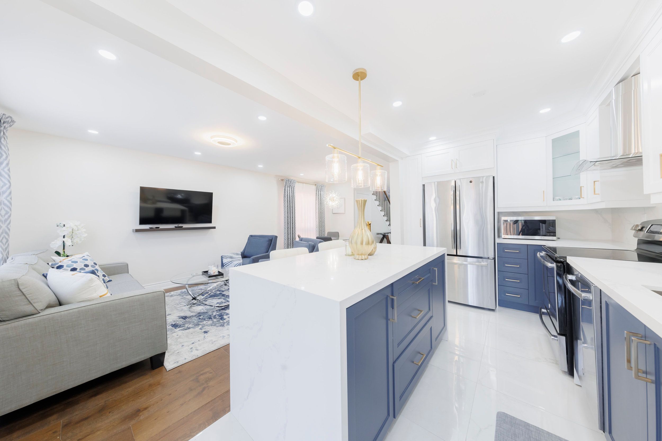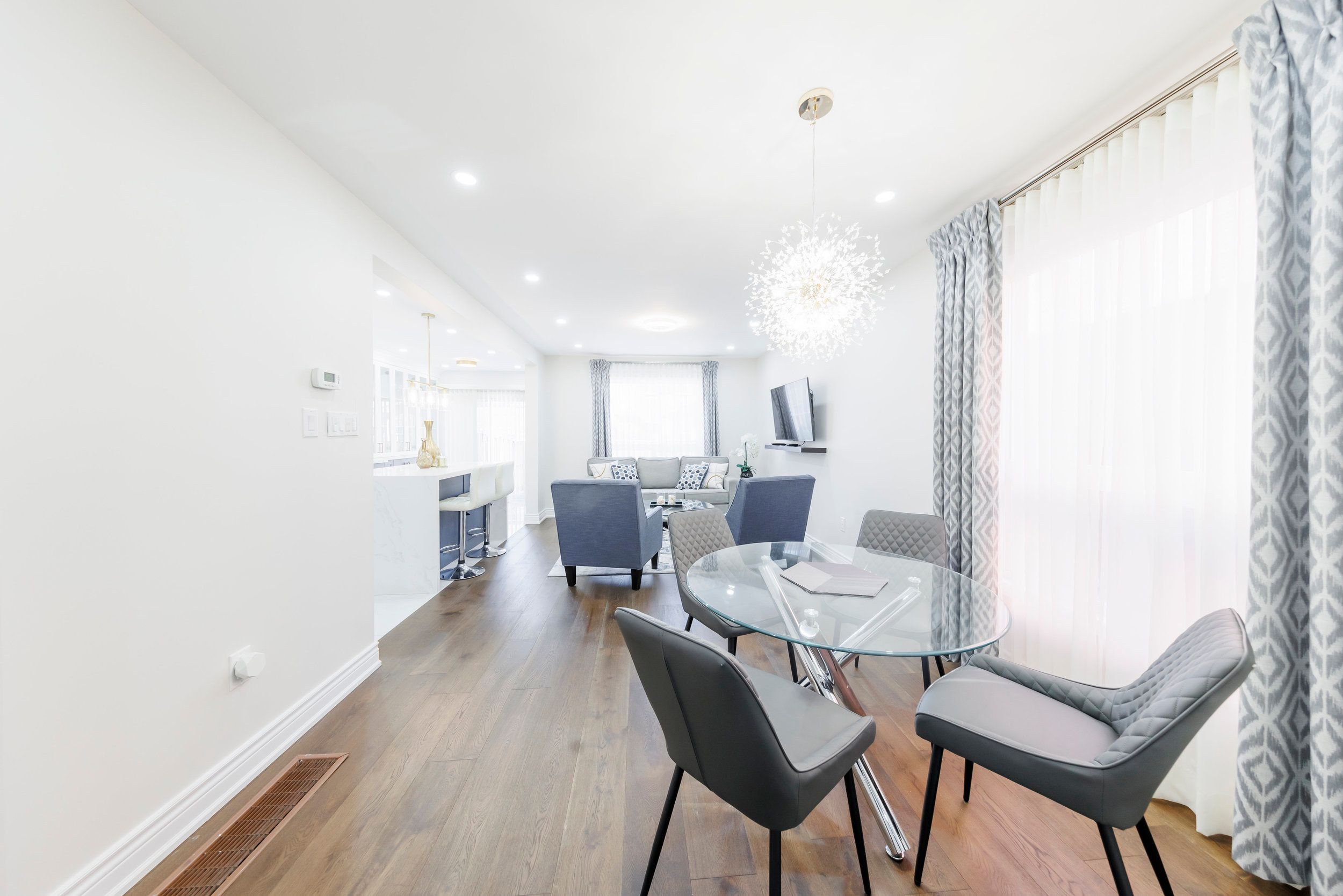 Welcome to this beautifully upgraded semi-detached home nestled in the prestigious berczy community of markham. This elegant and meticulously maintained 3-bedroom residence offers the perfect blend of modern design, bright open-concept living, comfort, and everyday convenience. Featuring hardwood flooring throughout, stylish pot lights, and a contemporary upgraded kitchen with ample cabinetry and a stunning centre island, this home is designed for both functionality and entertainment. The kitchen is equipped with stainless steel appliances, while the convenience of two separate laundry areas-on the main floor and in the basement-adds exceptional value. Additional highlights include no sidewalk, interlocked front and backyard, security cameras, and an impressive double-door entry. The roof was replaced in 2019 and furnace 2022 for peace of mind. The fully finished basement offers a one-bedroom suite with a separate entrance, providing excellent income potential or extended family living. Ideally located just minutes from top-ranked schools including pierre elliott trudeau high school and stonebridge public school, as well as go transit, viva transit, and markville mall. Don't miss this rare opportunity to own a true turn-key home in one of markham's most sought-after neighbourhoods. A must-see!