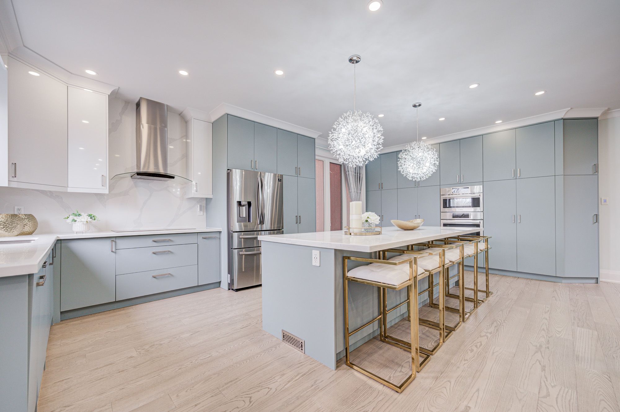 • Functional main floor with 9-foot ceilings and a stylish two-toned kitchen.