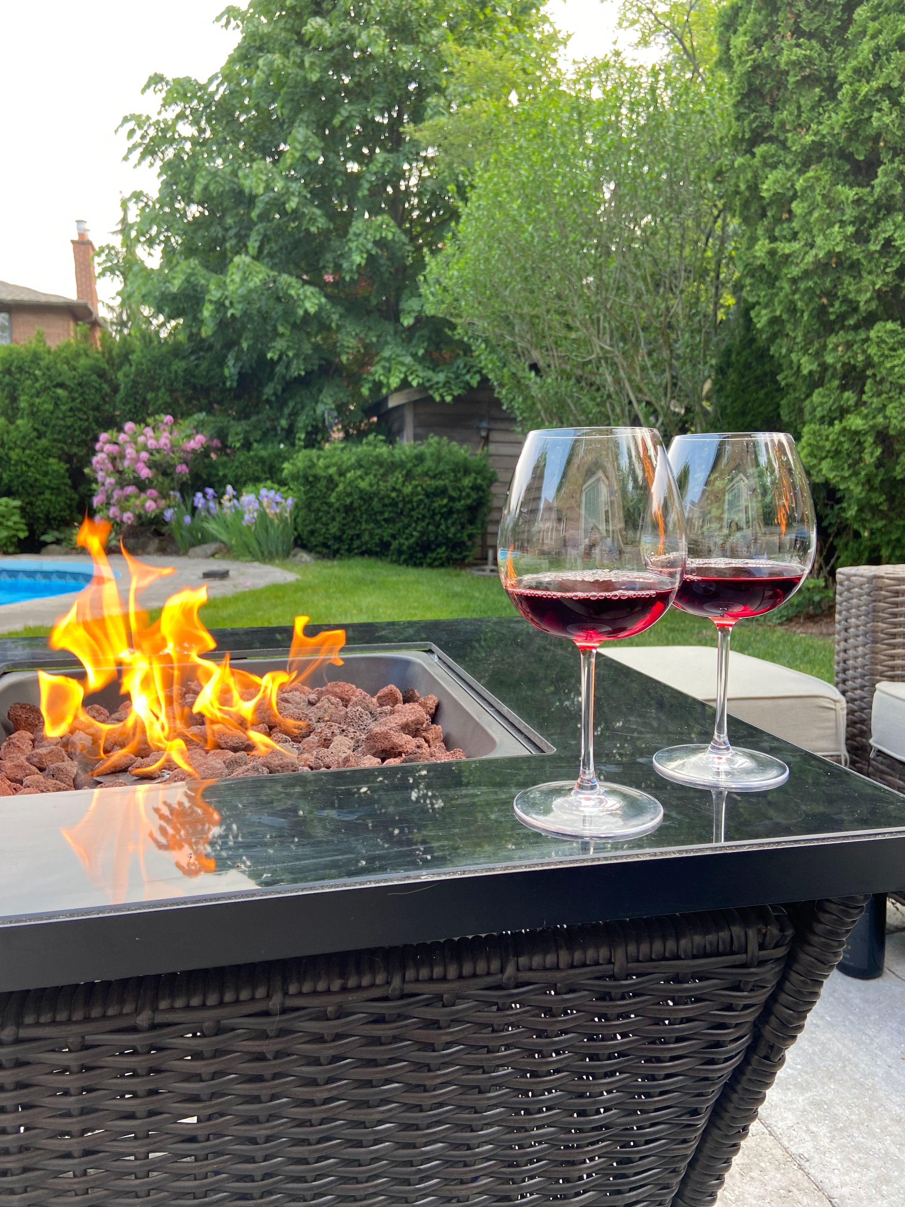 • Relaxing resort-style backyard with a custom in-ground pool and stone patio.