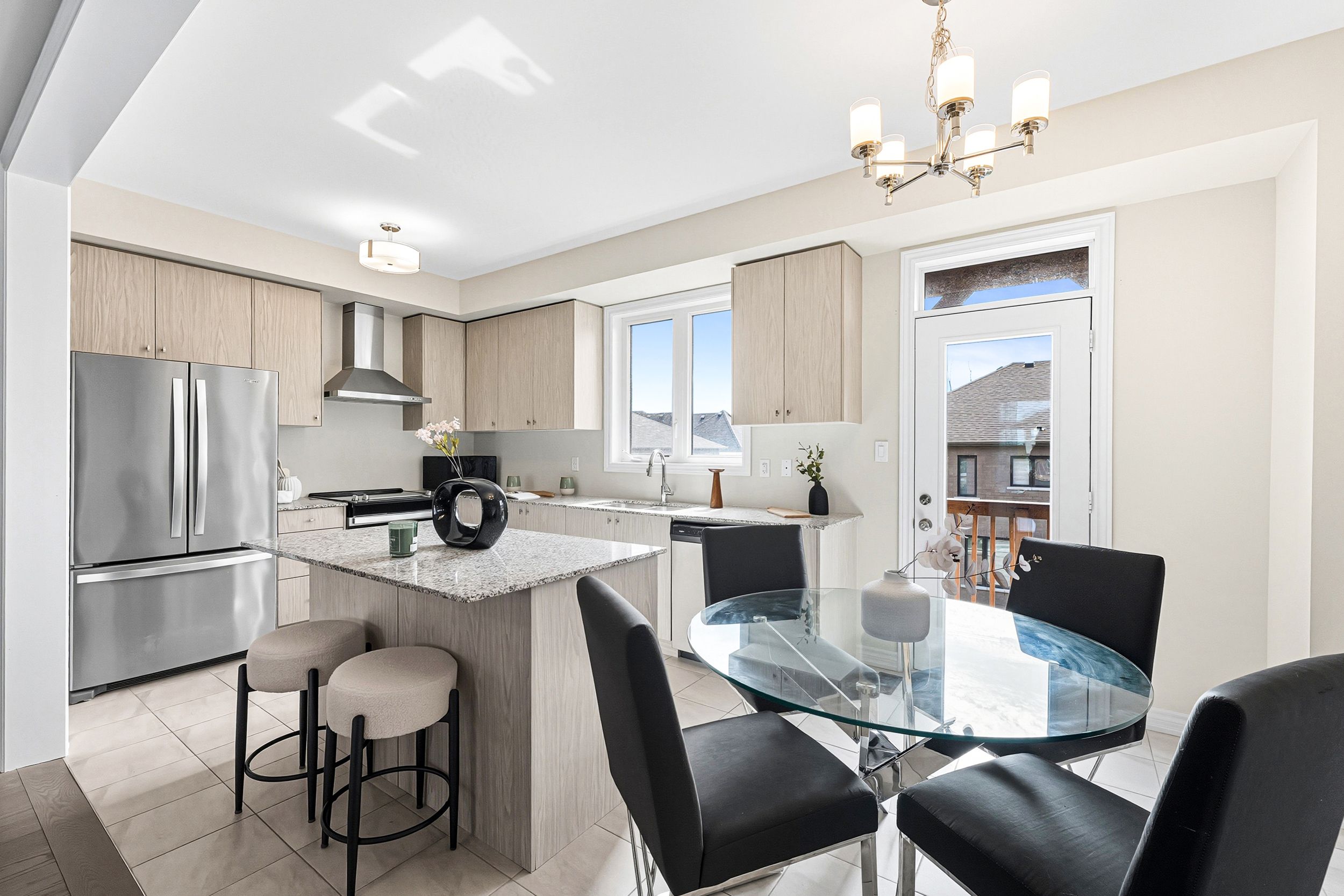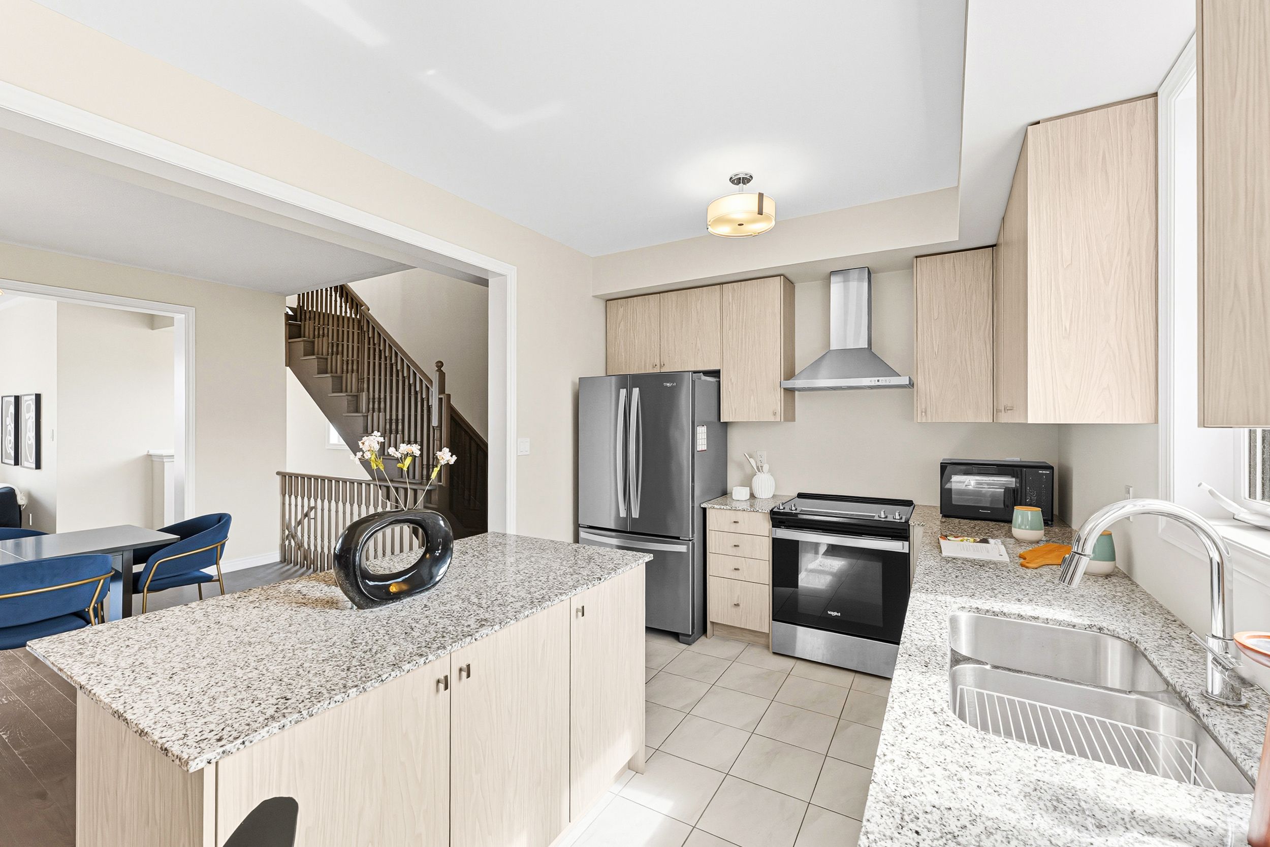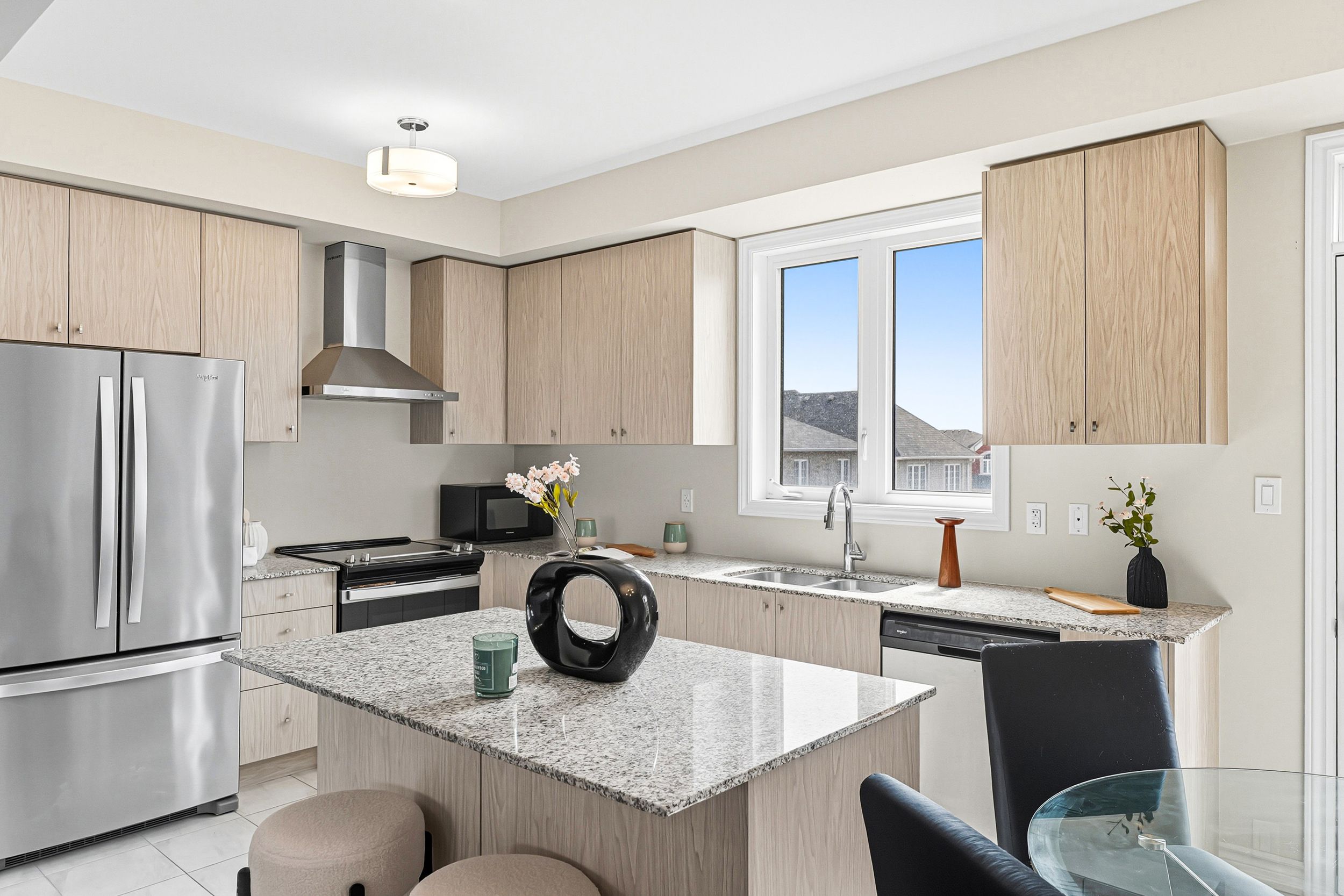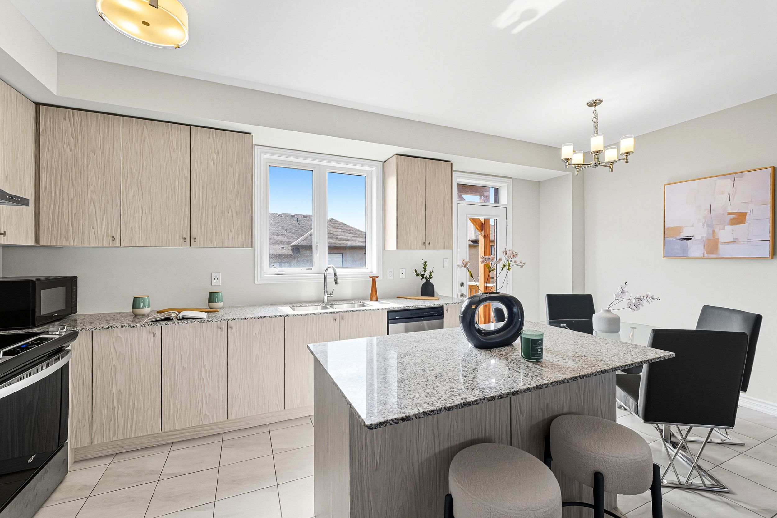 • Stylish kitchen featuring granite countertops and ample natural light.