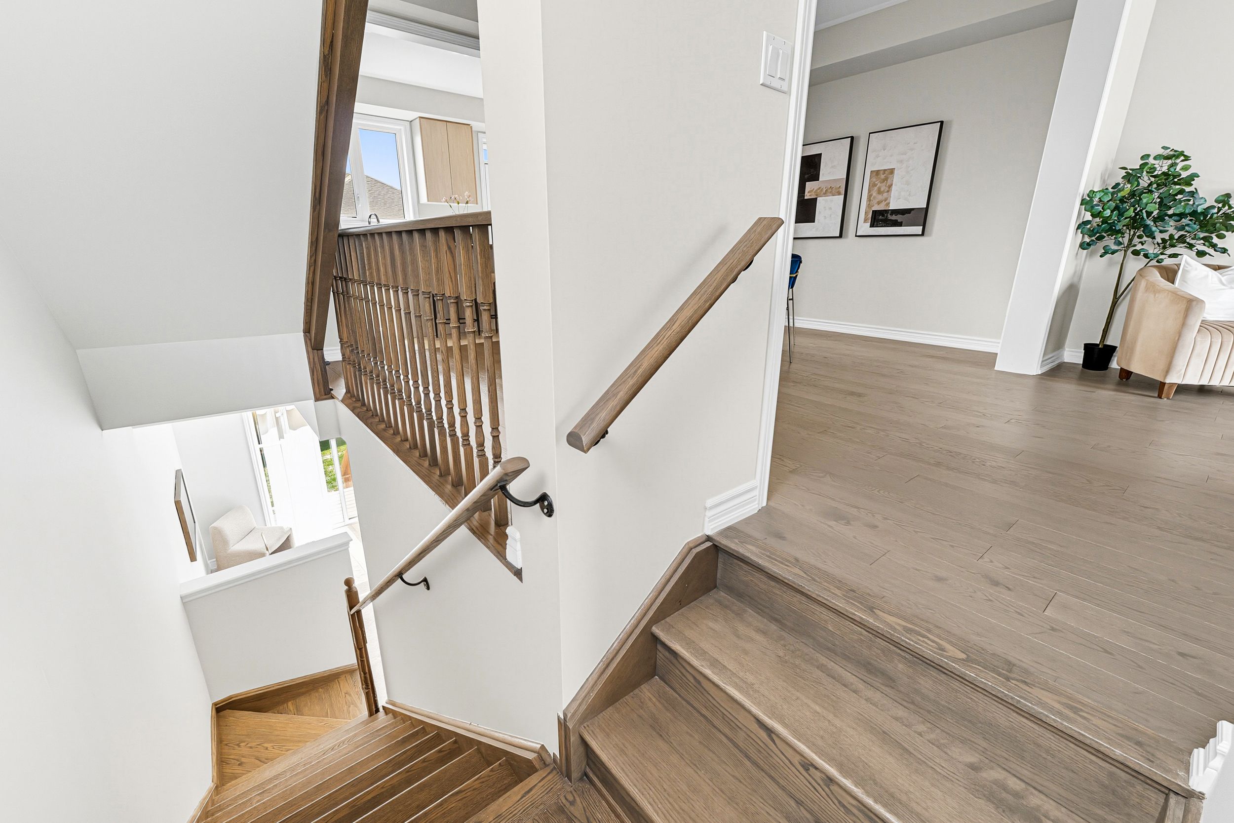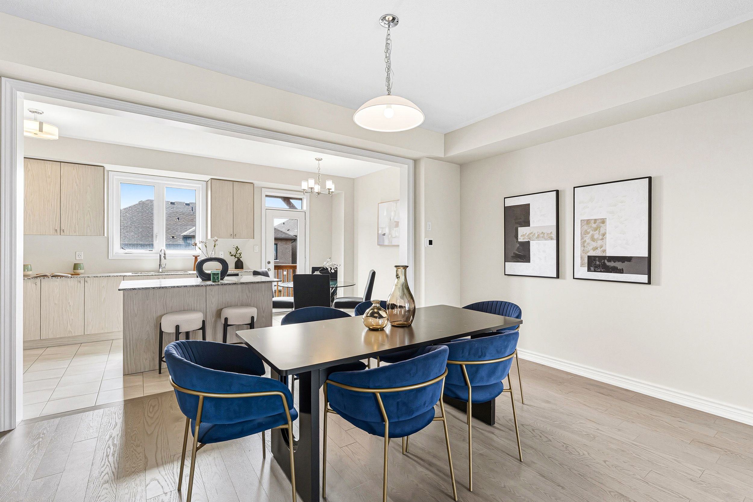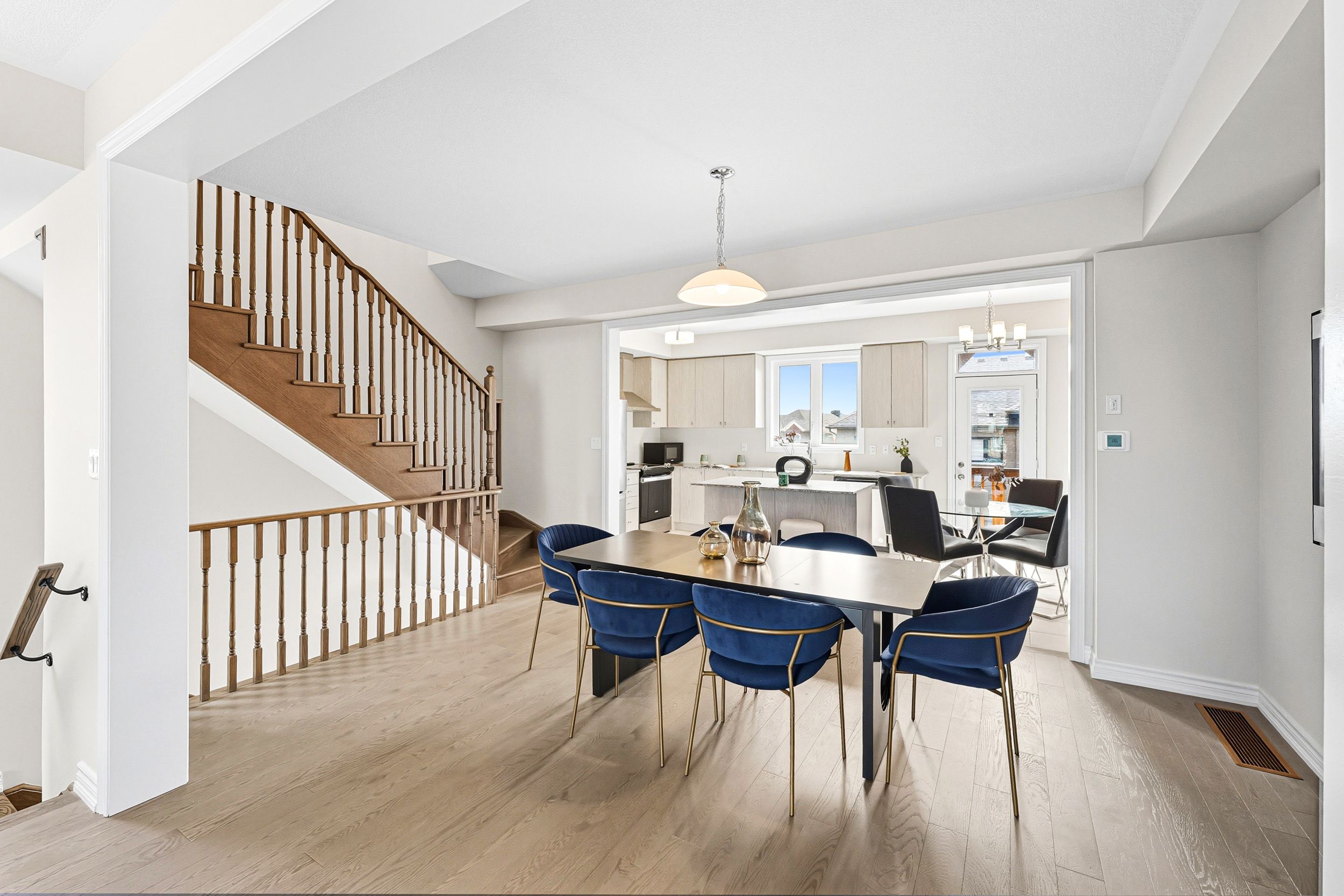 Welcome home to 48 douet ln in the heart of ajax. A modern 3-storey townhome in a prime lakeside community offering 1,980 sq. Ft. Of contemporary living space. This beautifully designed 3-bedroom, 3-bathroom home features an open-concept layout with 9' ceilings, hardwood flooring throughout the main living areas, a stylish kitchen with granite countertops, and large windows that fill the home with natural light. The thoughtful floor plan provides spacious principal rooms perfect for family living and entertaining, while the upper level boasts generous bedrooms including a primary suite with a private ensuite. Ideally located just minutes from the ajax waterfront, top-rated schools, golf courses, ajax go station, and ajax hospital, this home blends suburban tranquility with unbeatable convenience.