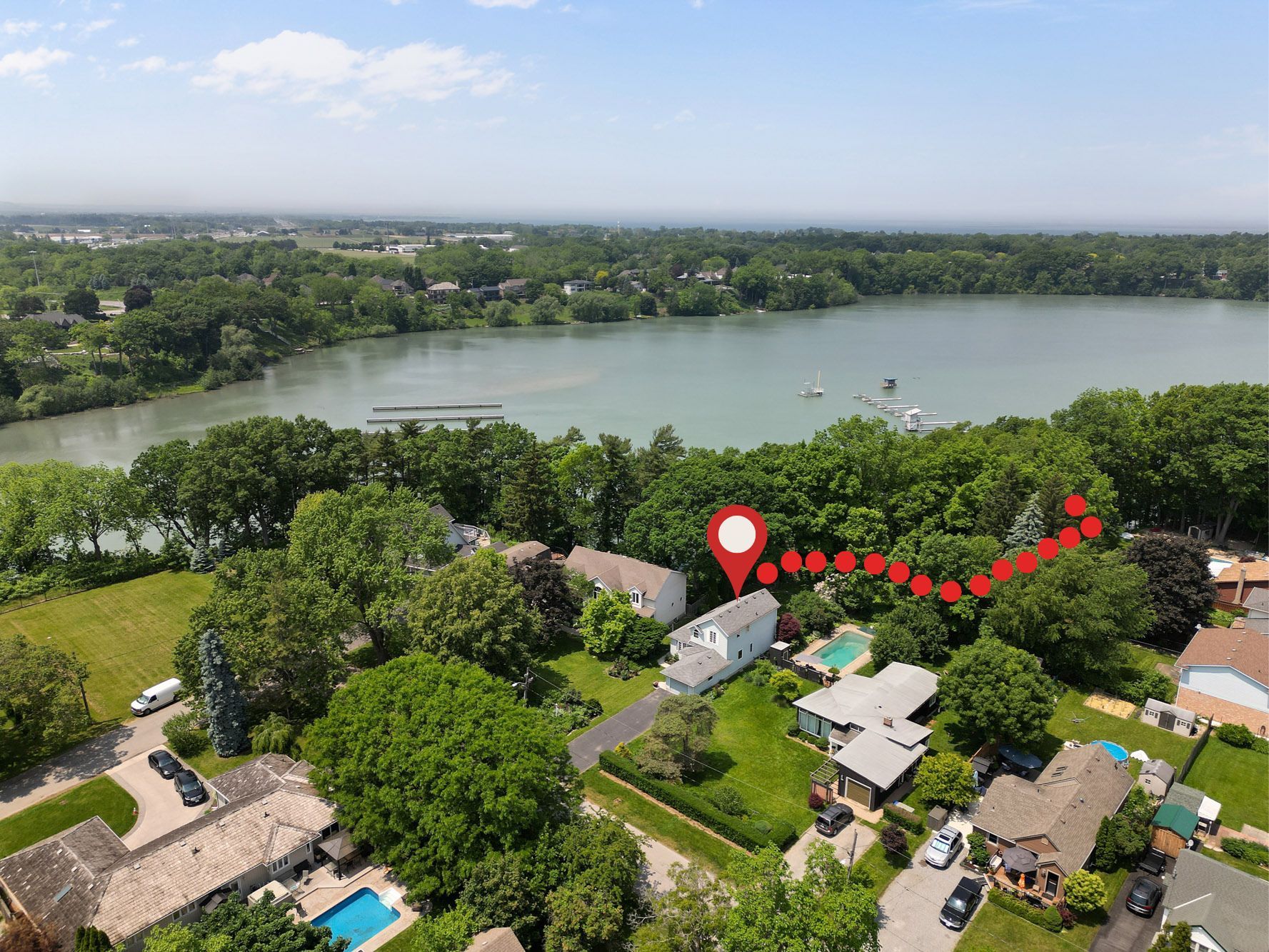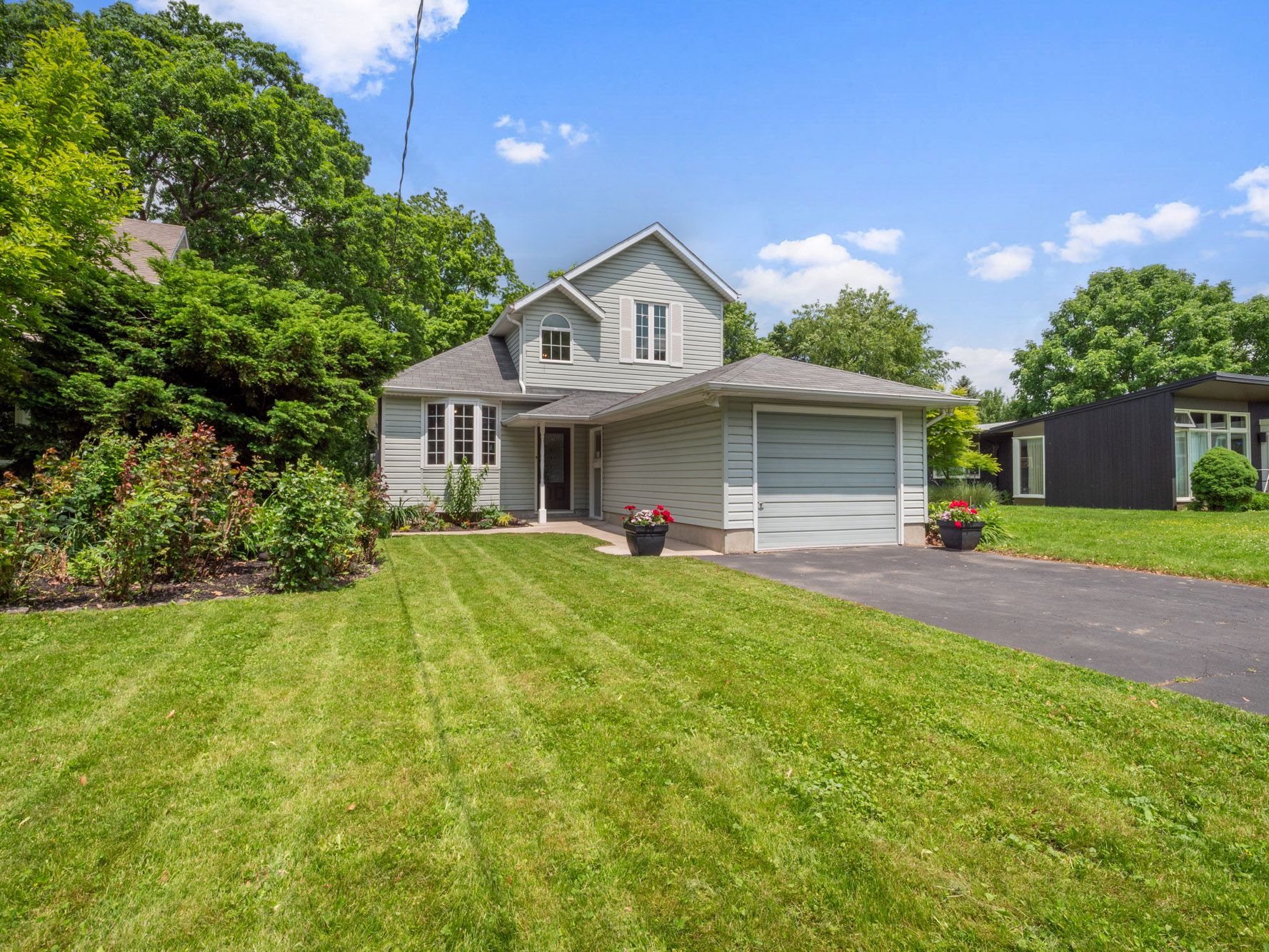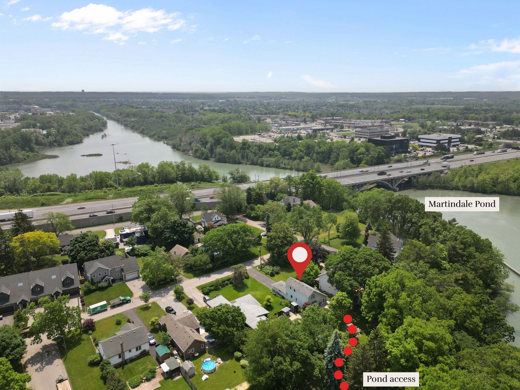 Cottage like living - in the city! No need for roof racks - grab your paddle board and head out on the pond, or stroll down to the water's edge for a close-up view of the regatta on the royal canadian henley rowing course. View breathtaking sunsets illuminating the tranquil martindale pond while reclining on your exceptionally private two-tier deck. Through the kitchen window, bird watchers may glimpse eagles, orioles, swans, and owls attracted to the backdrop of mature trees and water. This lovely home combines easy access to amenities with the privacy of living in nature. The second storey of the home provides a full-floor primary suite. Through the spacious bedroom's large windows, water views, including sunsets, may be admired from the comfort of bed. There is a surprising amount of closet space and a bonus room that could serve as a yoga room or for multiple purposes. This level also boasts a bright corner office area at the top of the stairs. On the main level, two bedrooms coupled with another full bathroom allow for flexibility for family or guests. The main open-concept living area provides exactly what it should for this unique property: front-row views of the backyard and water. The neutral palette, vaulted ceiling, and skylights combine to enhance the bright interior space. The living room area includes hardwood flooring, a corner gas fireplace, and a large bay window. The kitchen has stone countertops, ample cabinetry, and garden doors leading outside. Additionally, community access with steps to the pond is available just a short walk away along the lush park area adjacent to the backyard. This unique waterfront home is situated in a beautiful setting that is increasingly difficult to find. Be sure to flip through all of the photos, and check out the youtube video too. :)