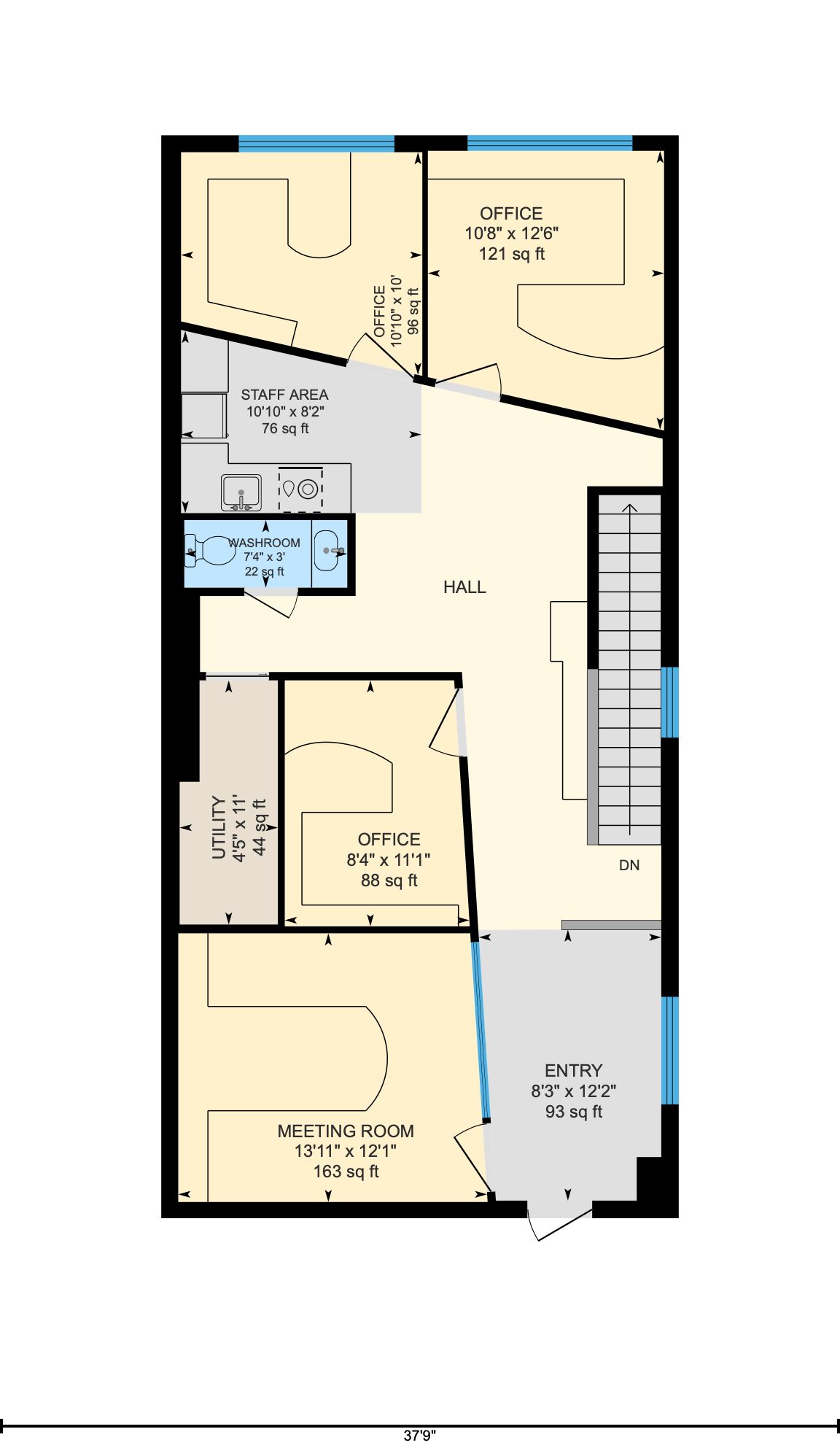 • Includes dedicated offices, spacious boardroom, kitchen, and private bathroom.