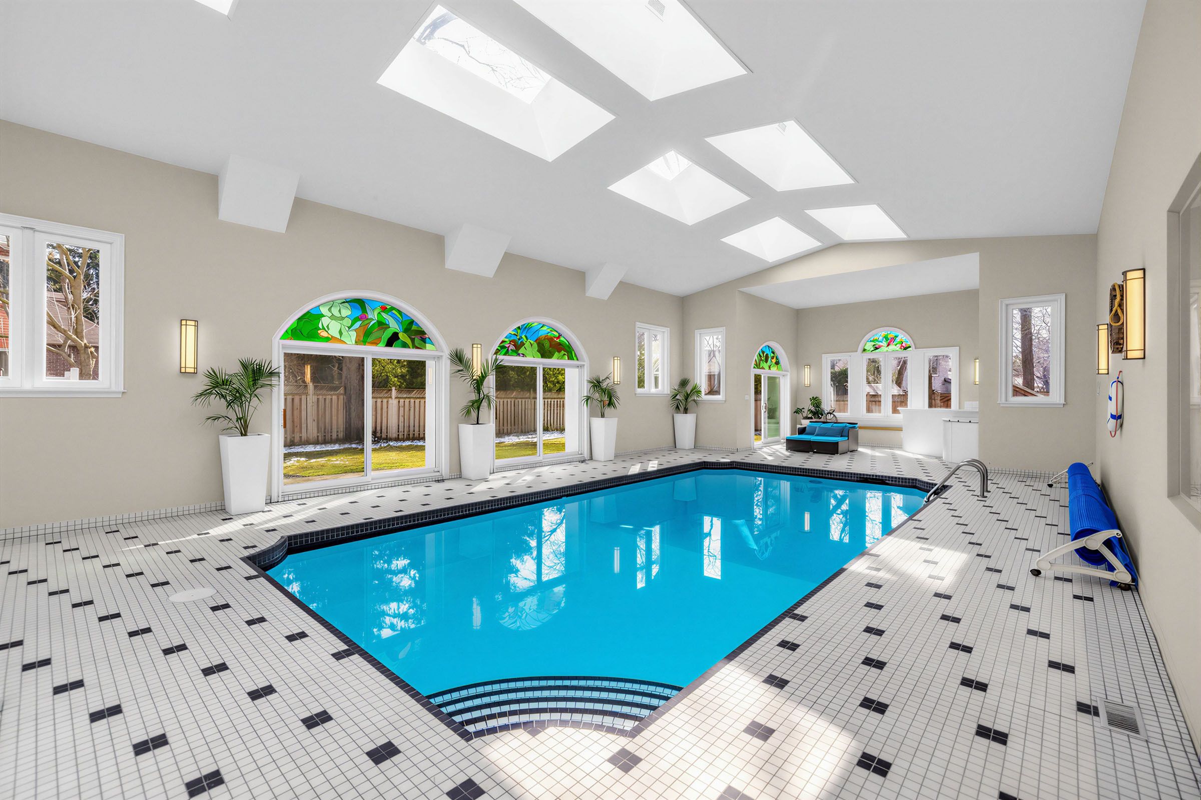 • Indoor swimming pool with lounge area perfect for relaxation and entertaining.