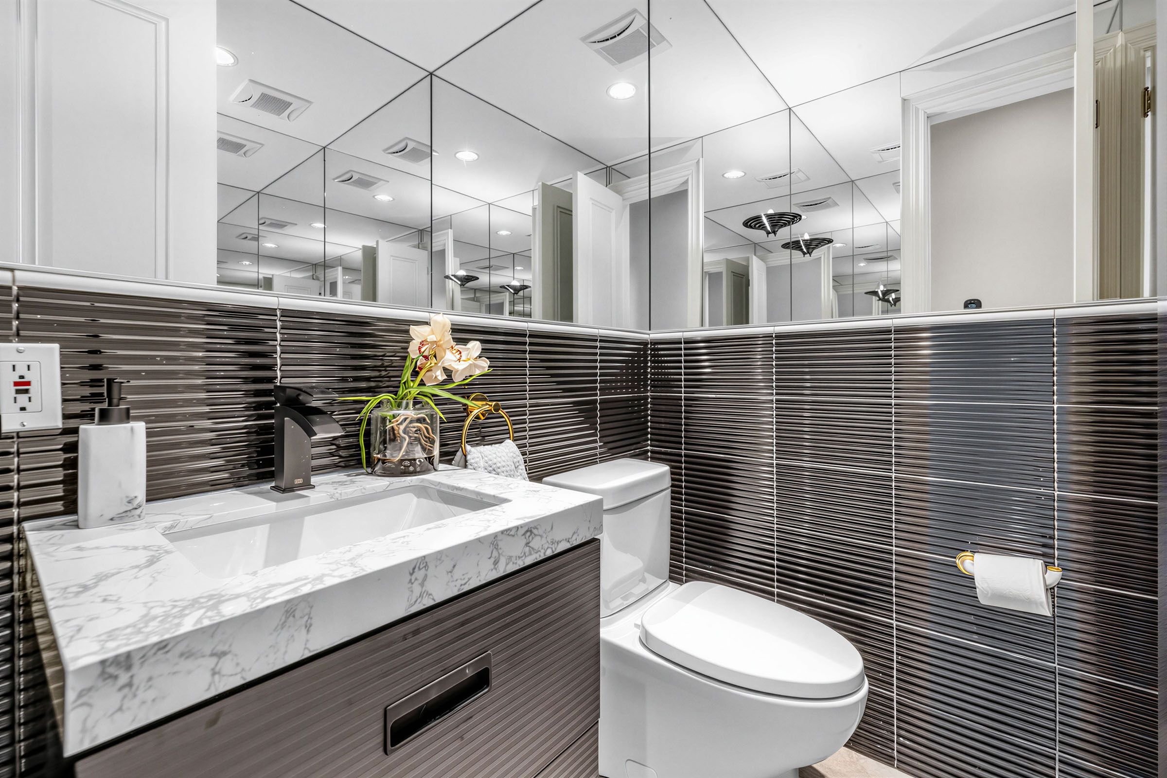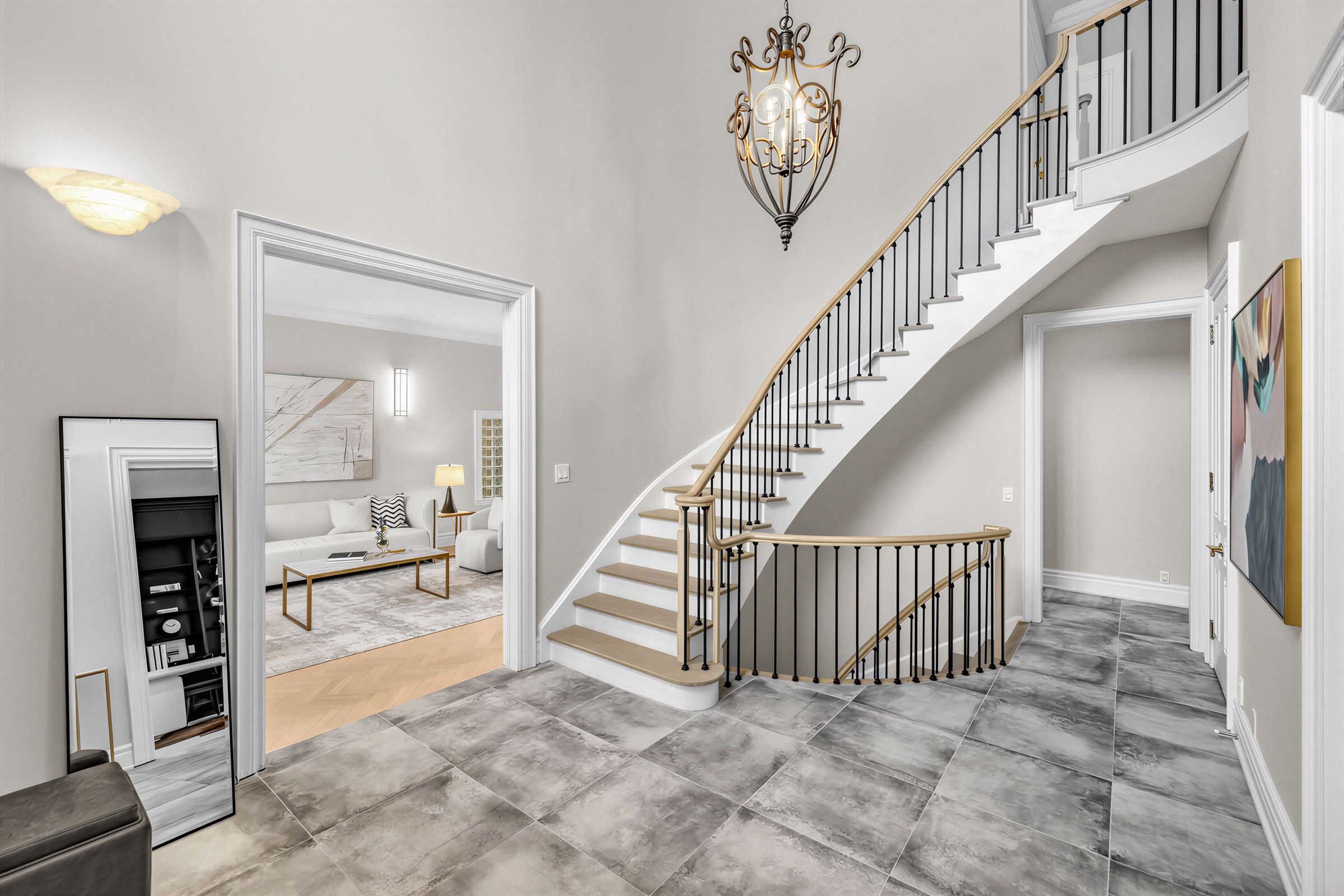• Finished basement with gym, theater room, and recreation space.