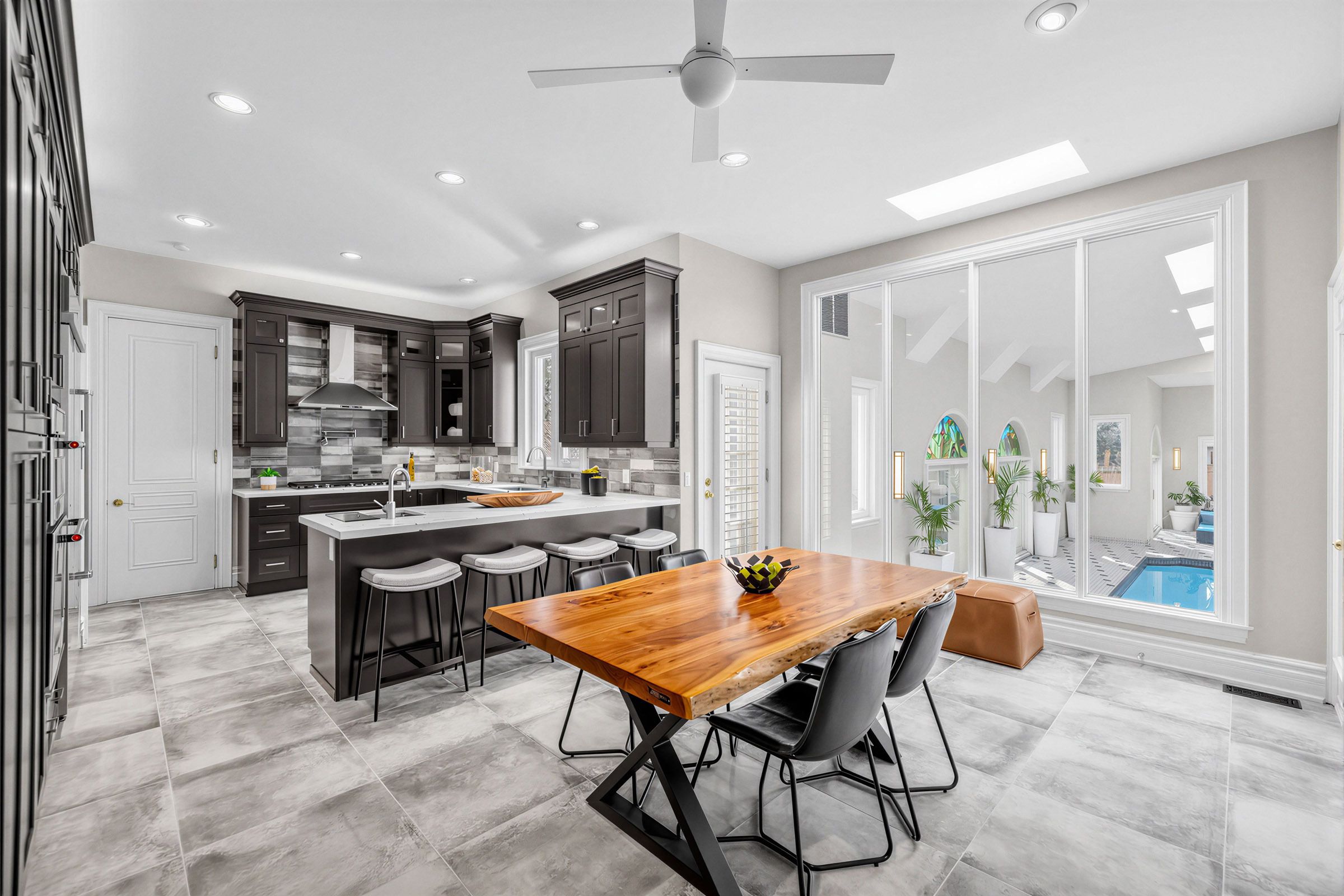 **welcome to this exceptional, and b-e-a-u-t-i-f-u-l and fully upgrade and update(spent $$$$) residence set on a rare/premium land 70 ft x 214 ft -- unique land, offering over 6000 sq. Ft of luxurious living space with a ***stunning/unique and luxurious --- indoor swimming pool(entertainer's paradise)***this custom-built residence was designed with timeless elegance and functionality in mind. Soaring ceilings draw your eye upward in the foyer, while the circular stairwell shows in timeless elegance. The main floor office provides a refined retreat and sophistication. The expansive living and dining spaces ideal for both your family's lifestyle living and upscale entertaining. The up-to-date, dream kitchen is a culinary dream, featuring custom cabinetry, high-end appliance, and an open concept layout with a breakfast areas. The cozy family room provides perfect space for your relaxation and comfort, and flowing effortlessly onto an entertaining indoor swimming pool areas(luxurious private retreats). The upper level offers a serene primary suite with a spa-inspired new ensuite(2025), and a private balcony overlooking deep-greenery backyard. The additional bedrooms feature a private ensuite and semi-private ensuite, ensuring ultimate privacy and comfort. The fully finished basement extends your family's social life, a gym and theatre room, stunning recreation room. Offering 4-season uses unique/spectacular **indoor swimming pool** with a lounge area for calm and serenity and relaxation, and vaulted ceilings, multiple skylights(new-2025) ----3cars garage, 2stariwells,new kitchen(2025),new s-s appliance(2025),new hardwood floor(2025),new foyer floor(2025),new kitchen floor(2025),new washrooms(2025),new pool equipment(2024) & more!!!
