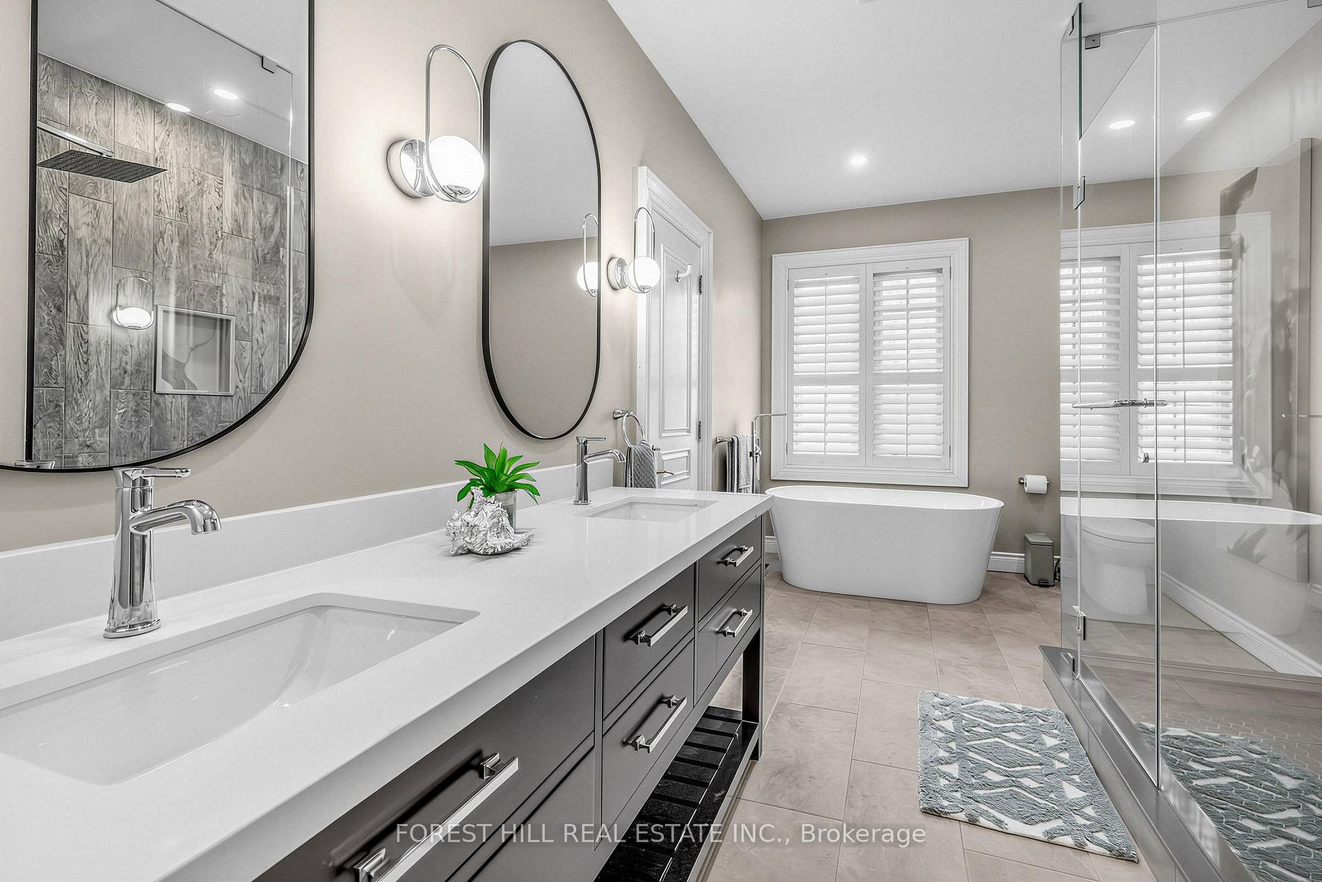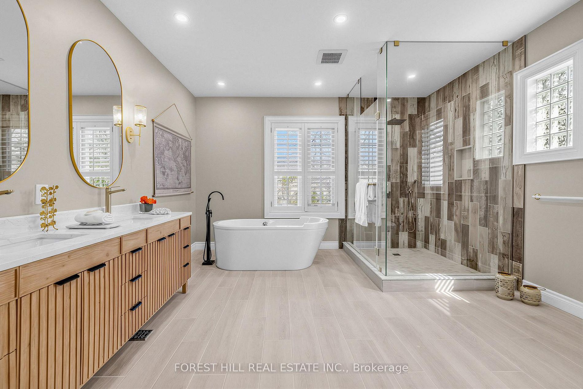 **welcome to this exceptional, and b-e-a-u-t-i-f-u-l and fully upgrade and update(spent $$$$) residence set on a rare/premium land 70 ft x 214 ft -- unique/premium land, offering 4134 sf. Ft(main and 2nd floors) and over 6000 sq. Ft of luxurious living space including a basement with a ***stunning/unique and luxurious --- indoor swimming pool with lounge area, and cathedral ceilings + multi skylights(entertainer's paradise)***this custom-built residence was designed with timeless elegance and functionality in mind. Soaring ceilings draw your eye upward in the foyer, while the circular stairwell shows in timeless elegance. The main floor office provides a refined retreat and sophistication. The expansive living and dining spaces ideal for both your family's lifestyle living and upscale entertaining. The up-to-date, dream kitchen is a culinary dream, featuring custom cabinetry, high-end appliance, and an open concept layout with a breakfast areas. The cozy family room provides perfect space for your relaxation and comfort, and flowing effortlessly onto an entertaining indoor swimming pool areas(luxurious private retreats). The upper level offers a serene primary suite with a spa-inspired new ensuite(2025), and a private balcony overlooking deep-greenery backyard. The additional bedrooms feature a private ensuite and semi-private ensuite, ensuring ultimate privacy and comfort. The fully finished basement extends your family's social life, a gym and theatre room, stunning recreation room. Offering 4-season uses unique/spectacular **indoor swimming pool** with a lounge area for calm and serenity and relaxation, and vaulted ceilings, multiple skylights(new-2025) ----3cars garage, 2stariwells,new kitchen(2025),new s-s appliance(2025),new hardwood floor(2025),new foyer floor(2025),new kitchen floor(2025),new washrooms(2025),new indoor--pool equipment(2024) & more!!!