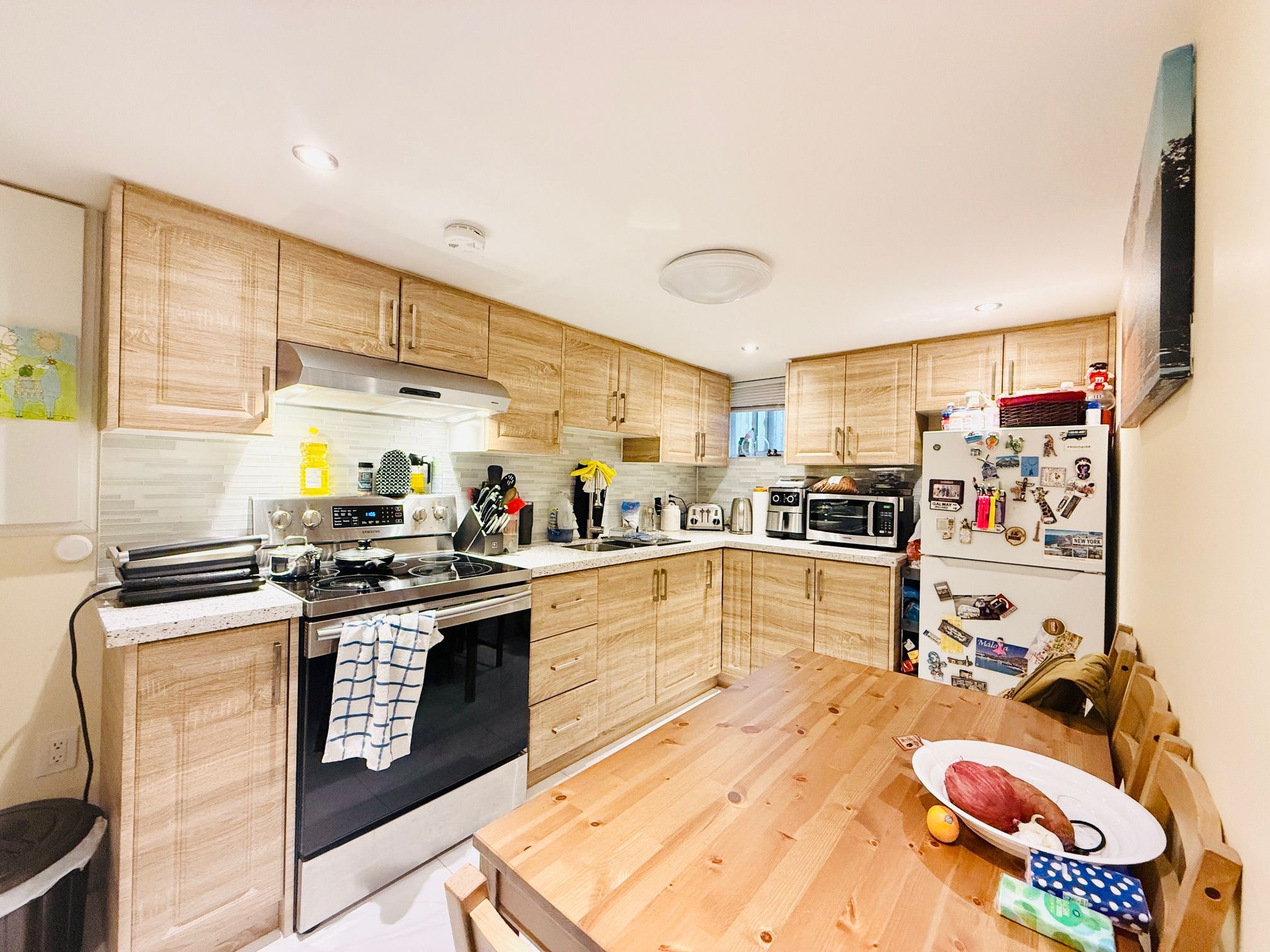 Fantastic location - walking distance to woodbine subway station & danforth ave! Renovated basement suite with a wide floorplan. Located on a quiet treelined street and family friendly neighborhood. Rare full family size eat-in kitchen with an abundance of kitchen cabinets and countertop space. Spacious bedroom with closet. Laminate floors throughout. Bathroom with shower tub. Shared laundry. Central air conditioner. Gas & water included in rent. Tenant only pays 35% of hydro.