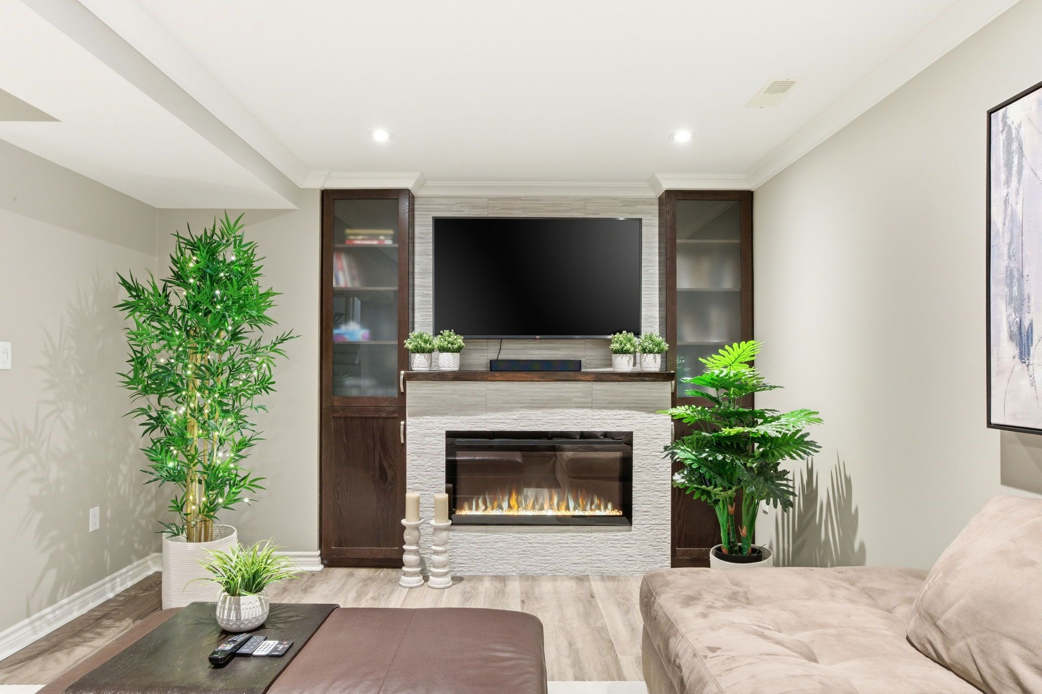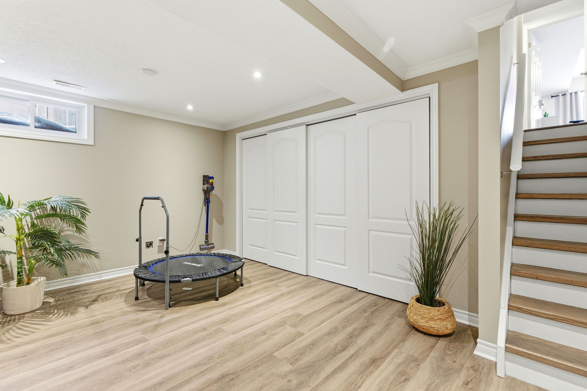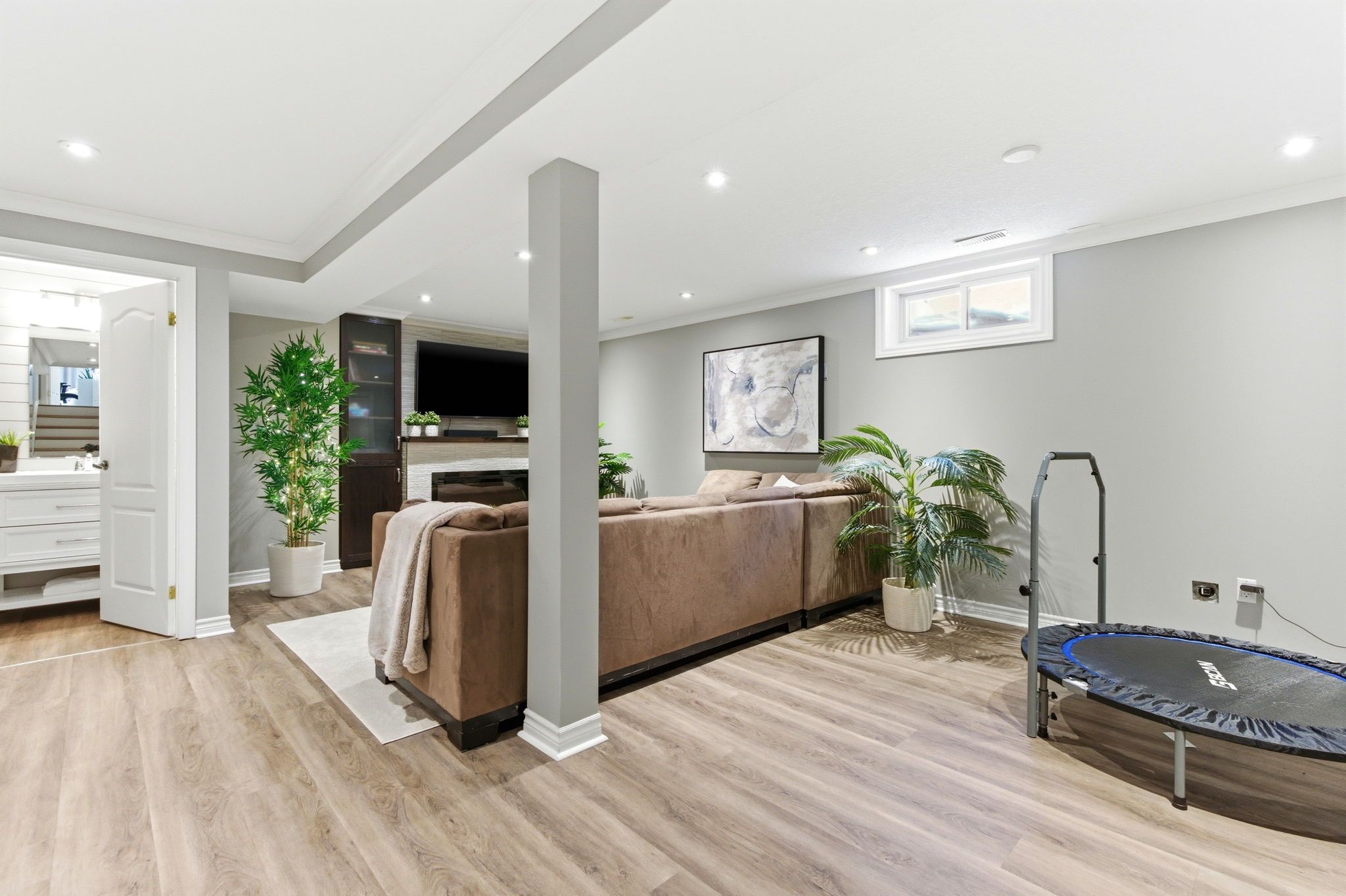 • Finished basement with cozy electric fireplace and updated bathroom.