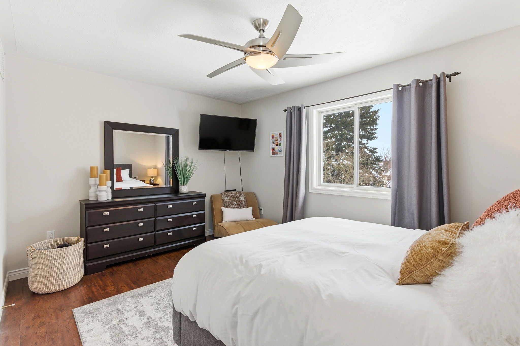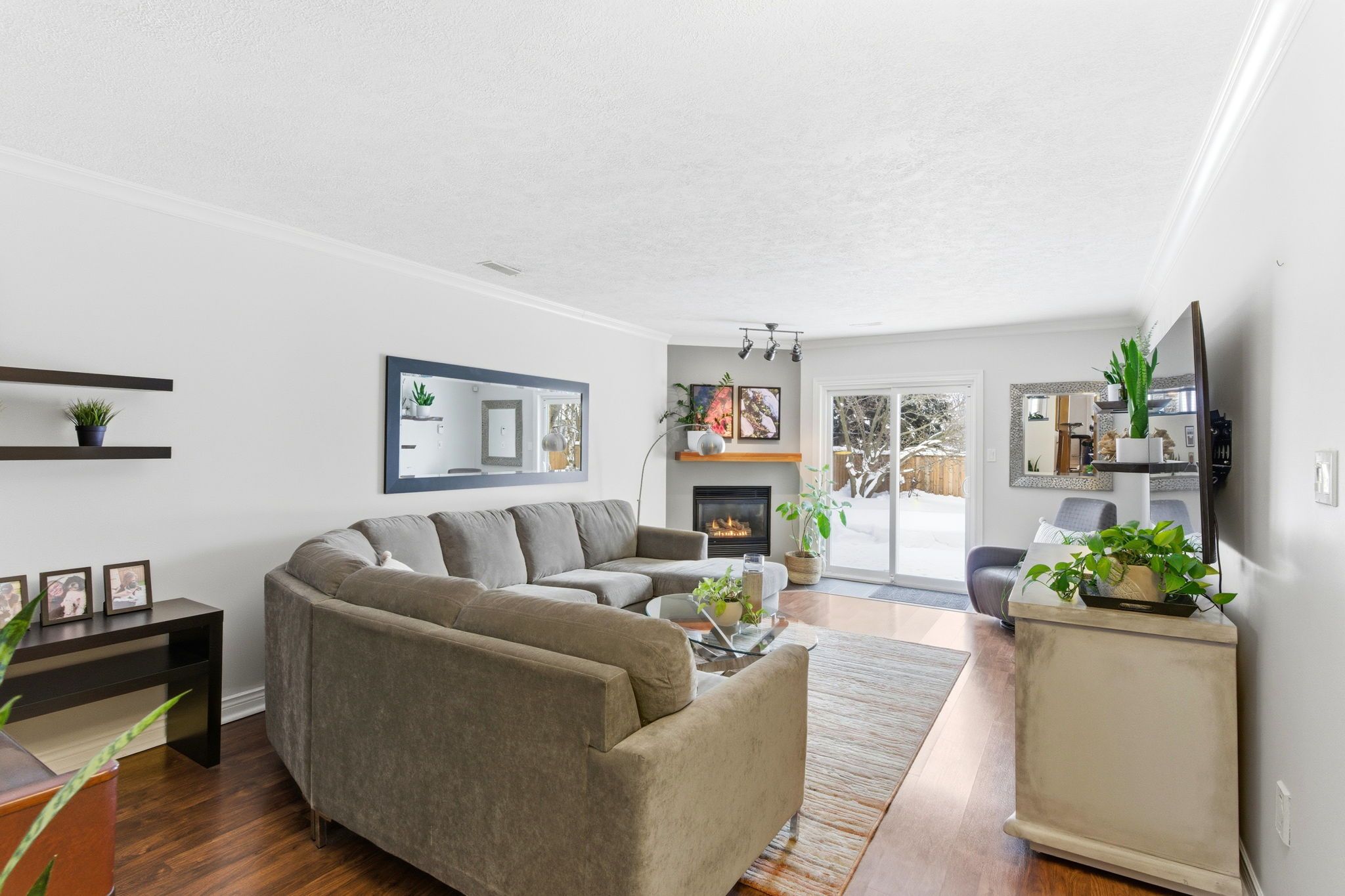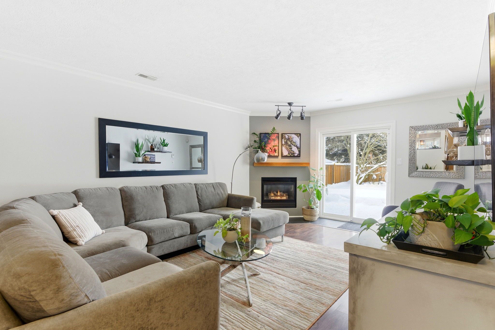 • Finished basement with cozy electric fireplace and updated bathroom.