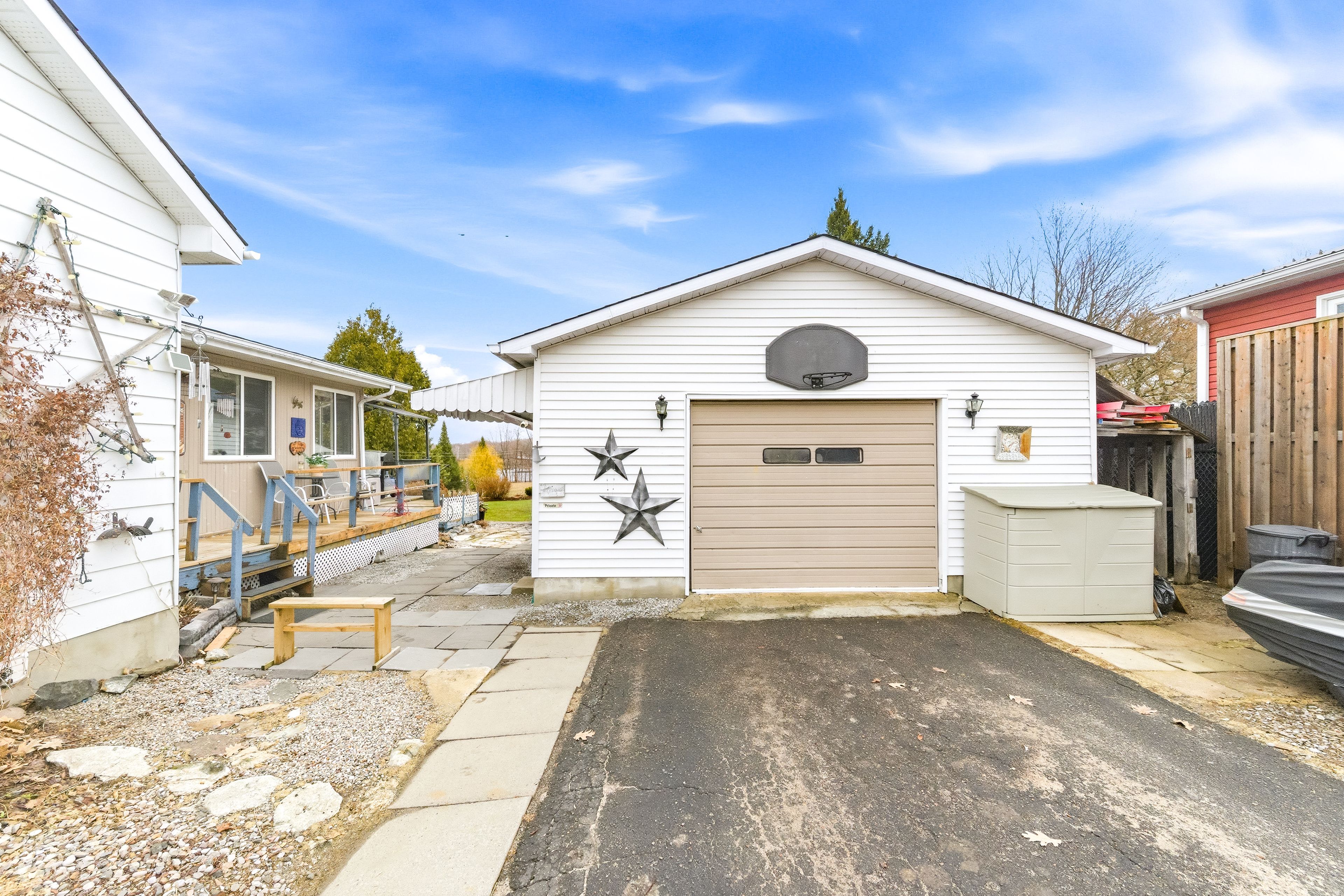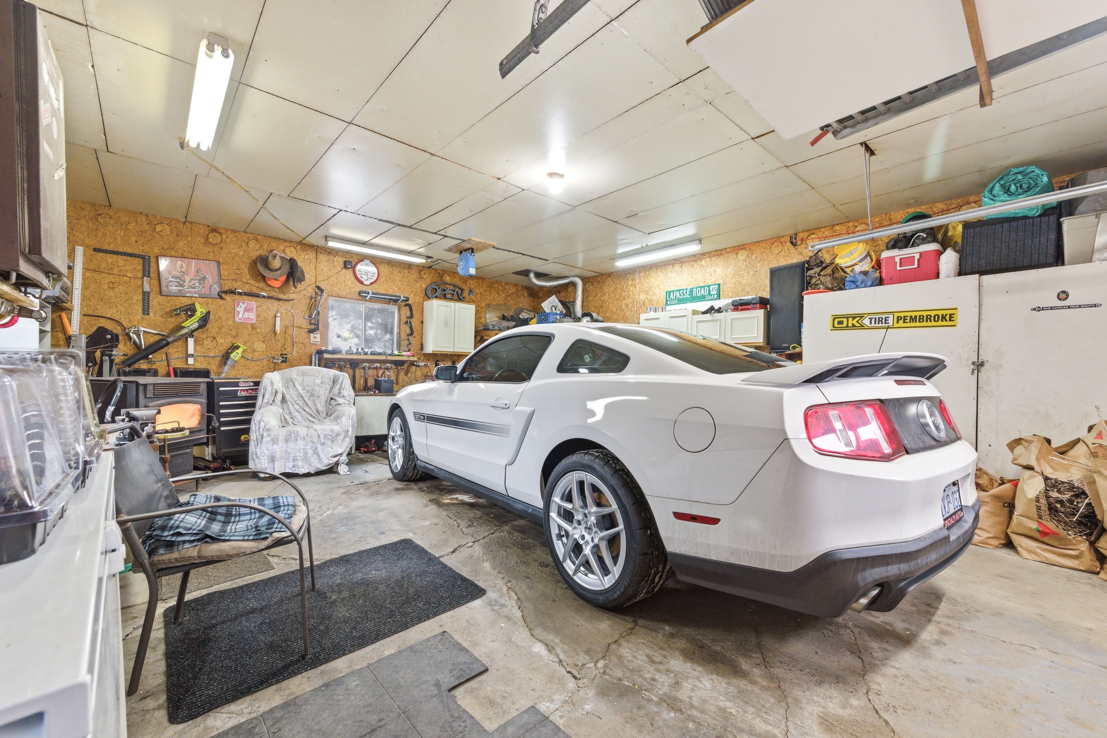 • Heated garage with extra space for hobbies and storage.