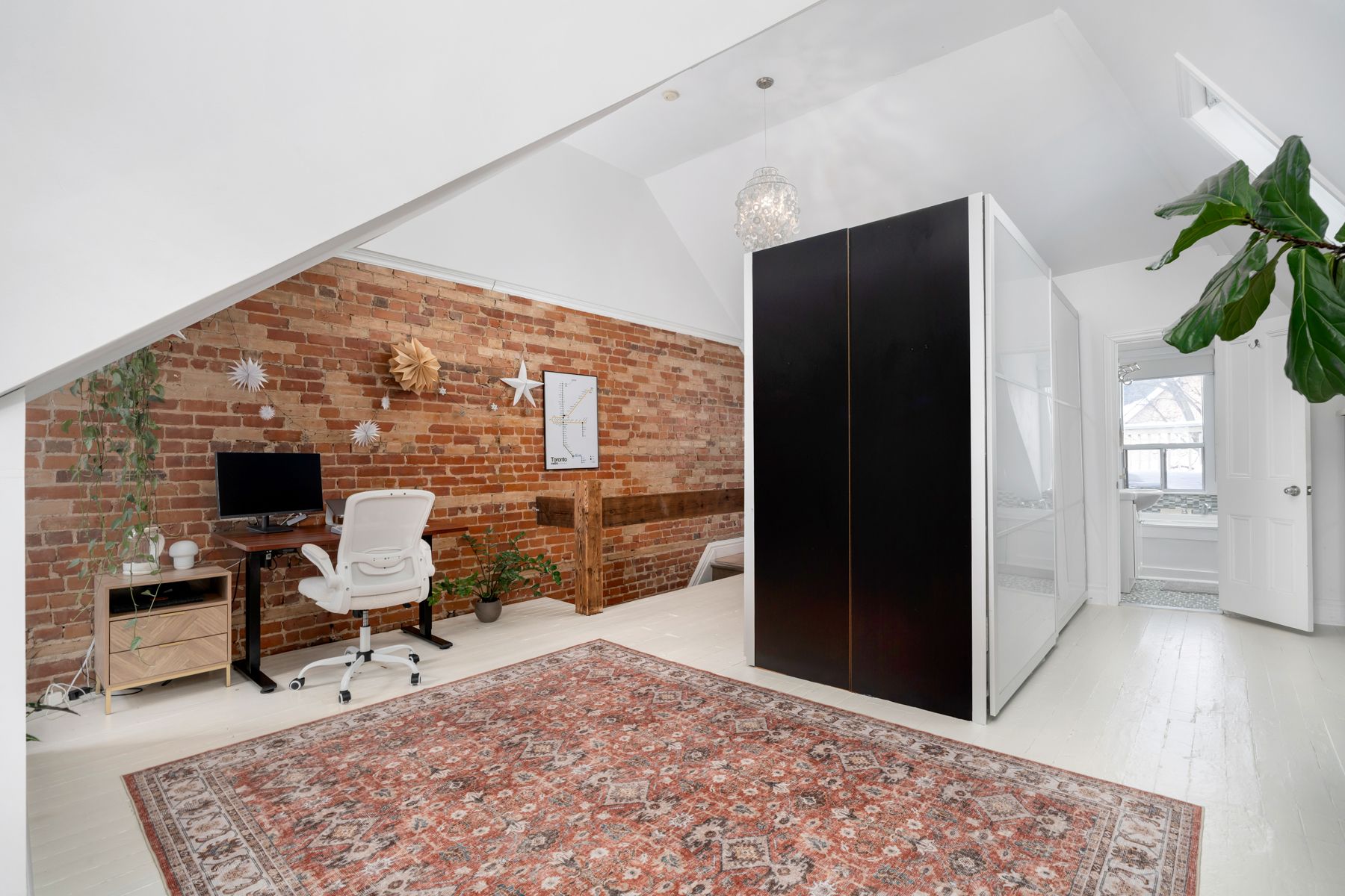 Stunning victorian home in trendy parkdale tucked away on a quiet, leafy street. This beautifully preserved victorian-era home seamlessly blends historic charm with modern updates. The home's architectural character shines through with its exposed interior brick walls, soaring cathedral ceilings, and abundant natural light filling every room. The main floor boasts hardwood floors, crown mouldings, 10-foot ceilings and a sunroom, creating a grand and inviting atmosphere. The second floor is a separate unit with its own modern kitchen, living room with custom built-in walnut shelving, a 3-piece bathroom and a bedroom with ample custom closet space. The third-floor primary bedroom is exceptional, featuring a striking 13-foot cathedral ceiling, complemented by a modern ensuite bath and a spacious private terrace off the master bedroom. Extra-large custom wardrobes and a built-in shoe closet provide plenty of storage, while the large laundry area with custom cabinetry brings modern convenience. This grandiose home, located in the city's core, is nearly 3000 square feet (including the basement), making it a unique find for an original victorian treasure of this magnitude, which presents the opportunity for either a lucrative income-generating property or a magnificent family home. Ideally located just a short walk to vibrant roncesvalles avenue, this home offers access to an eclectic mix of trendy restaurants, coffee shops, and boutique shops, all within steps of your front door. This majestic home is a rare opportunity to experience a victorian residence's timeless beauty and charm, combined with the best of contemporary living in one of parkdale's most desirable neighbourhoods.