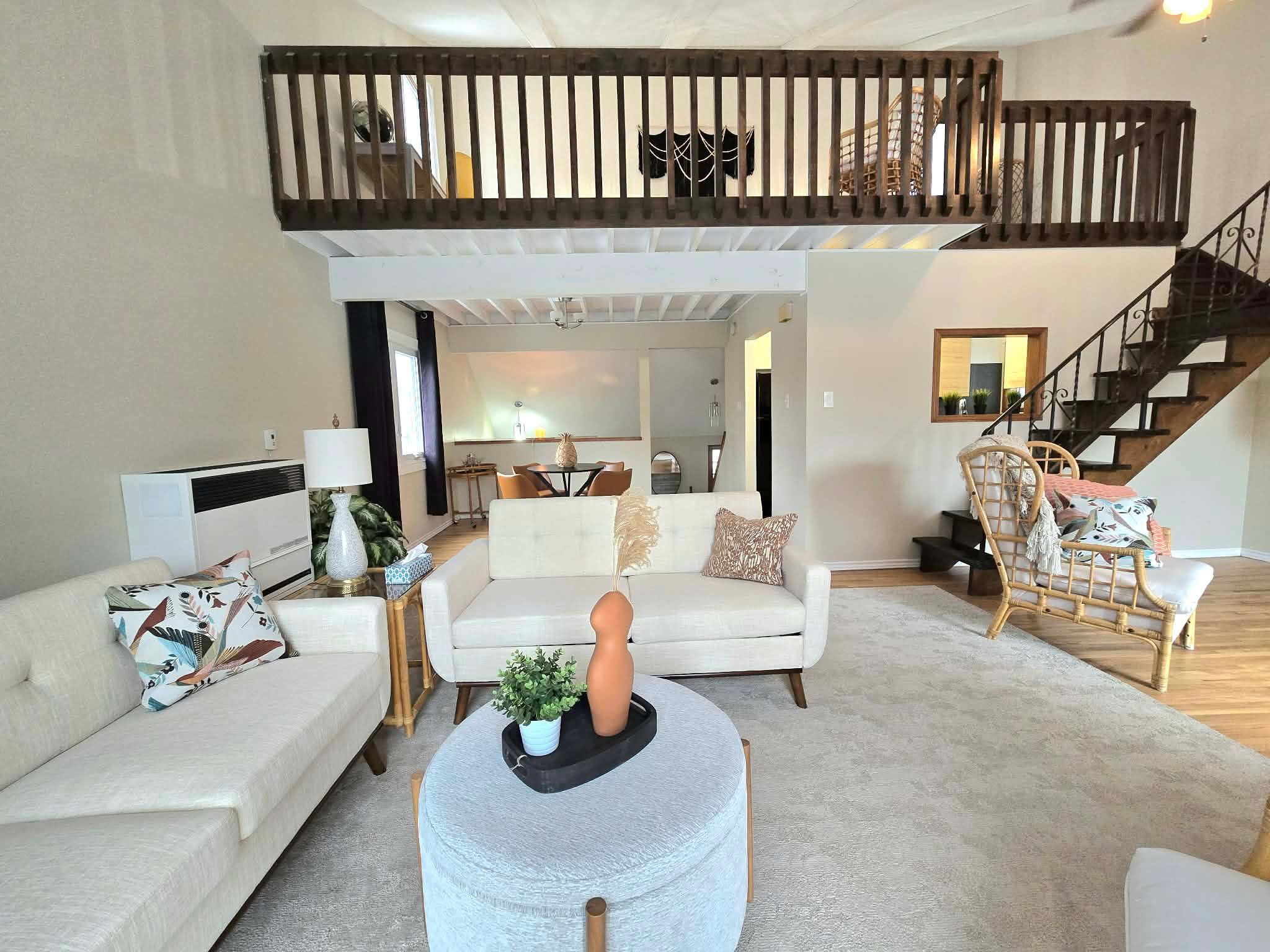 • Versatile upper loft area for playroom, hobbies, or extra bedrooms.