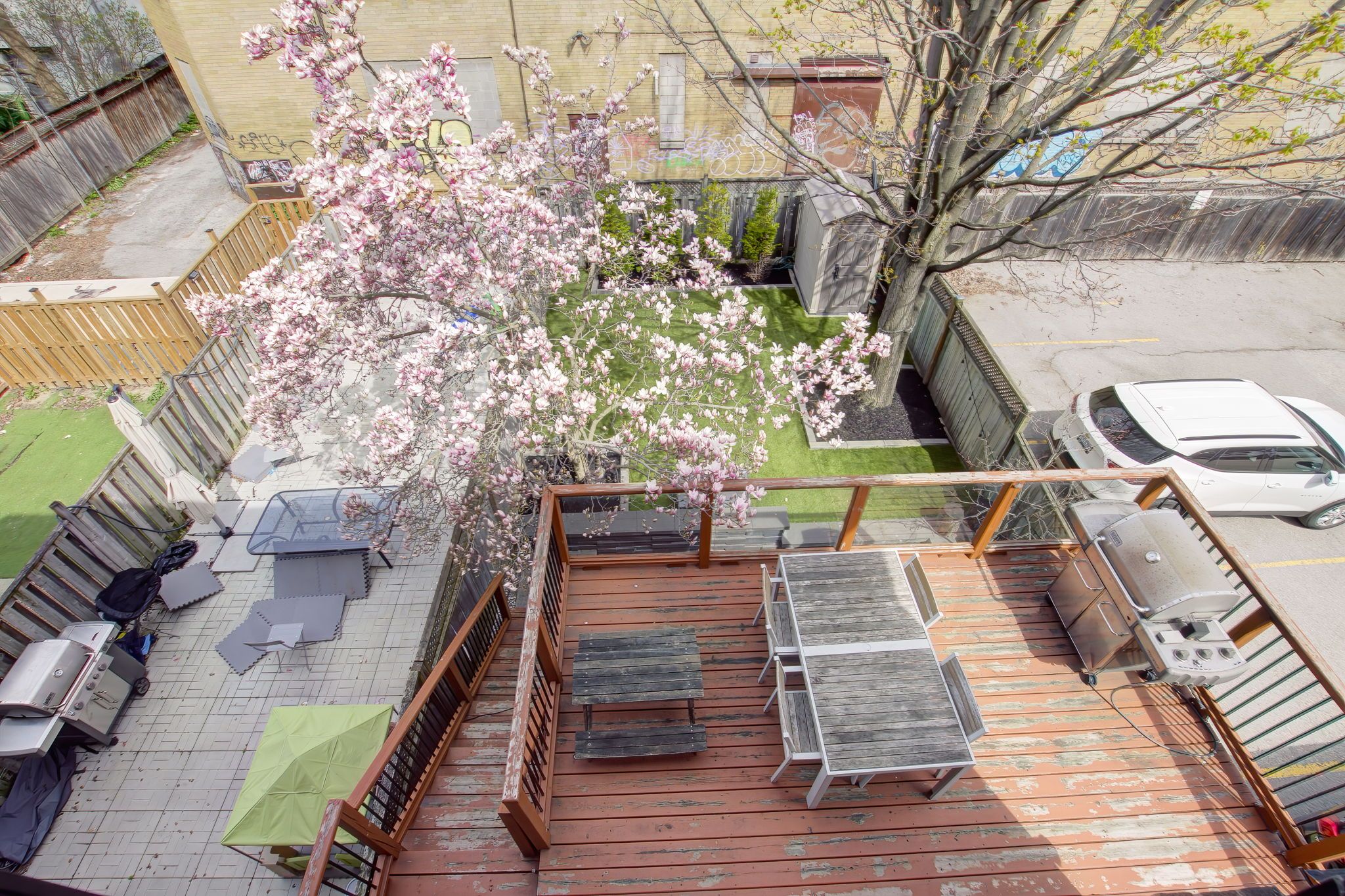 Beautifully renovated grand 3 storey home in king west. 48 michener court has it all! Extra wide 24 foot front semi with solid attached 1 car garage plus 1. 5 parking spots out front. End of a cul-de -sac this is one of the most private properties downtown. An idyllic mix of modern comfort with thoughtful touches of original charm throughout. Lovely curb appeal with inviting entrance, professionally landscaped gardens and walkway. Driveway has built in path lighting. A large side patio/walkway entrance to professionally renovated backyard oasis including a waterfall, elevated deck with 2 more natural gas bbq connections and a garden shed. Enter a gracious foyer with plenty of windows and storage. Step inside and you will find a fully renovated open concept layout that has a spacious family room and kitchen you will not find downtown. Most places are narrow and deep, however this wide lot and layout allows for more comfortable interior space. Designer entertainer's kitchen (renovated in 2023) boasts over 30 linear ft of counter space. Dining room is open to kitchen and has a walkout to the wraparound deck. Rare full mudroom with heated floors, custom closet and custom shelving unit with hooks. A true gem located right in the centre of toronto's best neighbourhoods- walk west to trinity bellwoods, east to the bustling king west, north to little italy, south to the lakefront! See virtual tour and floorplans attached. Note pictures represent furniture not currently in the unit, tenants furniture is currently there. Can also be rented furnished. Also available as full property at mls #c12849020 which is 4br/3ba which includes the 4th bedroom on 1st floor and can be used as a bedroom, office or in-law suite with ensuite bath & private entrance from backyard.