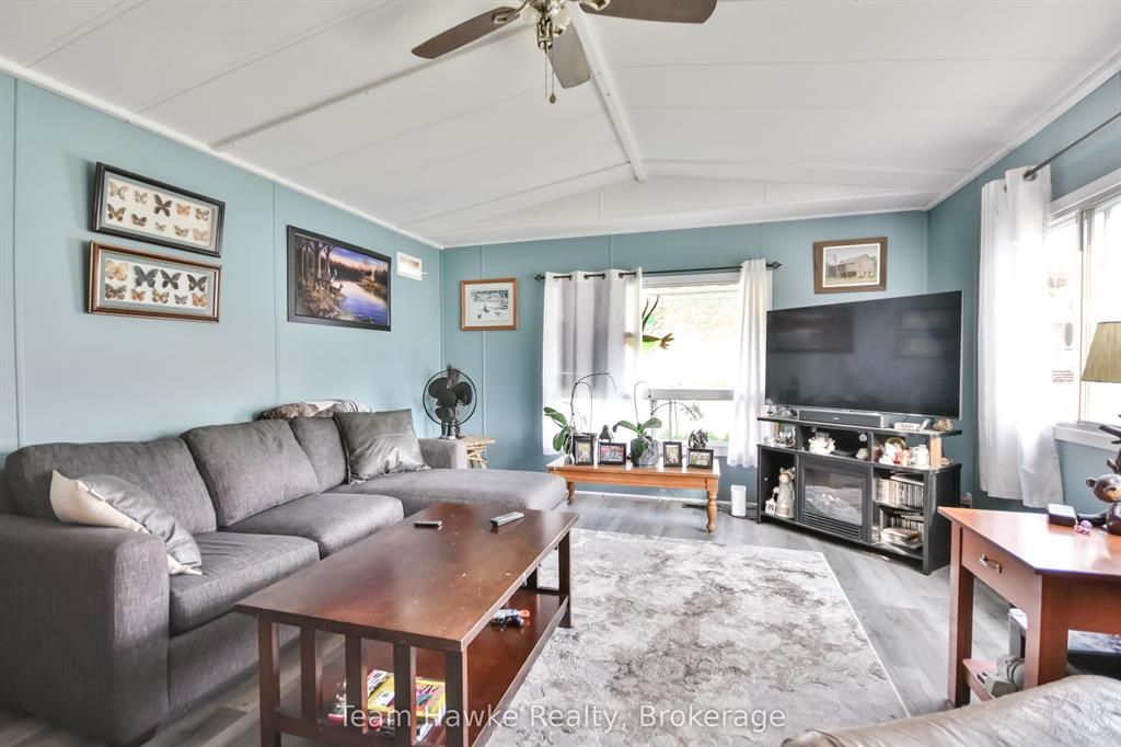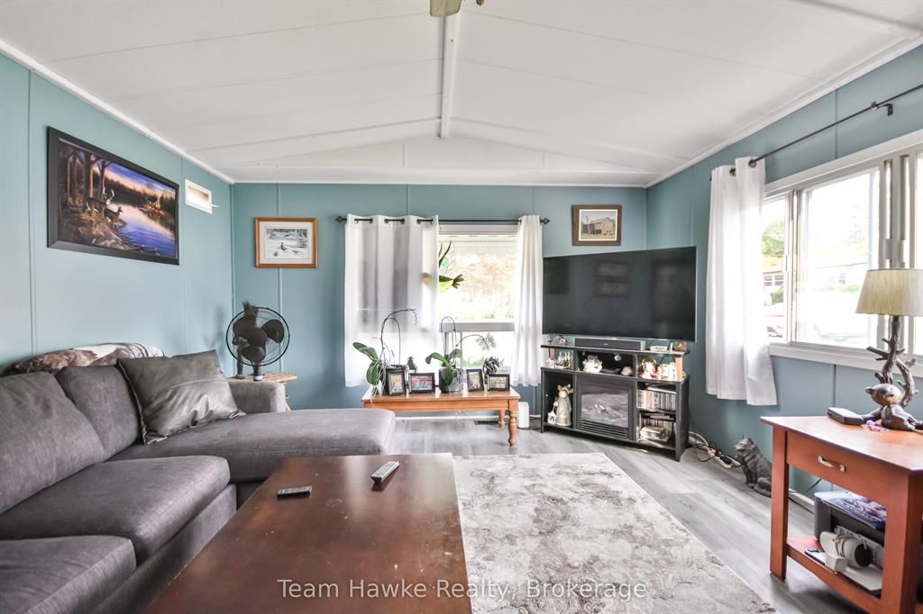A great opportunity to downsize your home and move into this clean and comfortable mobile home in midland. Located in smith's camp, a community on the shores of little lake, this two bedroom home has an open concept layout with updated flooring throughout. Everything is on one level. Easy access to walk the trails of little lake park, access to public transportation at the entrance, and a walking trail to walmart. This location features plenty of outdoor living space as well, plus two storage sheds. Gas heat. Don't miss out.