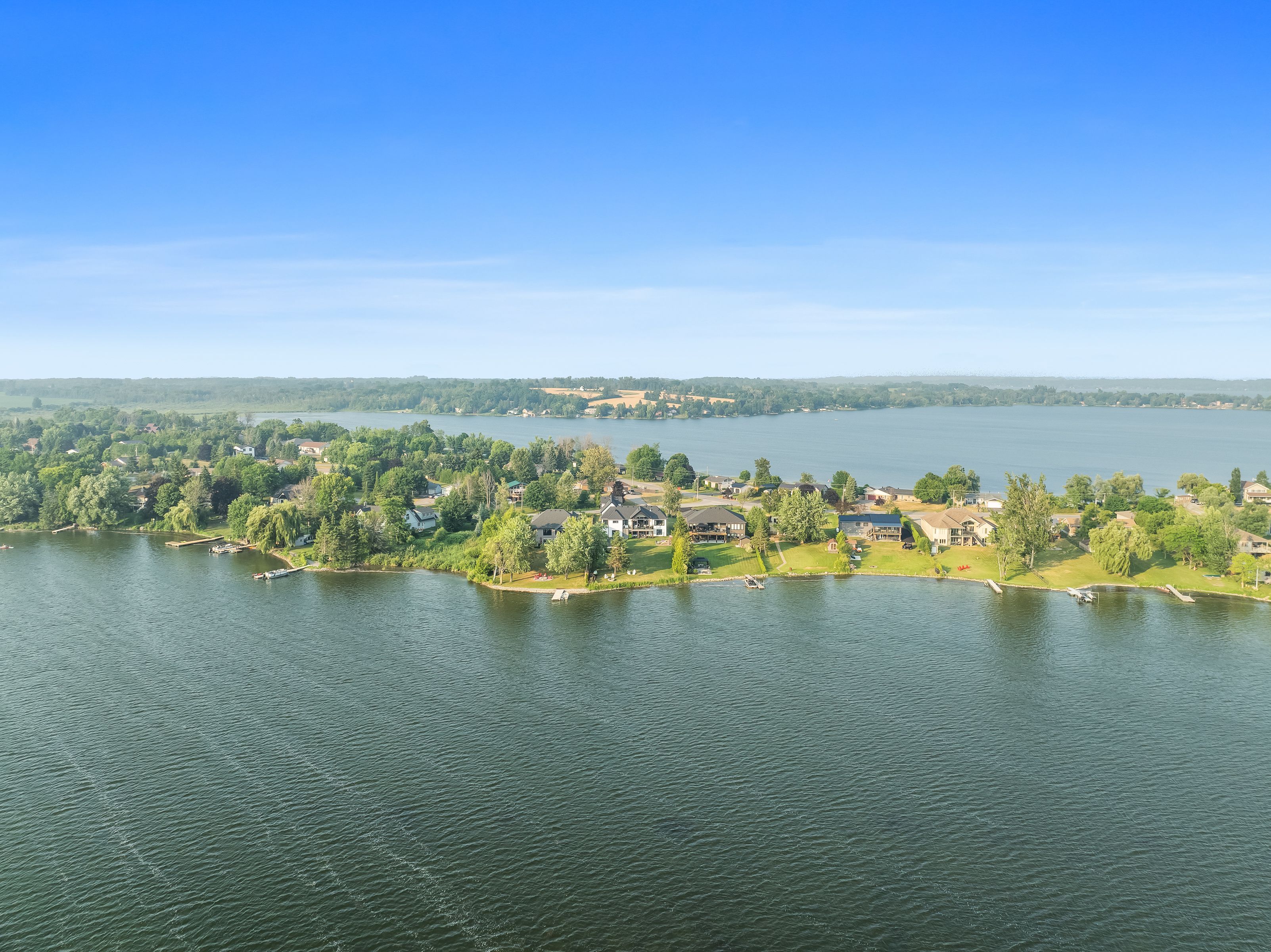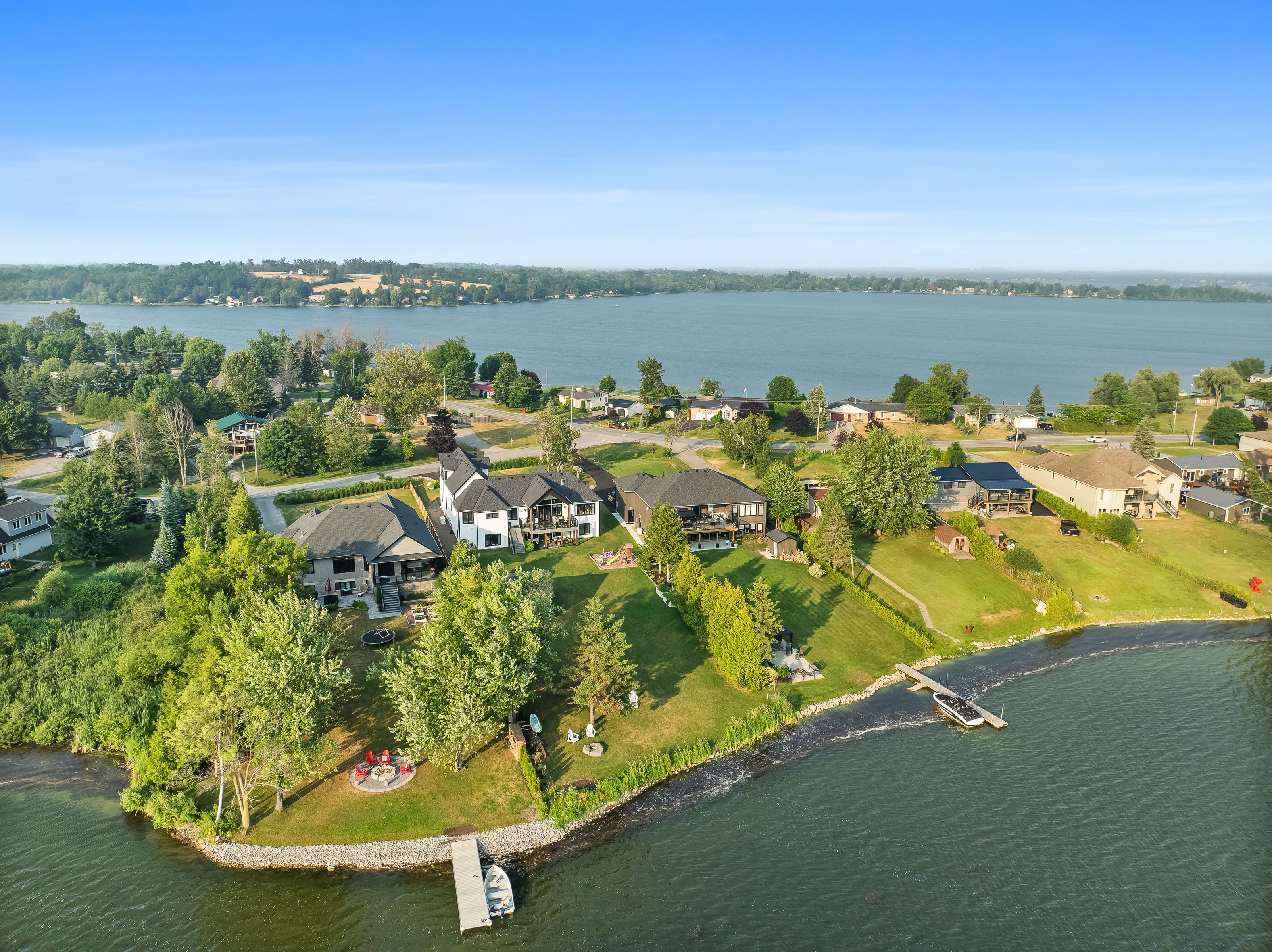 Luxurious waterfront living on lake scugog! This extraordinary custom-built masterpiece by jeffery homes sits on a premium 89' x 376' lot featuring breathtaking south-facing open water views. Designed for the discerning buyer, the interior boasts soaring 18ft cathedral ceilings in the great room and 9ft ceilings throughout the main floor and basement. Entertain in style with a versatile multi-purpose outbuilding-perfect for a lakeside cabana, games room, or elite toy storage-featuring french doors and oversized sliders opening directly to the water. This tech-forward home is equipped with in-floor heating, a tankless boiler system, air-to-air heat pump, and a hardwired full generac generator for total peace of mind. The gourmet main floor kitchen is complemented by a fully finished basement featuring a second kitchen/bar area. Premium upgrades include a 4-year-old septic, uv water filtration, 200-amp service, and a garage roughed-in for heat. Included: 2 sets of appliances (main/basement), projector & screen, and all elfs. Truly a "forever home" where luxury meets the lake!