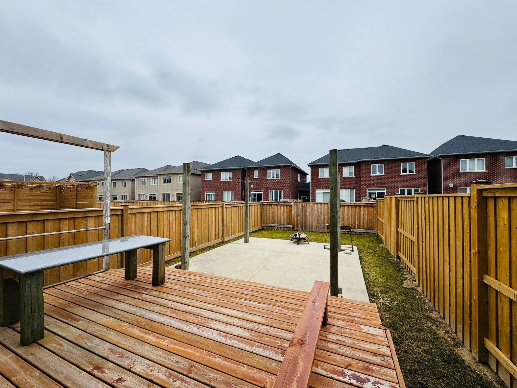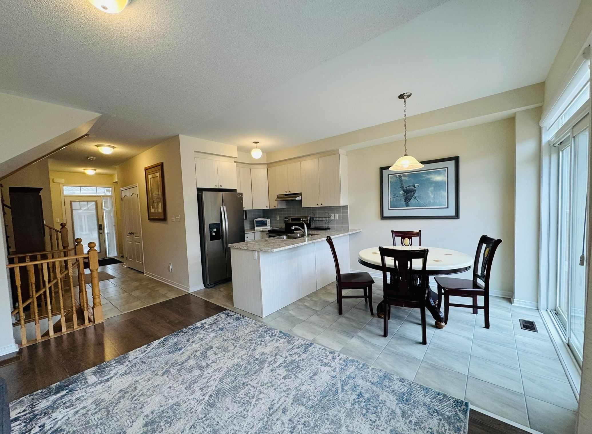 Welcome home to 48 portland. This modern and spacious 3 bedroom, 4 bathroom townhome is nestled in a family friendly community and offers a bright, warm, and inviting atmosphere with abundant natural light throughout. Upon entering, you are welcomed by a spacious foyer, soaring 9 ft ceilings, and a convenient 2 piece bath. The sizable living room flows seamlessly into a stylish eat in kitchen featuring a breakfast bar, stainless steel appliances, tile backsplash, and walk out access to a 16 x 16 ft concrete patio connected to a large deck, perfect for entertaining or relaxing during the warmer months. The spacious primary bedroom features its own private ensuite bathroom. The finished lower level adds valuable living space with a comfortable rec room, a 3 piece bath, and a laundry room, ideal for enjoying with family and friends. Conveniently located close to amenities, trails, parks, schools, and restaurants, with blue mountain village just a short drive away.